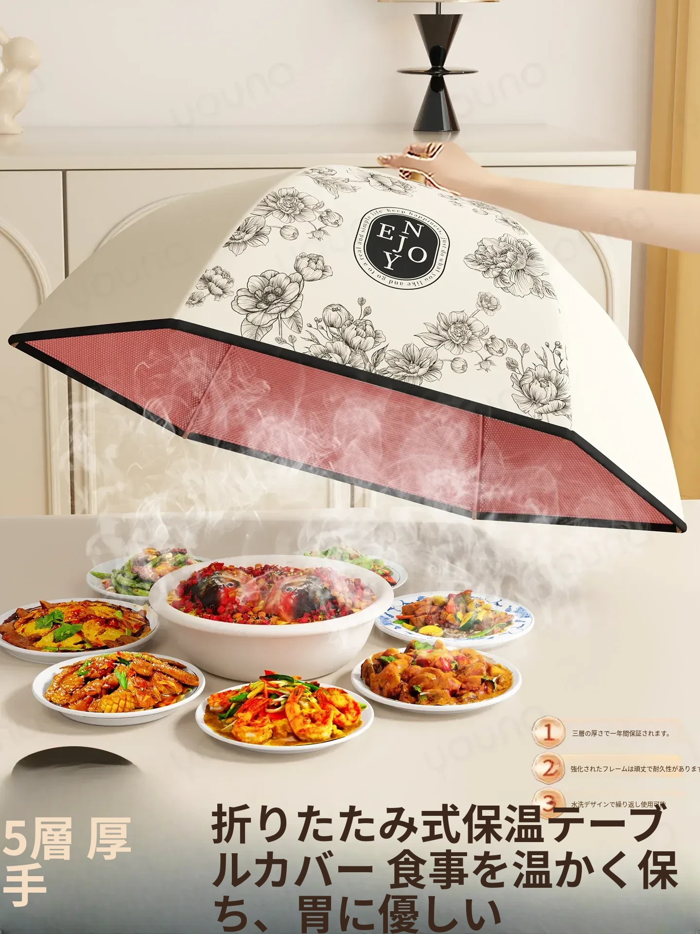 2025年新款!日式保温折叠食物カバー - 厚手で家族の食卓を守る!余った料理も美味しく保温、食べ物が冷める心配なし!おしゃれで便利な必需品!