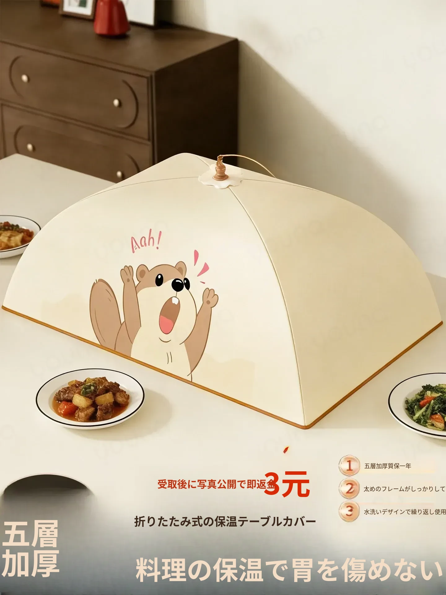 2025年新登場!冬の必需品、折りたたみ式保温食材カバー - 家庭用の残り物を美味しく保つ、テーブルを華やかに彩る便利グッズ!
