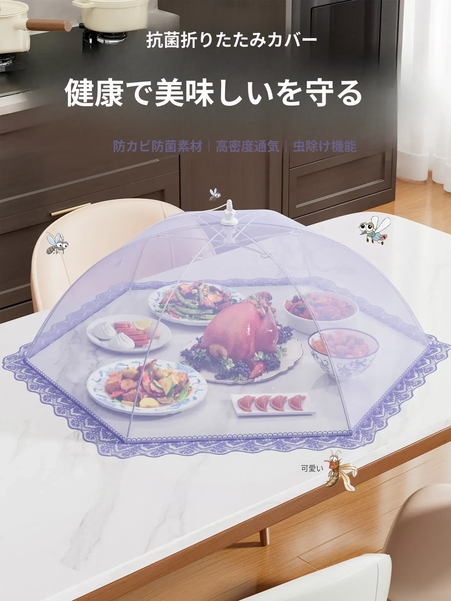 抗菌折りたたみ式テーブルカバー - 2025年新モデル!食べ物を守るフライ防止シールド、残り物も安心!家庭用に最適な万能カバーで、清潔さと便利さを両立!