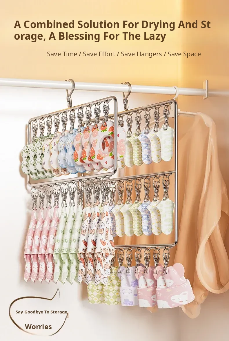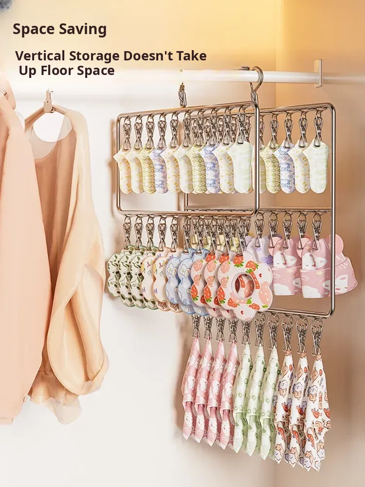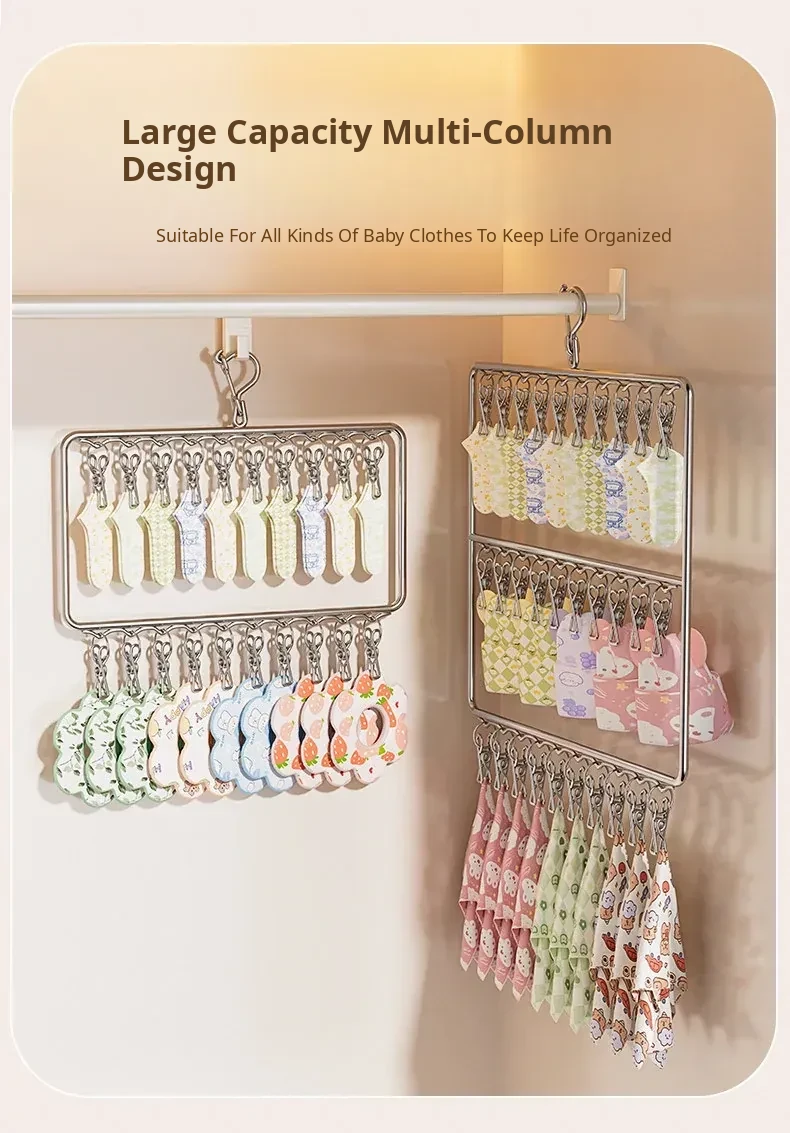 Baby Bib Storage Solution with Multiple Clips - Perfect for Organizing Children's Wardrobes, Drying Clothes, and Hanging Accessories!