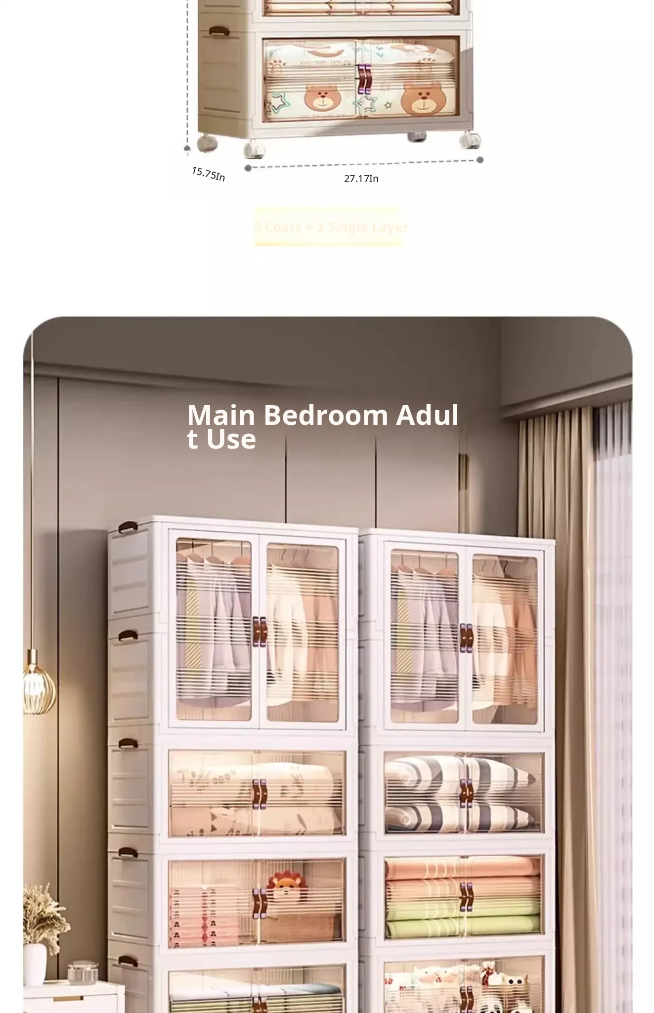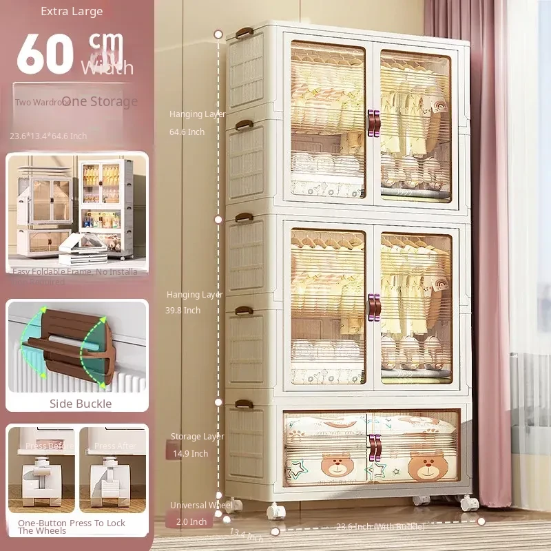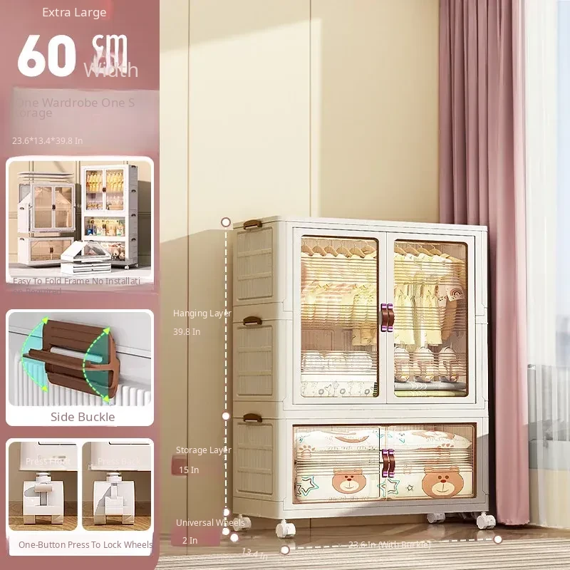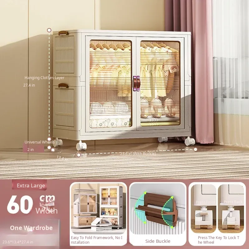 23.62in Width-2-Layer Wardrobe-Transparent Tea