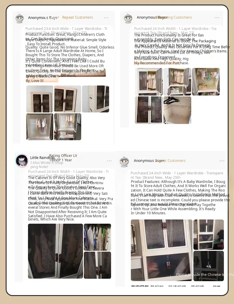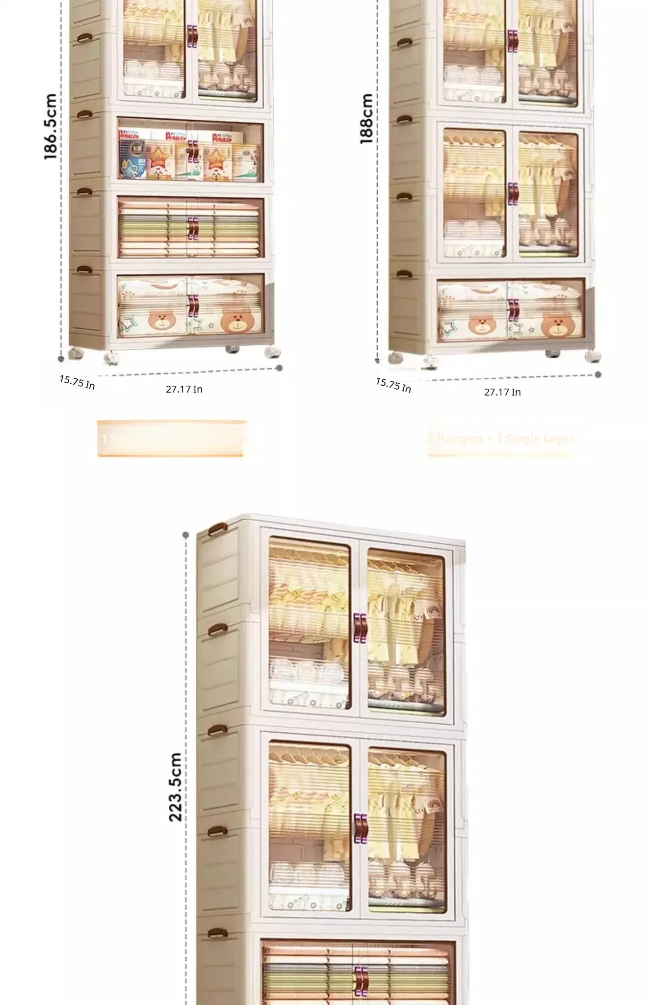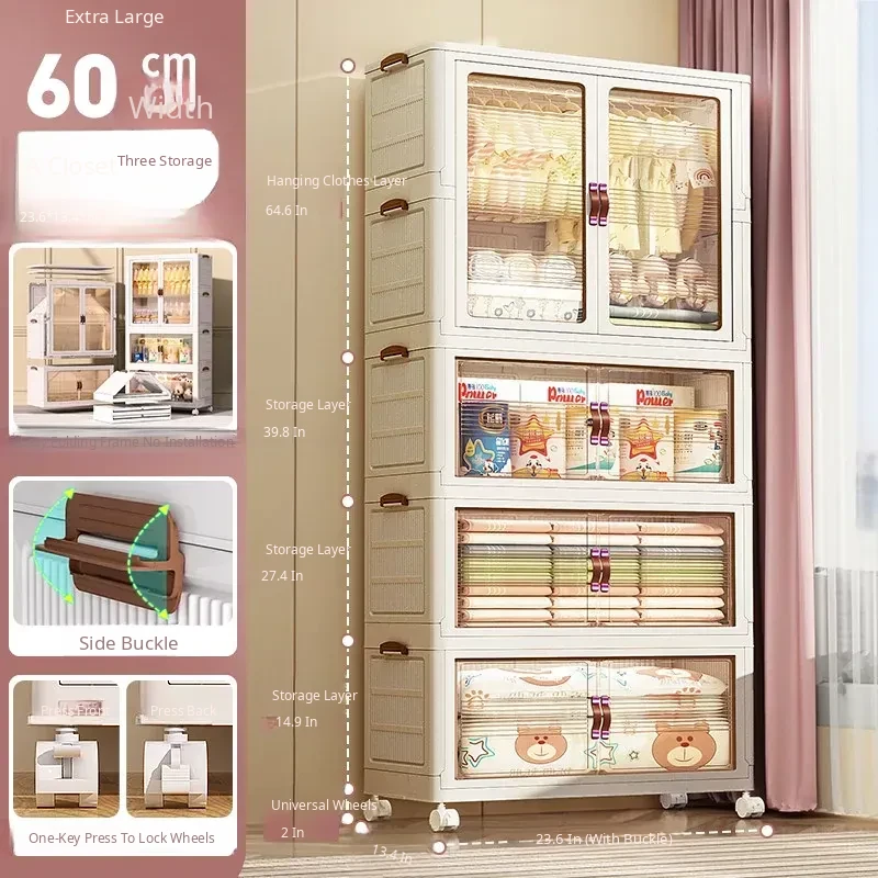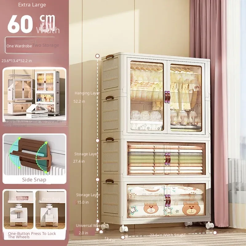 23.62in Width - 1 Layer Wardrobe + 3 Layers Storage Box - Transparent Tea