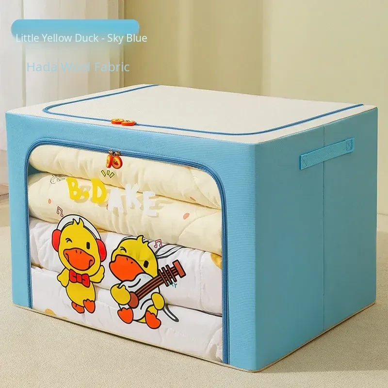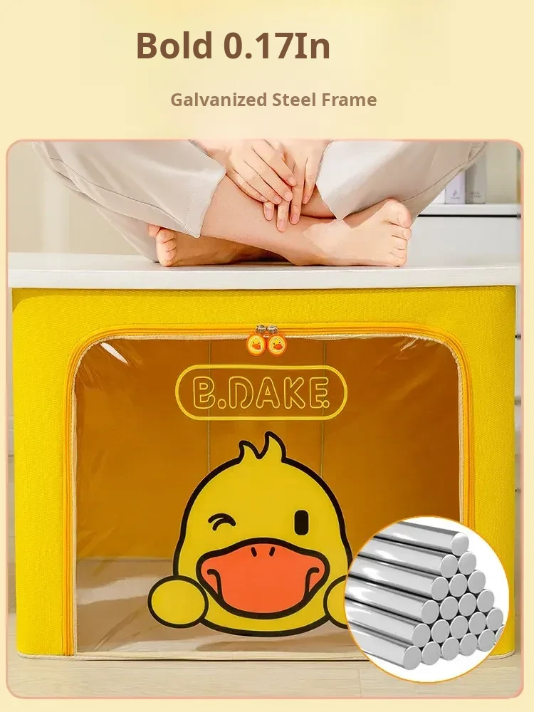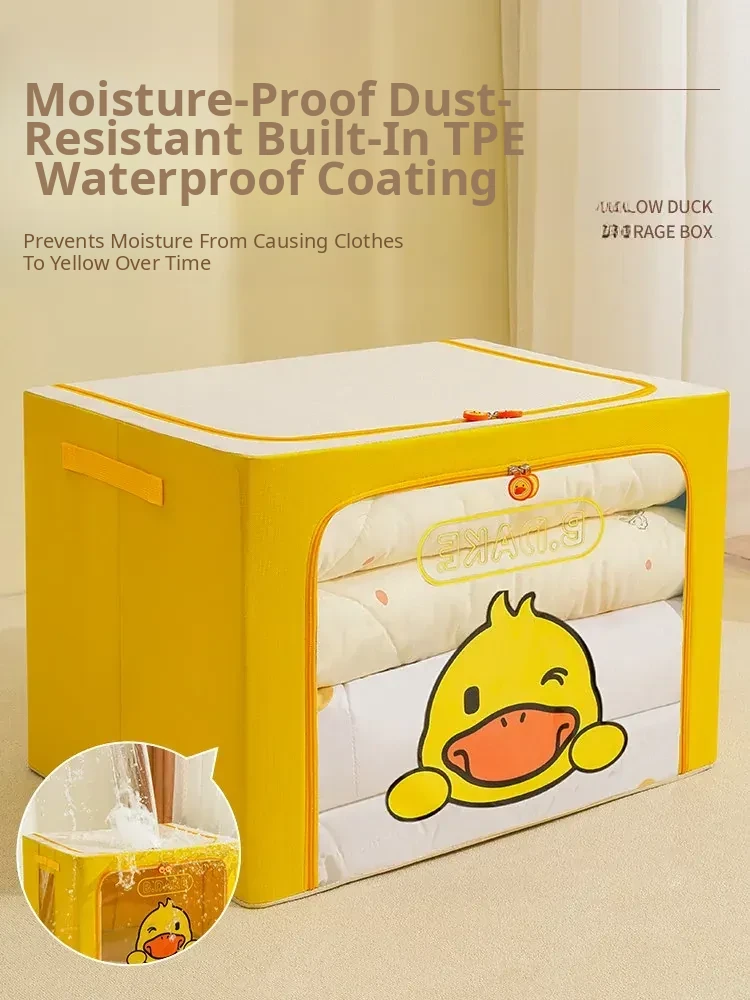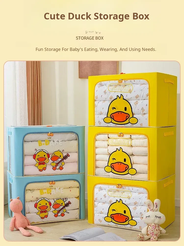 Large Capacity Folding Storage Box for Kids' Clothes - Cute Yellow Duck Fabric Organizer for Home Wardrobe, Perfect for Efficient Clothing Organization!