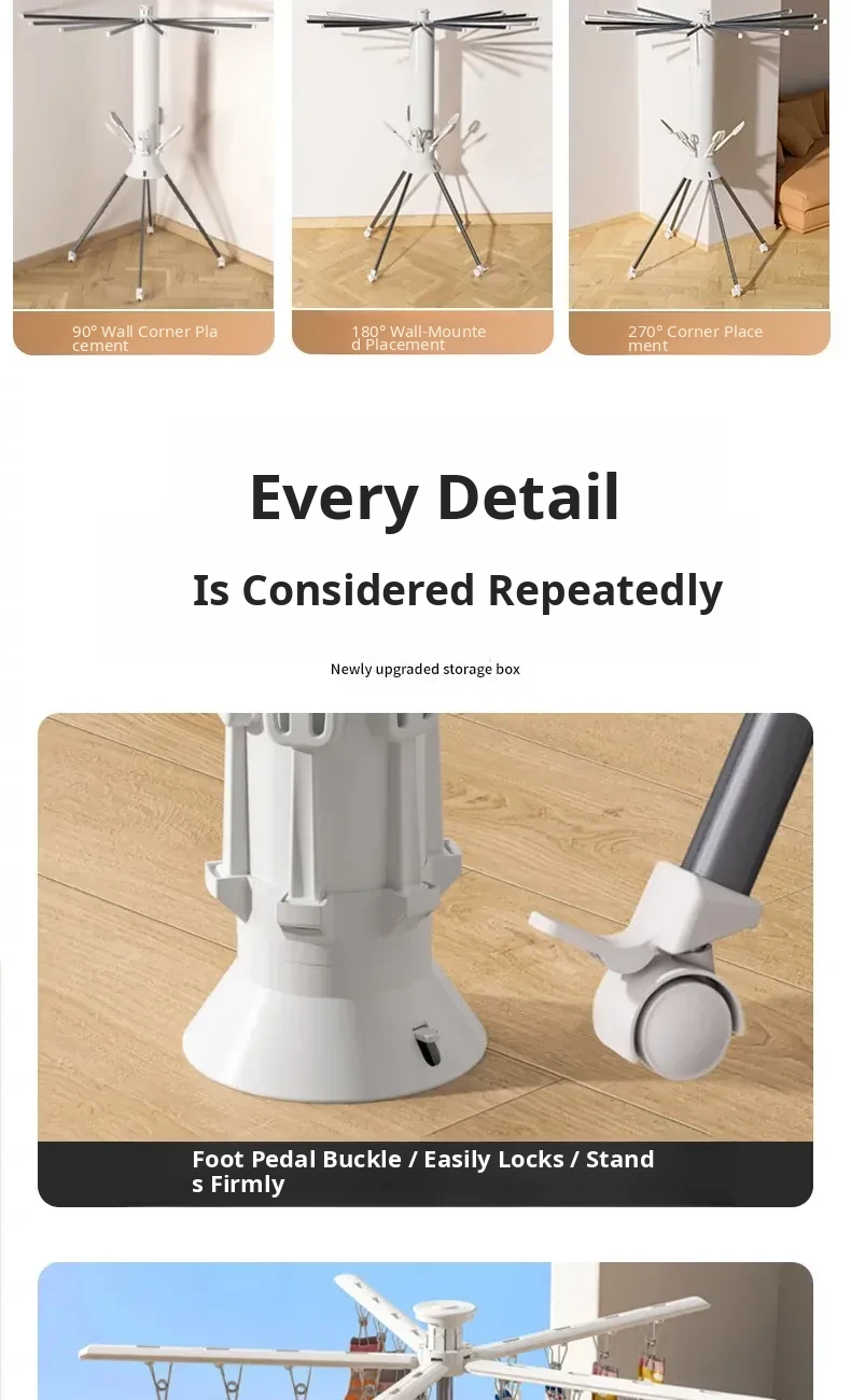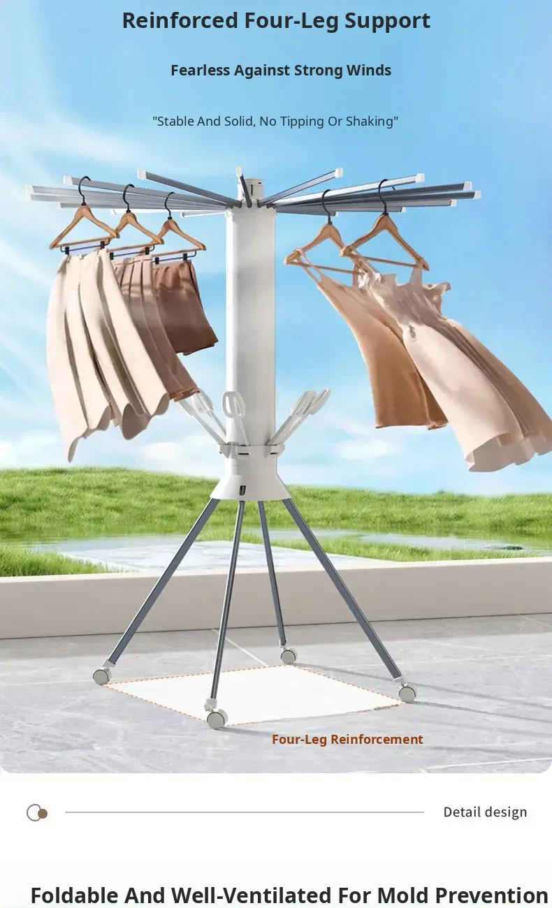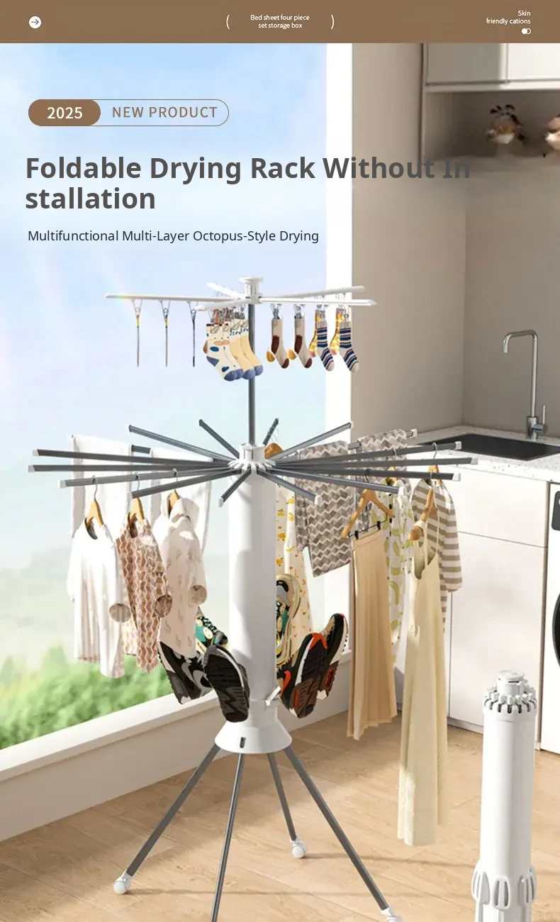 Octopus Folding Drying Rack - Portable Clothes Drying Stand for Home, Movable Balcony Clothesline, Perfect for Efficient Laundry Drying!
