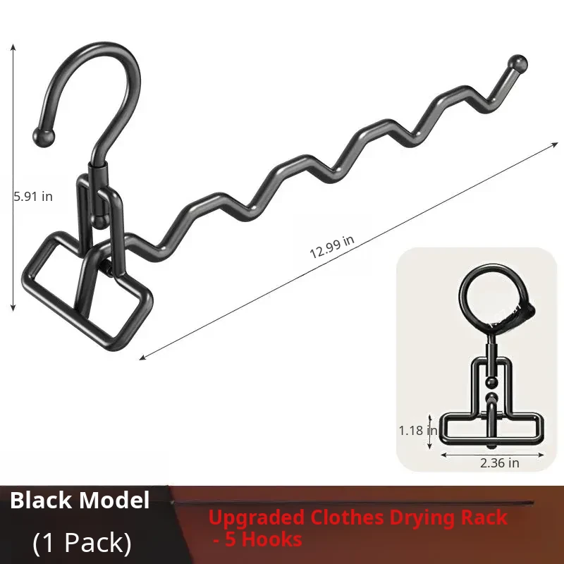 [Upgraded Model] Deep Black⭐1 Pack [Foldable Design/Super Load-Bearing/5 Hooks in a Row]