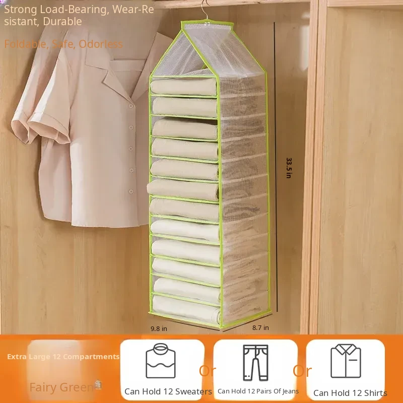 Upgraded and Thickened Huge 12 Compartments - Green [Can Hold Sweaters/Jeans/Thin Jackets, Etc.]
