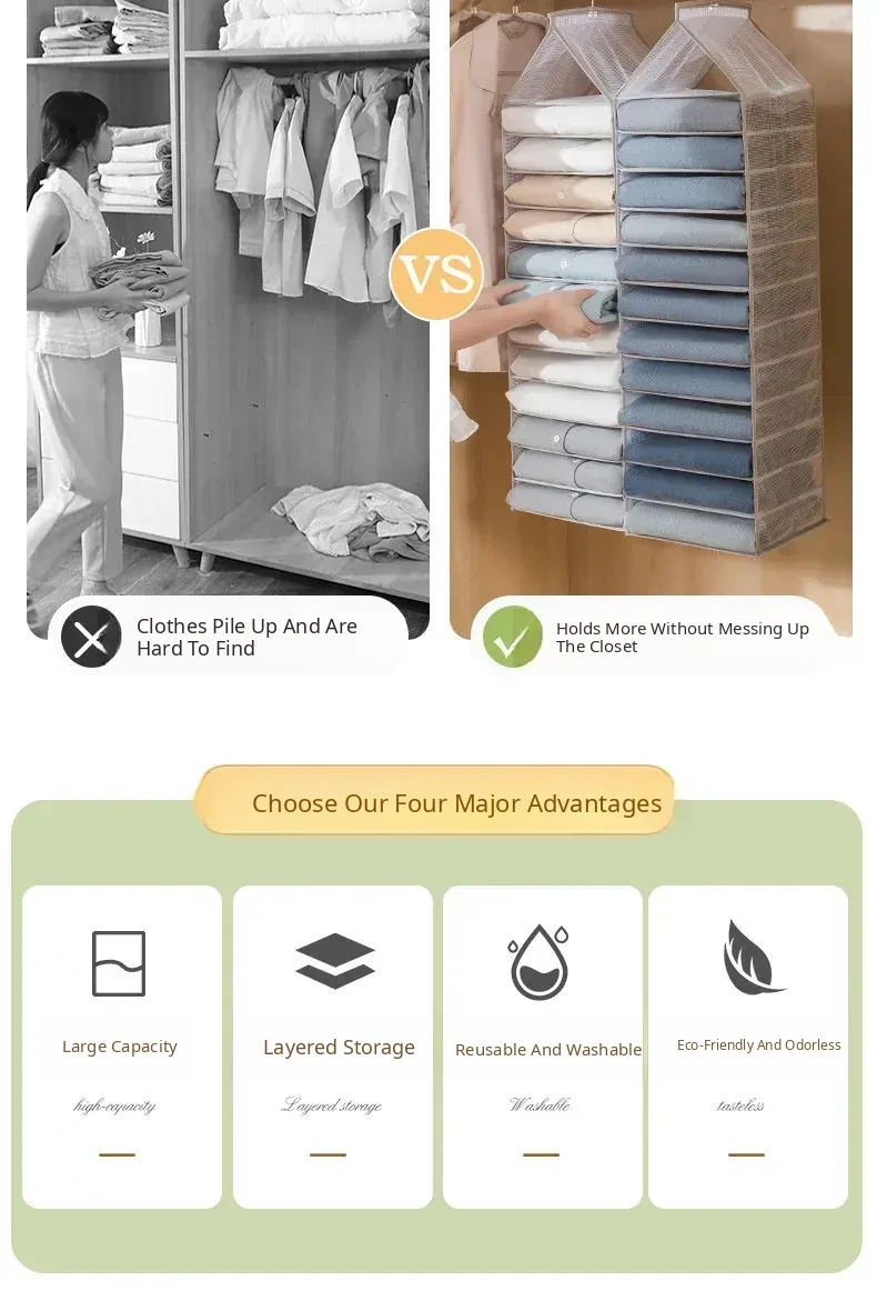 Upgraded and Thickened Huge 9 Compartments - Green [Can Hold Sweaters/Jeans/Thin Jackets, Etc.]