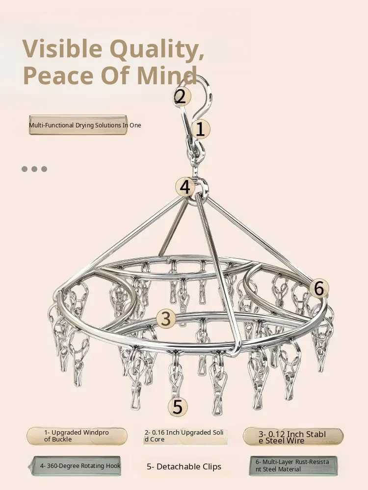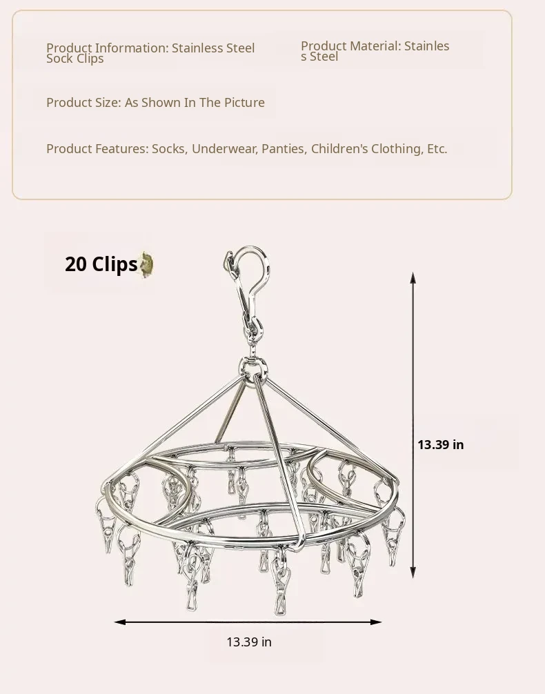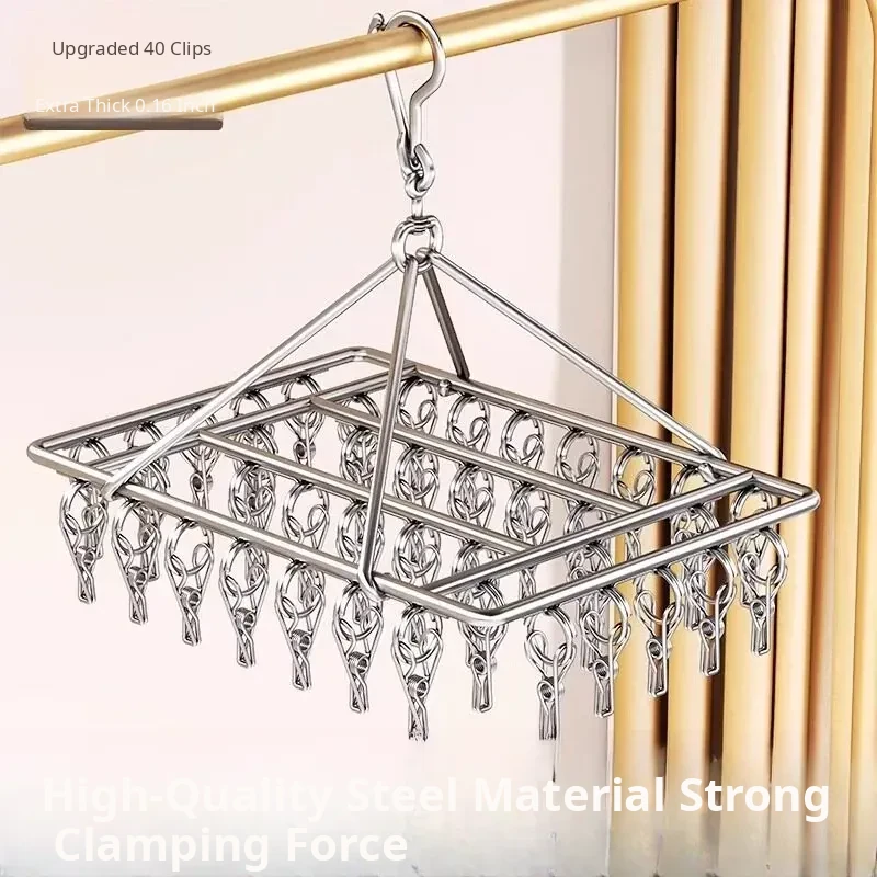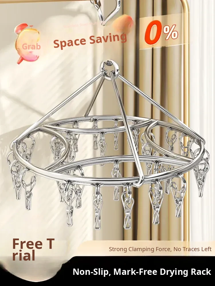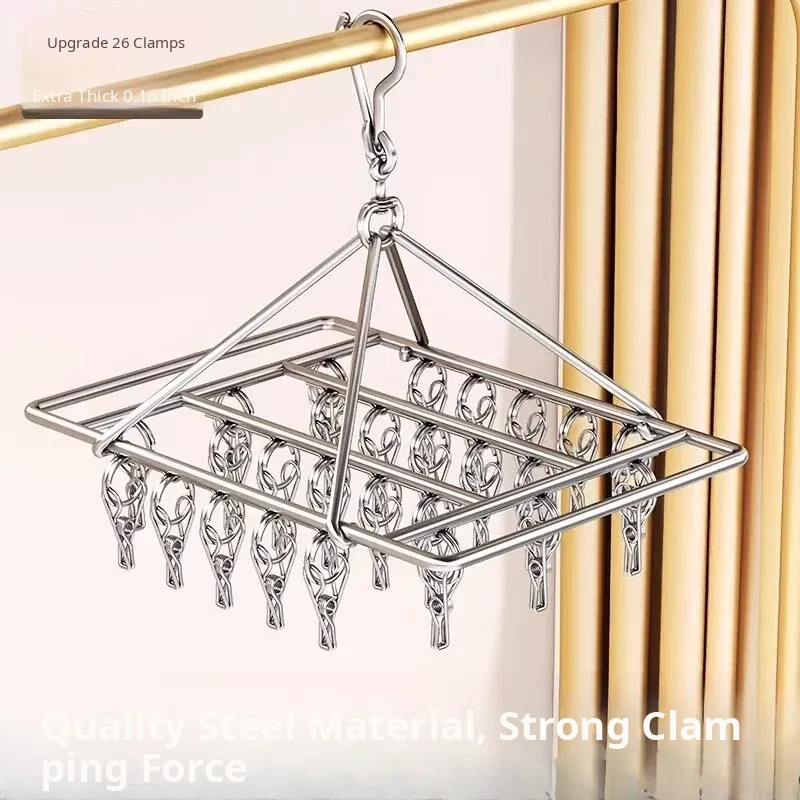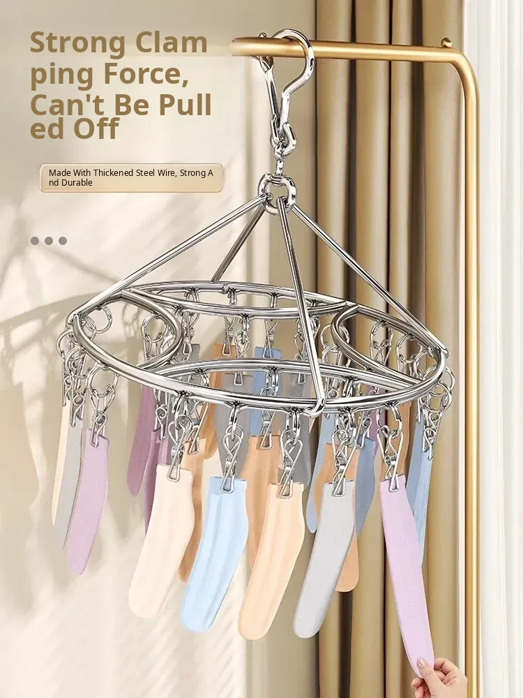 Stainless Steel Sock Drying Rack - Multi-Functional Home Clothes Dryer for Underwear and Socks with No Marks, Featuring Multiple Clips for Efficient Drying
