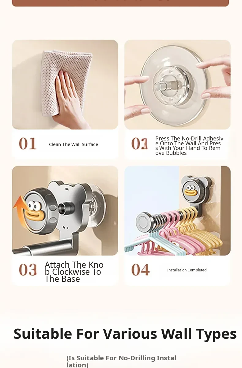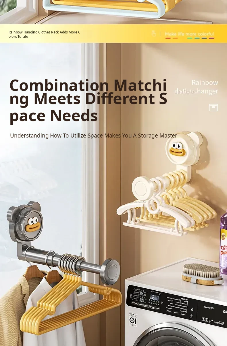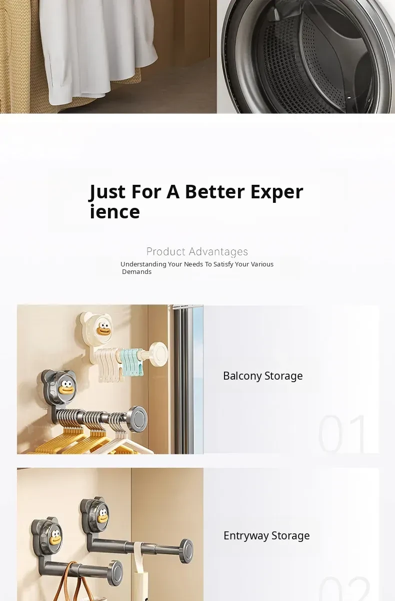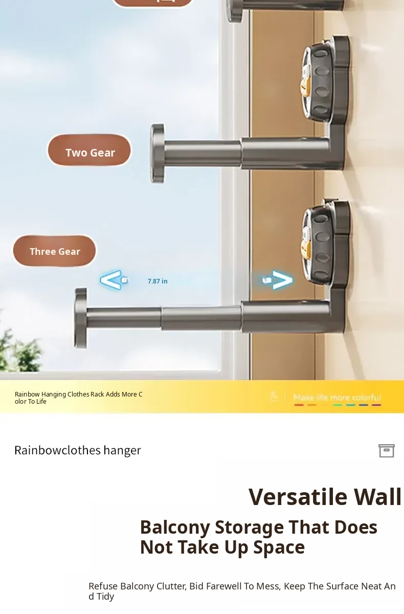 Suction Cup Balcony Clothes Rack - No Drilling Required, Multi-Functional Wall-Mounted Hook, Expandable Hanging Clothes Organizer for Home Use