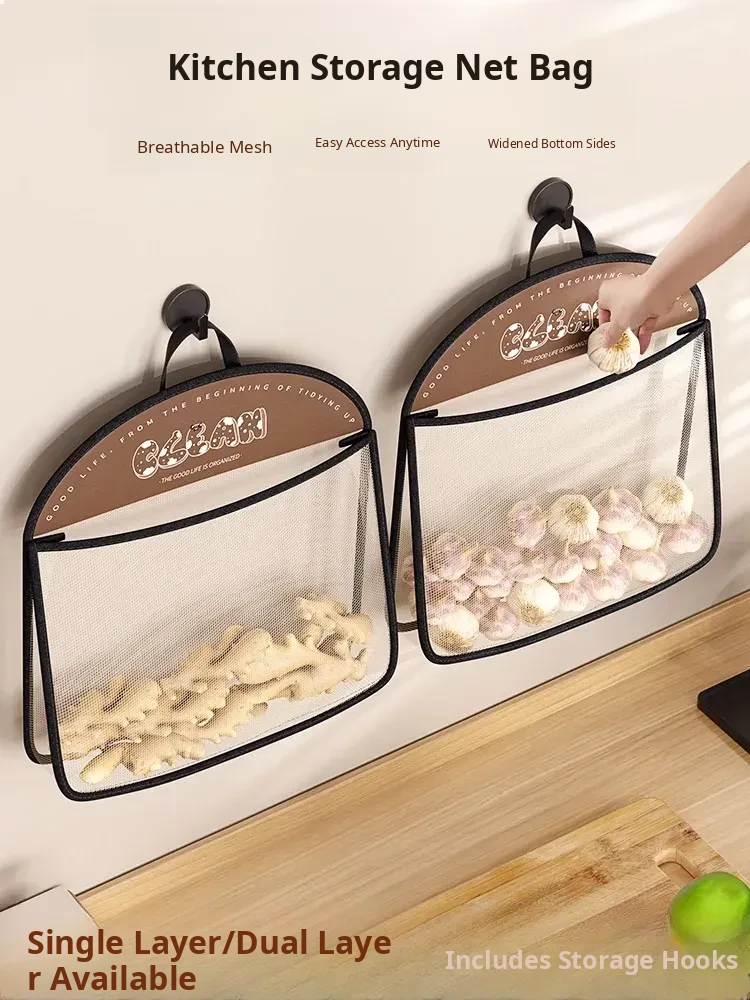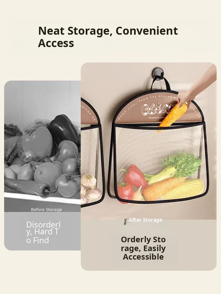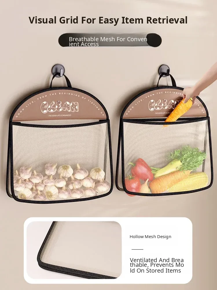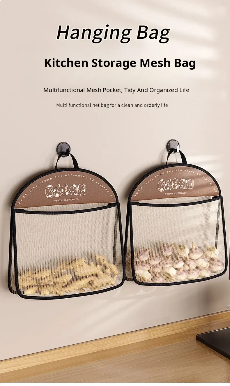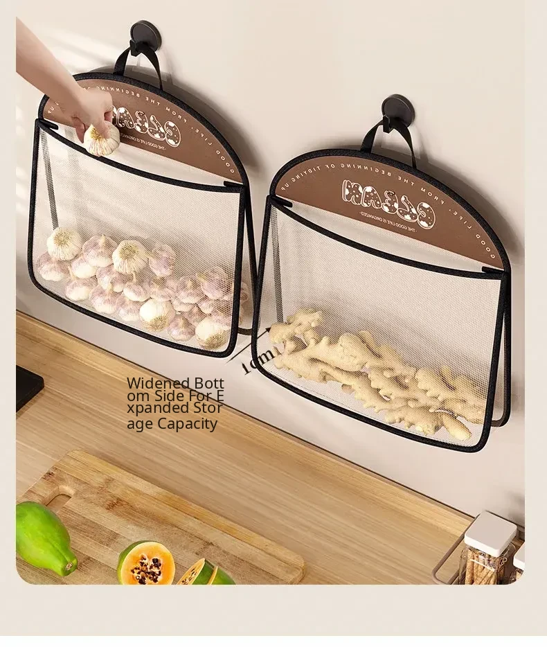 Wall-Mounted Vegetable Storage Net Bag - Perfect for Storing Chili Peppers, Onions, Ginger, and Garlic in Your Kitchen. A Must-Have Organizer for Every Home!