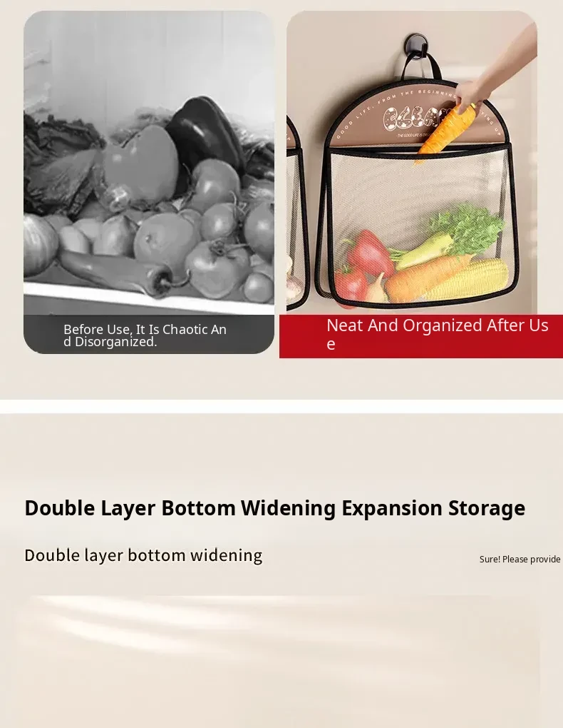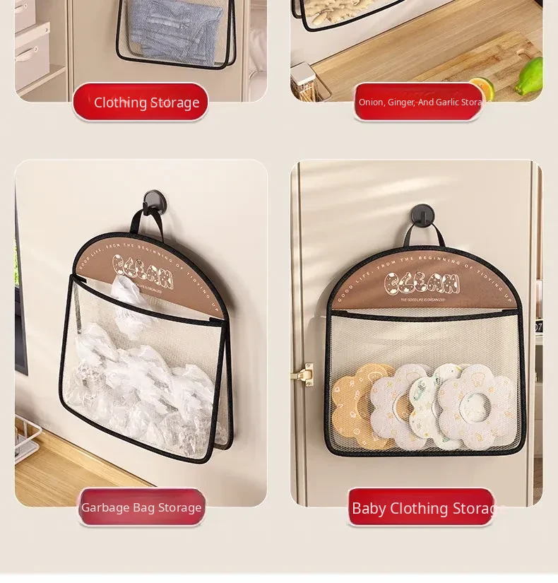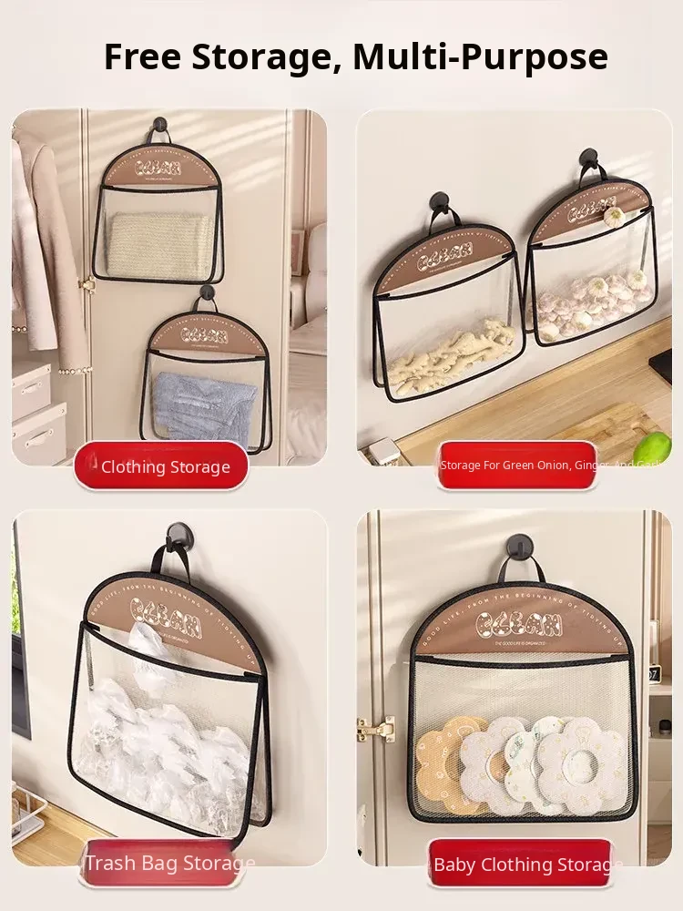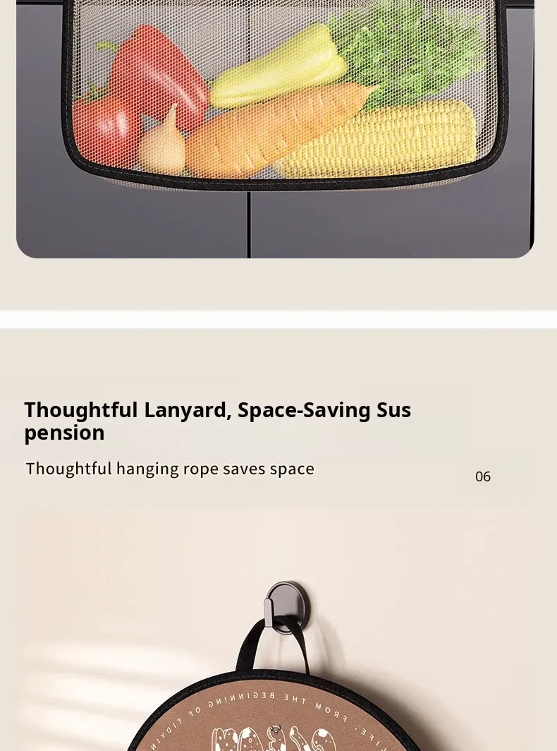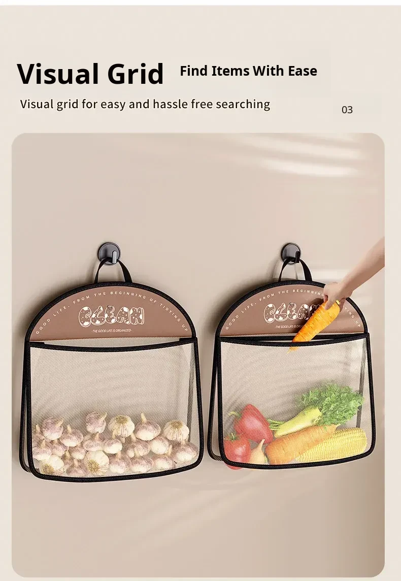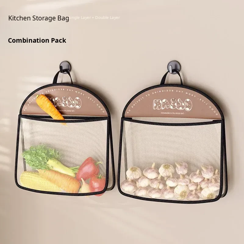 Wall-Mounted Vegetable Storage Net Bag - Perfect for Storing Chili Peppers, Onions, Ginger, and Garlic in Your Kitchen. A Must-Have Organizer for Every Home!