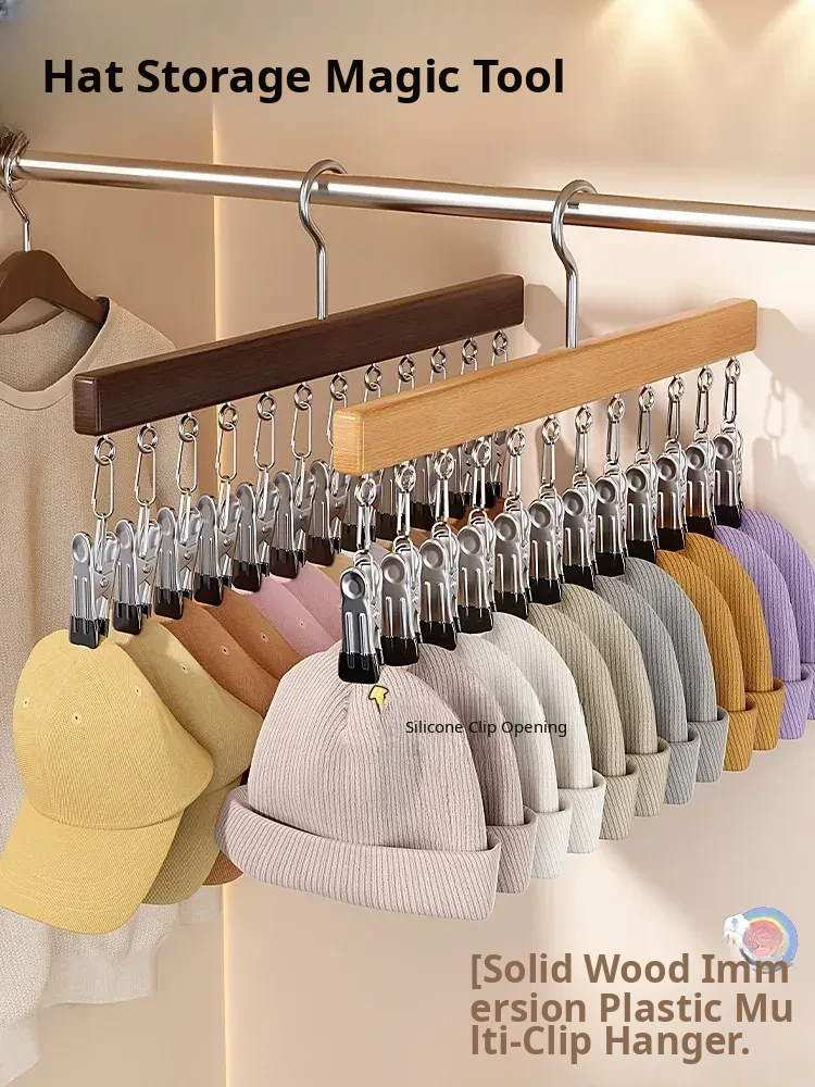 Wooden Hanger with Multi Clips - Versatile Storage Rack for Duckbill and Baseball Caps, Perfect for Closet Organization and Efficient Hat Display