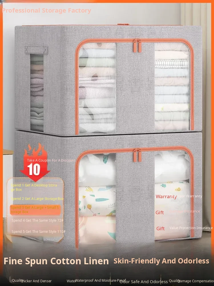 Tianshan Cotton and Linen Storage Box - Home Clothes and Quilt Organizer, Foldable Large Capacity Storage Bag for Efficient Organization