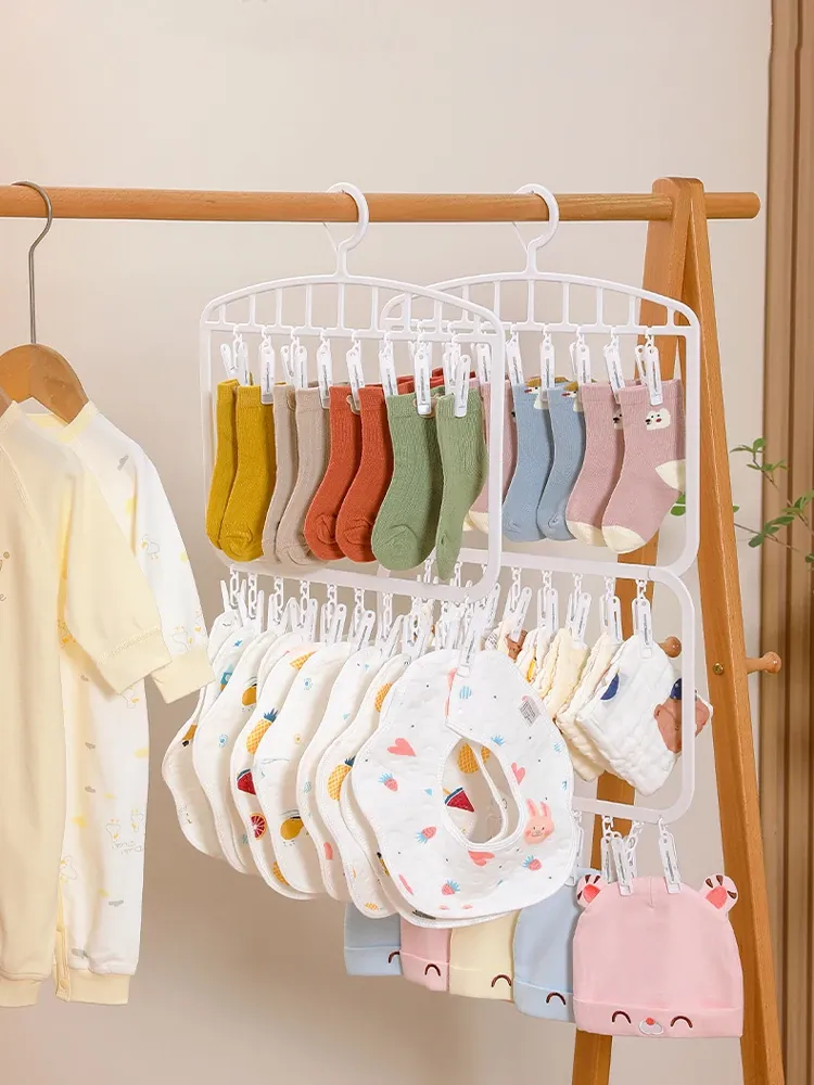 Multi-Clip Baby Clothes Hanger - Versatile Storage Solution for Home Wardrobe, Perfect for Drying Infant Socks and Organizing Baby Clothes