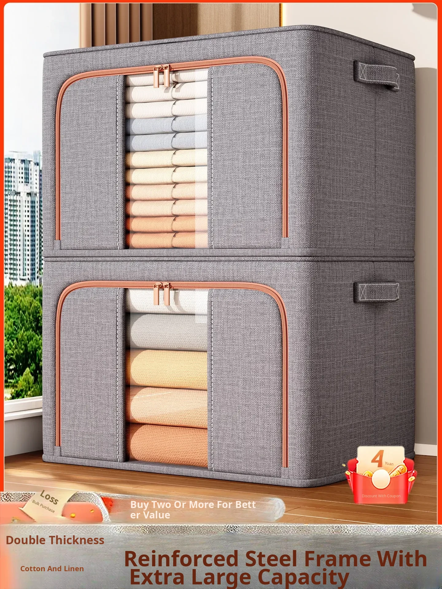 Large Capacity Fabric Storage Box for Home - Foldable Organizer for Clothes, Quilts, and Linens - Perfect Wardrobe Solution to Keep Your Space Tidy and Stylish!