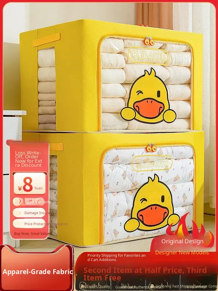 Large Capacity Folding Storage Box for Kids' Clothes - Cute Yellow Duck Fabric Organizer for Home Wardrobe, Perfect for Efficient Clothing Organization!
