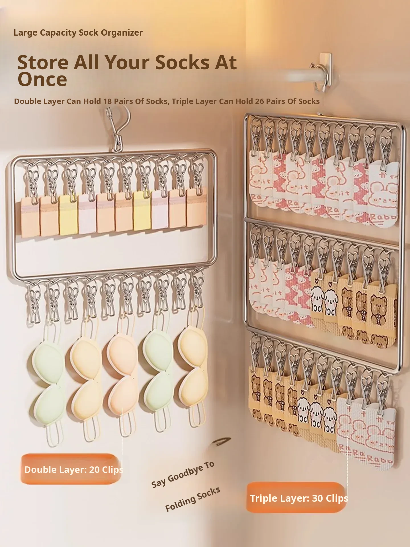 Socks and Underwear Organizer - Multi-Clip Hanger for Bras, Underwear, and Socks - Perfect for Home Wardrobes and Baby Drying Needs!