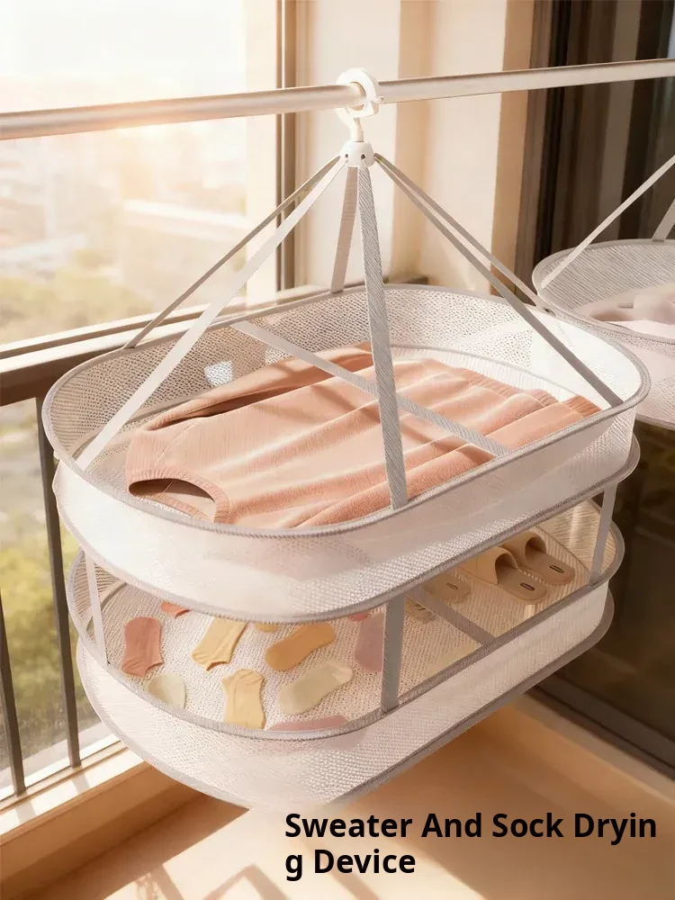 Square Sock Drying Rack - Multi-functional Mesh Laundry Basket for Sweaters, Delicates, and Socks with Clips - Perfect for Air-Drying Woolens and Underwear!