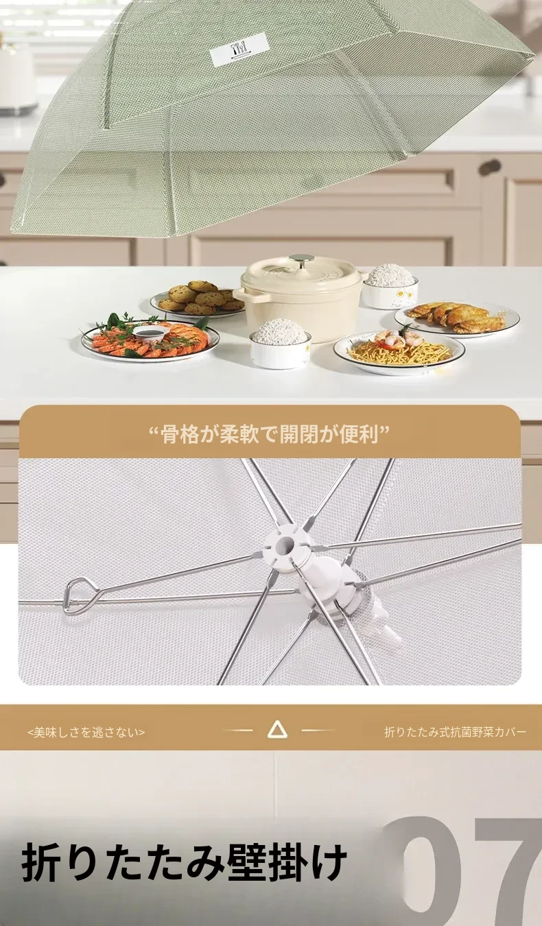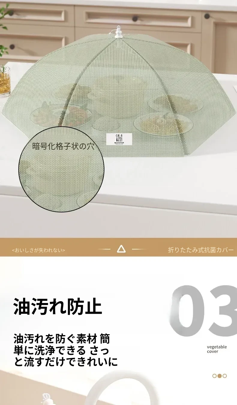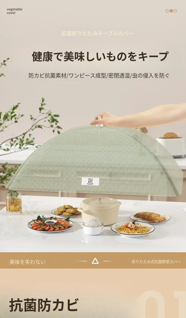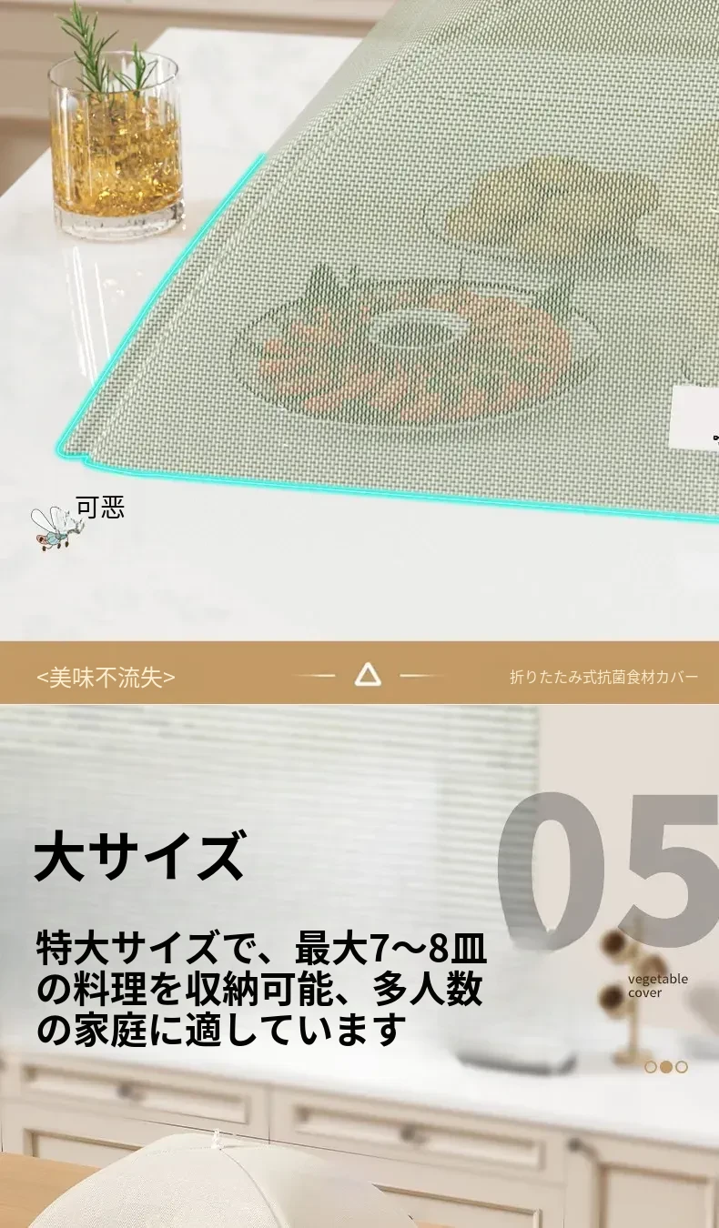 抗菌折りたたみ式テーブルカバー - 2025年新モデル!食べ物を守るフライ防止シールド、残り物も安心!家庭用に最適な万能カバーで、清潔さと便利さを両立!