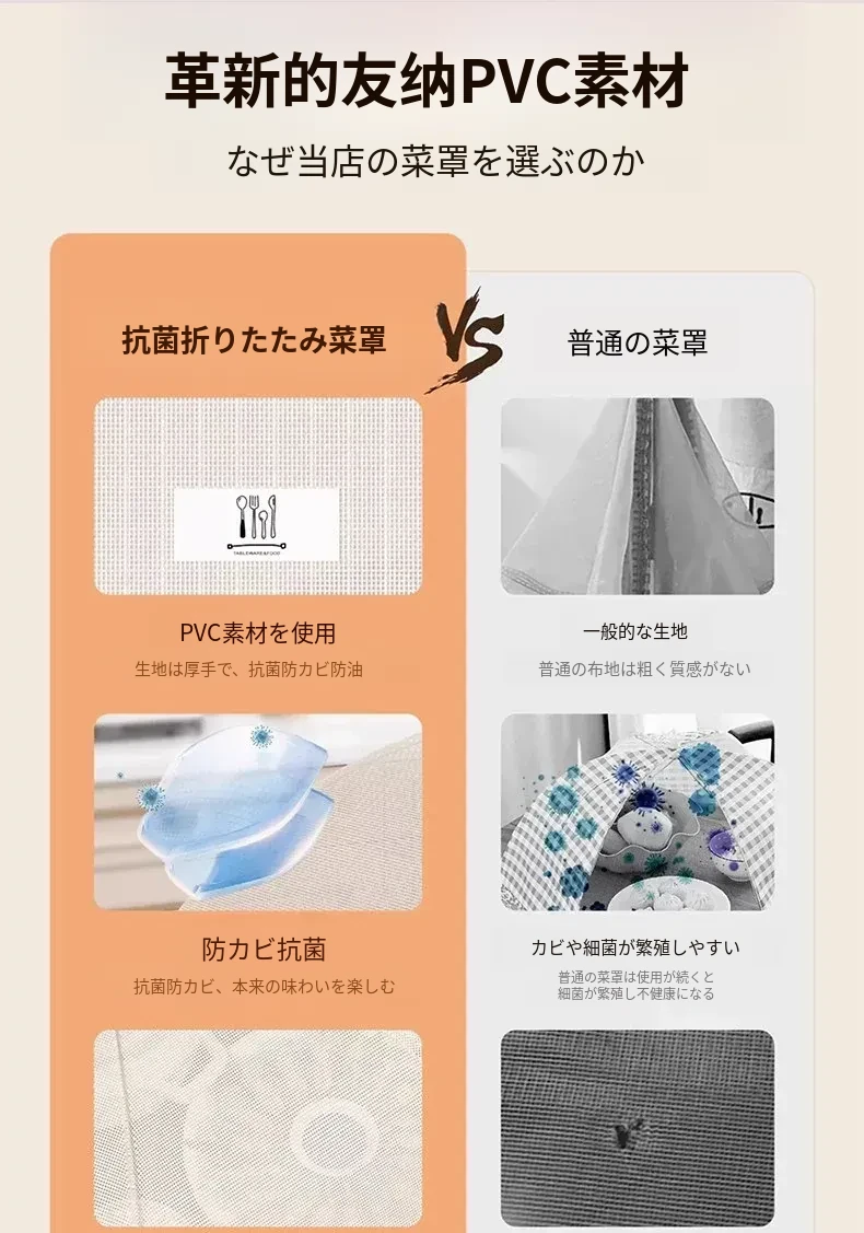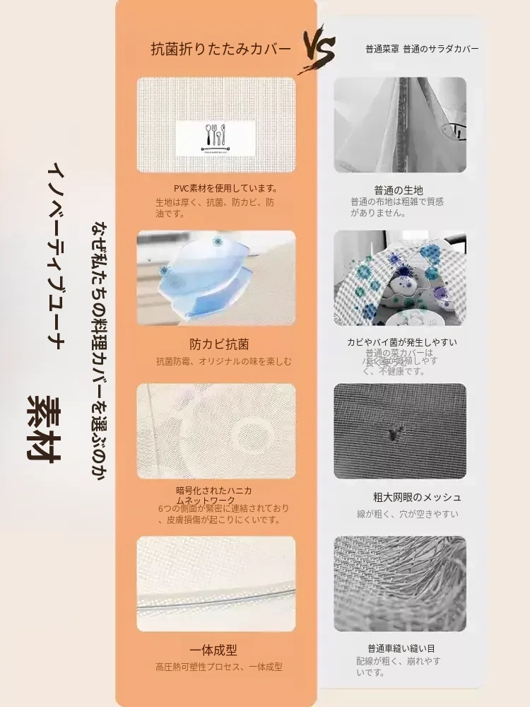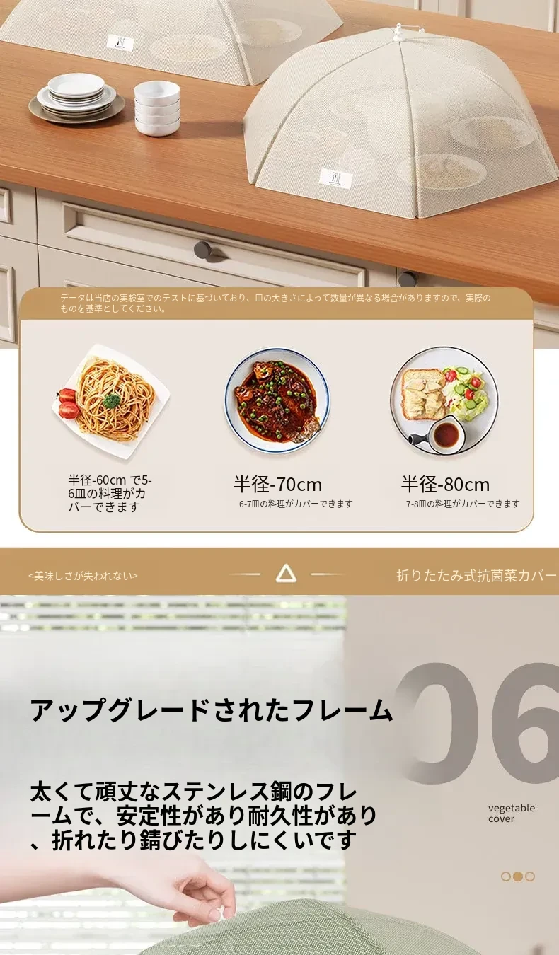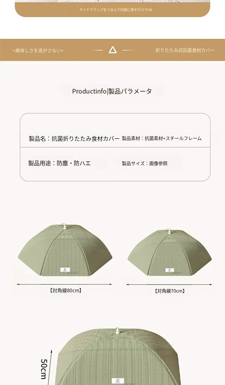 抗菌折りたたみ式テーブルカバー - 2025年新モデル!食べ物を守るフライ防止シールド、残り物も安心!家庭用に最適な万能カバーで、清潔さと便利さを両立!