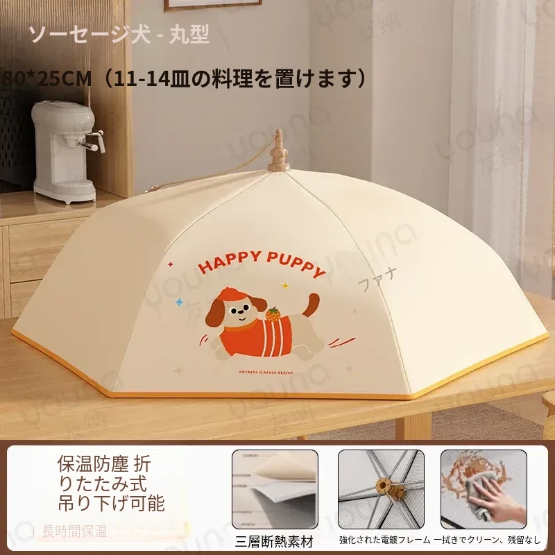 かわいい犬の楽しい食事⚡80cm円形タイプ⚡(厚手保温/約10-12皿の料理を収納)