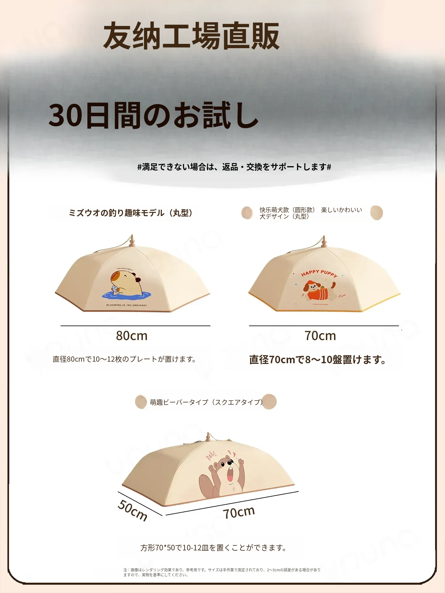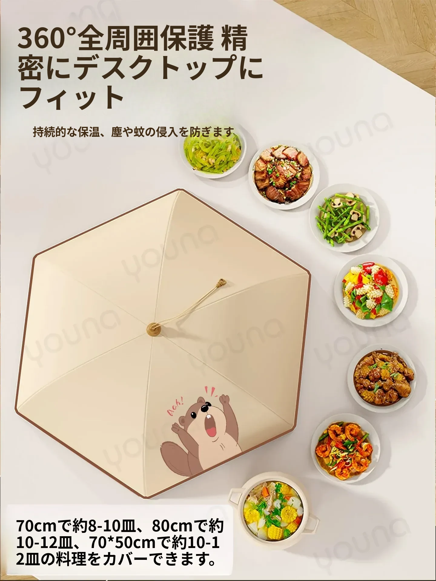 水遊びの小タヌキ⚡80cm円形タイプ⚡(厚手保温/約10-12皿の料理を収納)