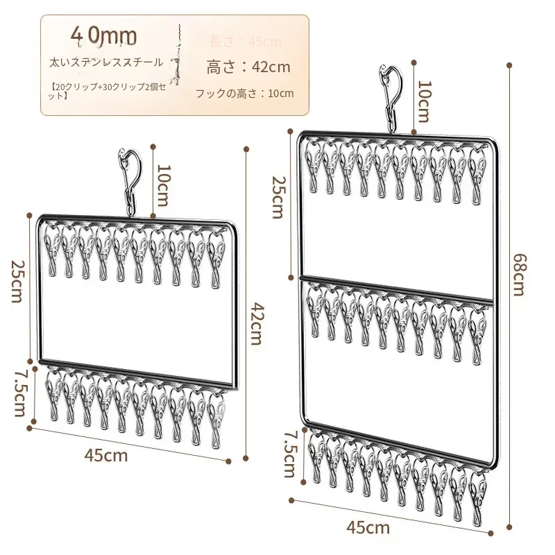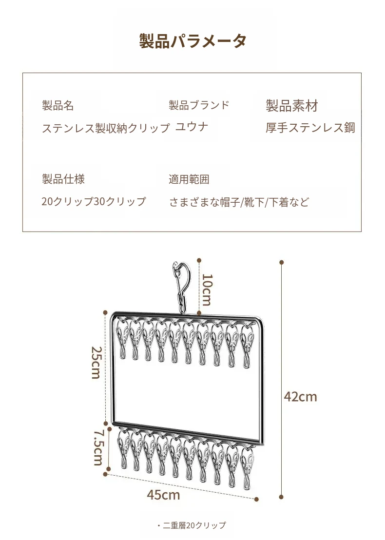【2層20クリップ】2個セット❤️アップグレード厚手/防風無痕