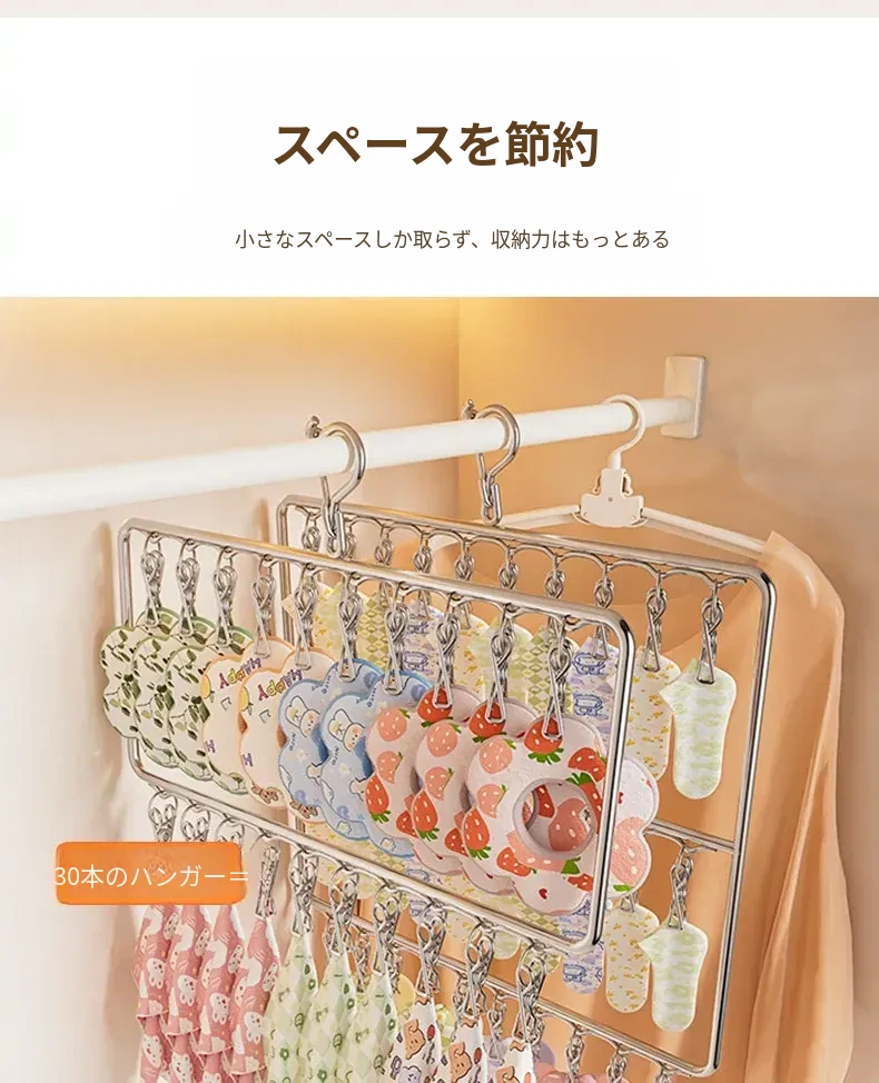 【3層30クリップ】2個セット❤️超省スペース/アップグレード厚手/防風無痕