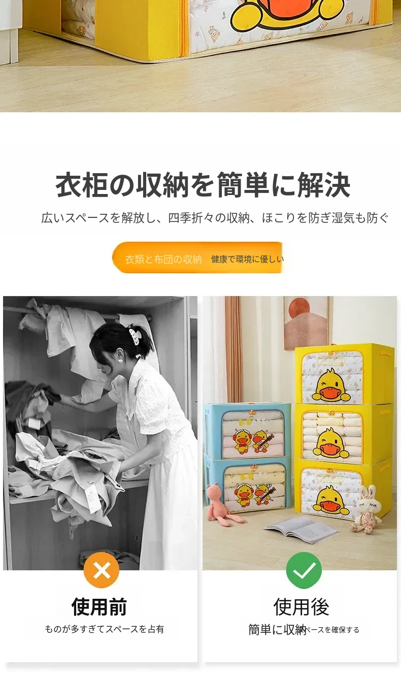 小さな黄色いアヒルの防湿・防カビ収納バッグ!引っ越しや整理整頓に最適なジッパー付きの素晴らしいアイテム。衣類や布団をスッキリ収納して、生活空間をもっと快適に!