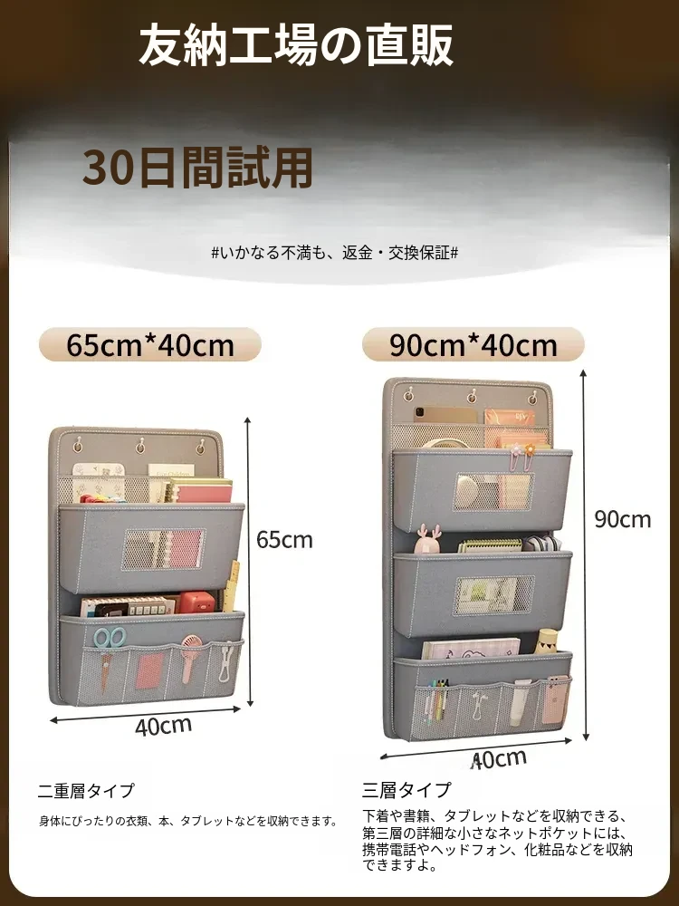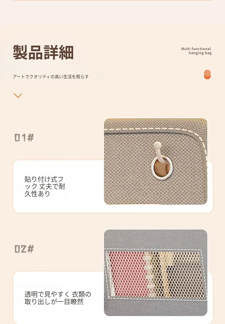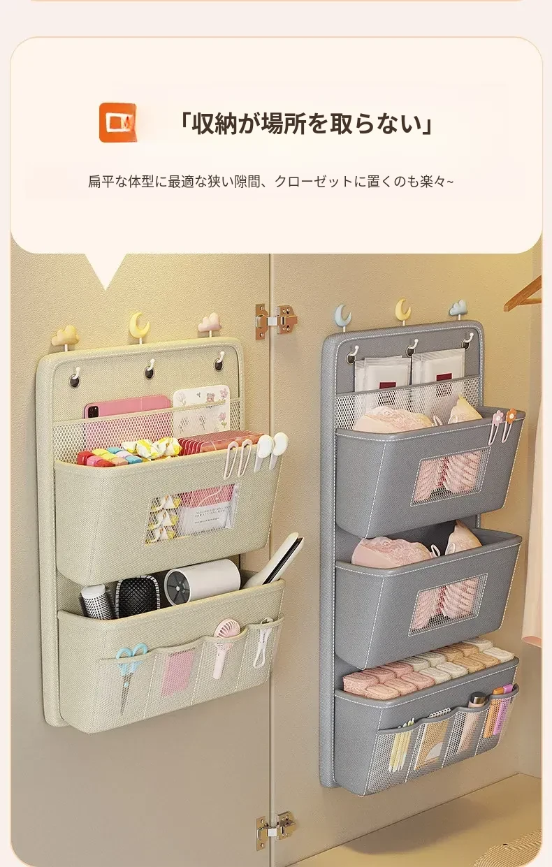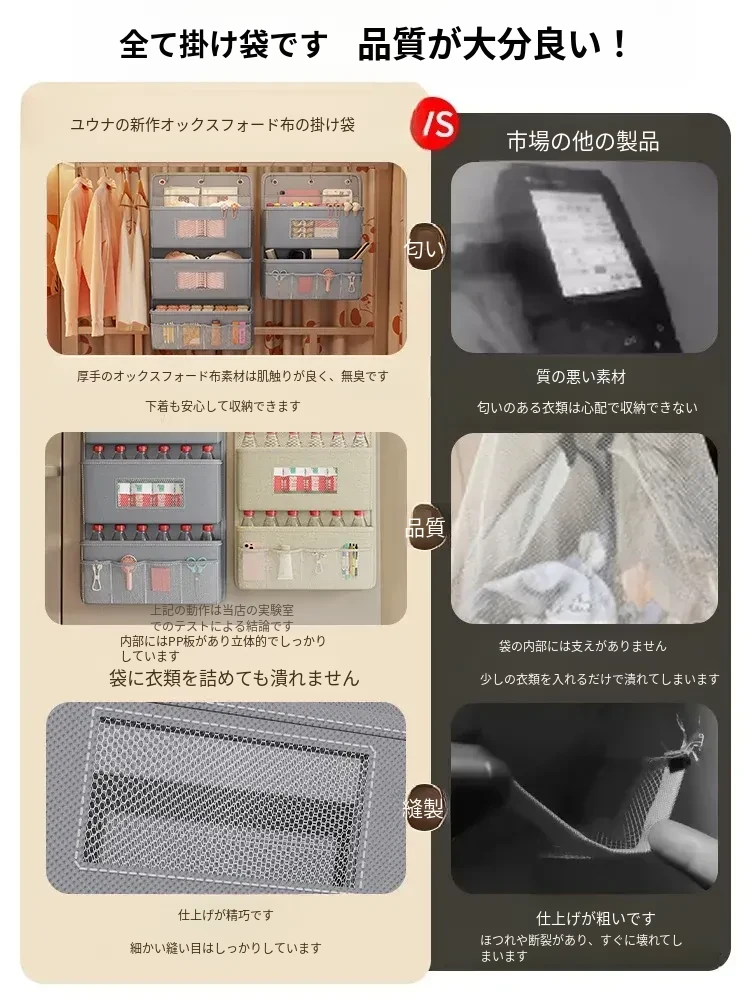 学生寮必見!内衣・靴下整理に最適な掛け袋 - スペースを有効活用して、整理整頓を簡単に実現!クローゼットのドア裏にピッタリの便利アイテム!
