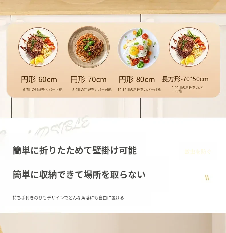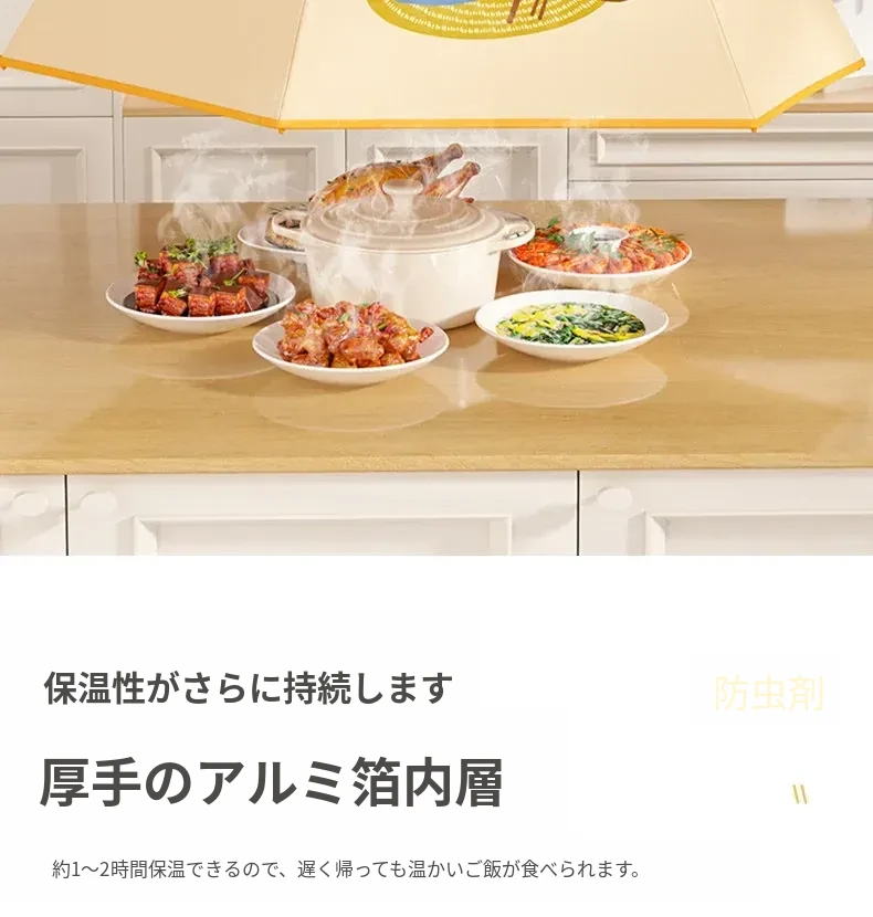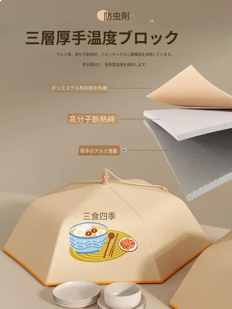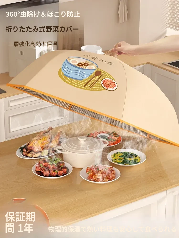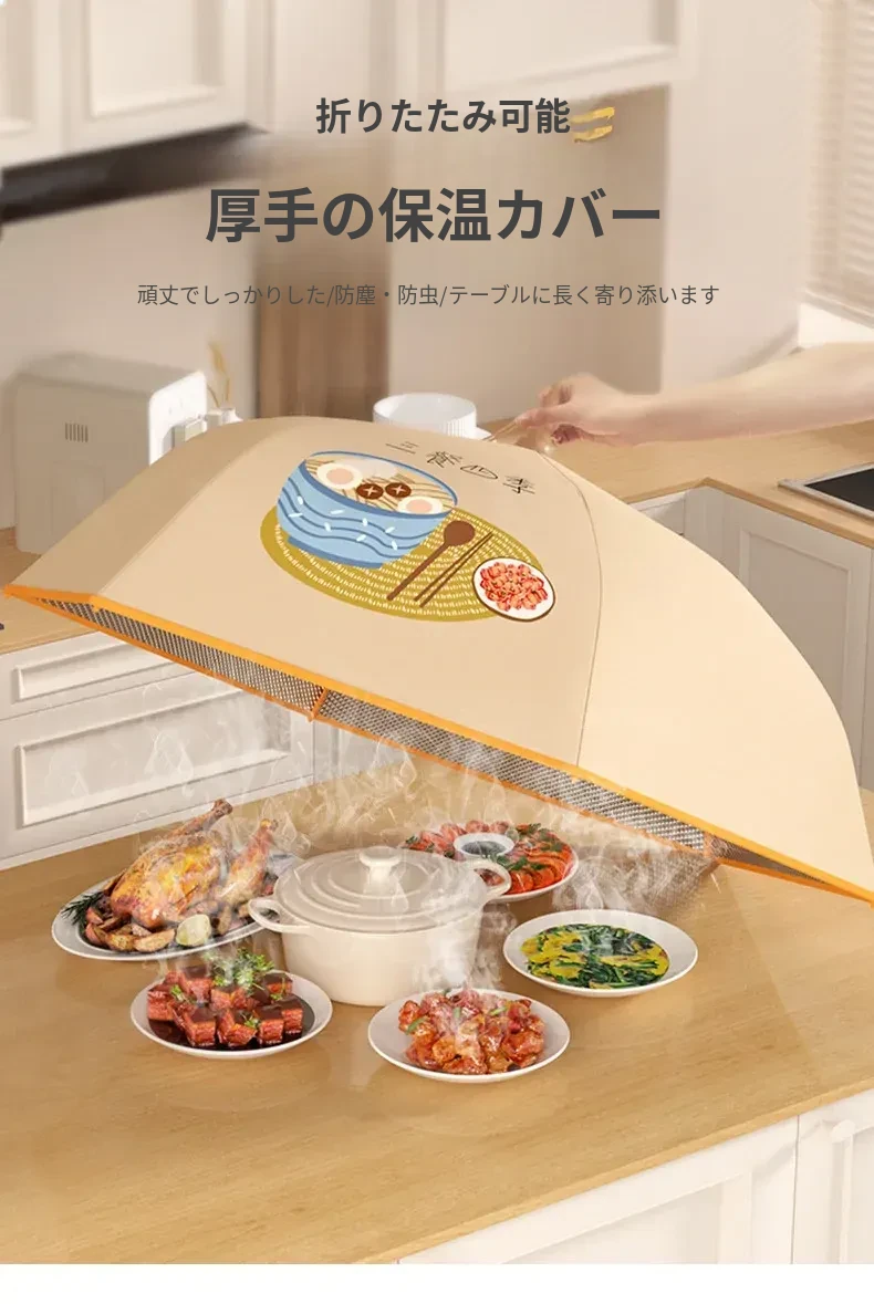 折りたたみ式保温食品カバー - 家庭用の熱々料理をしっかり守る!防塵効果抜群で、冬の残り物も安心。新登場の便利アイテムで、食卓をスマートに演出!