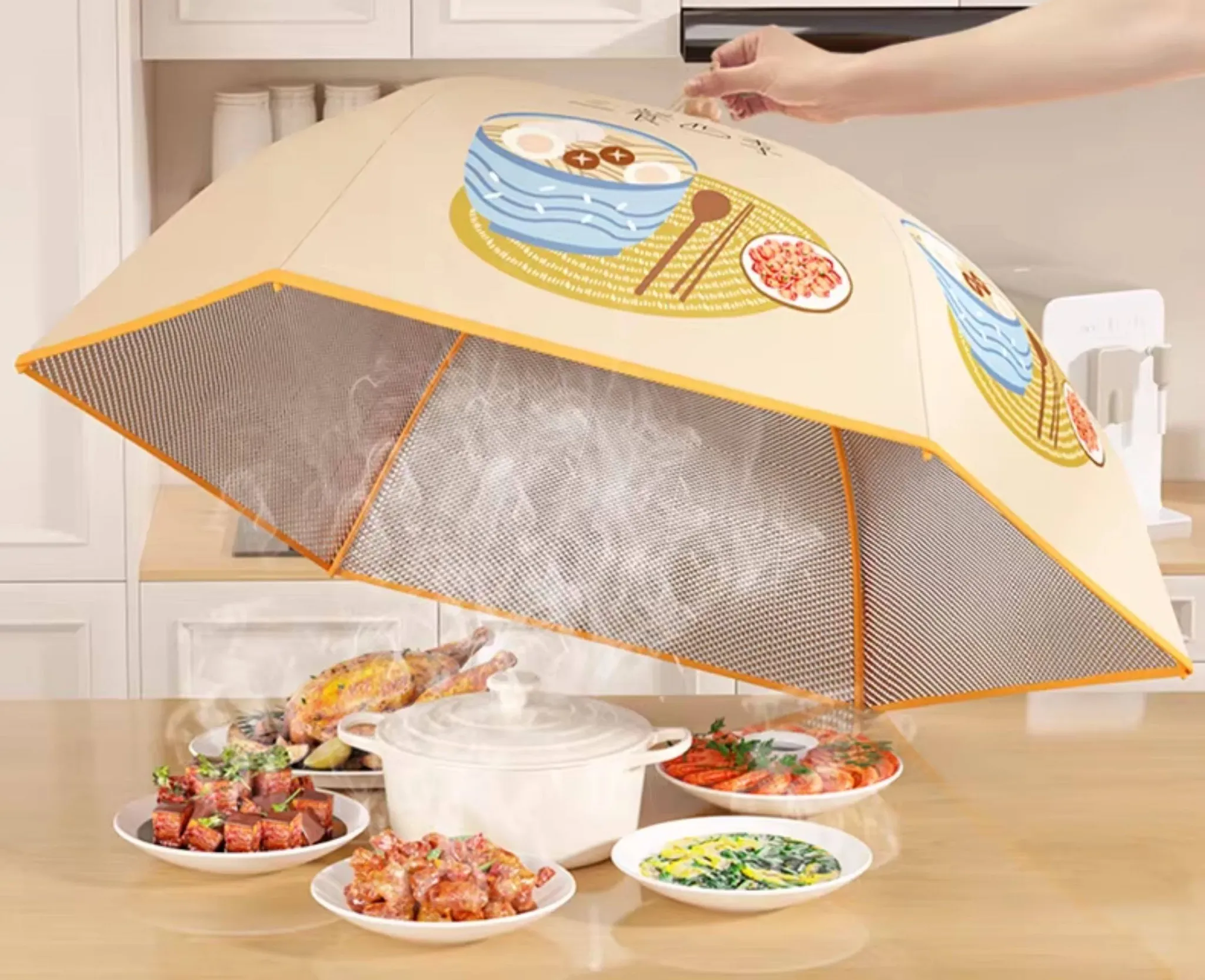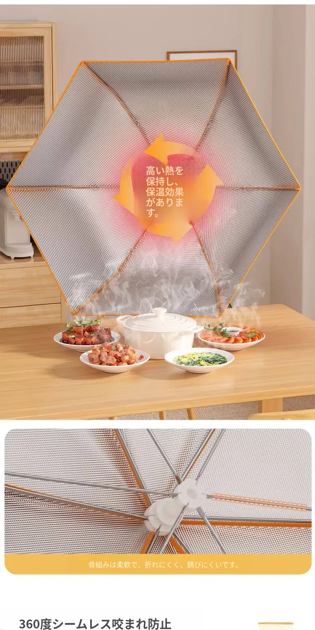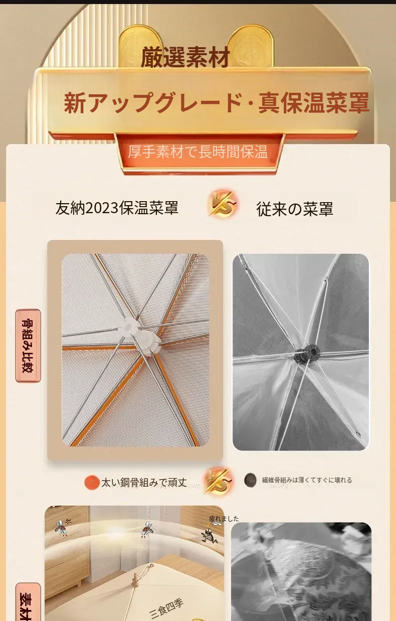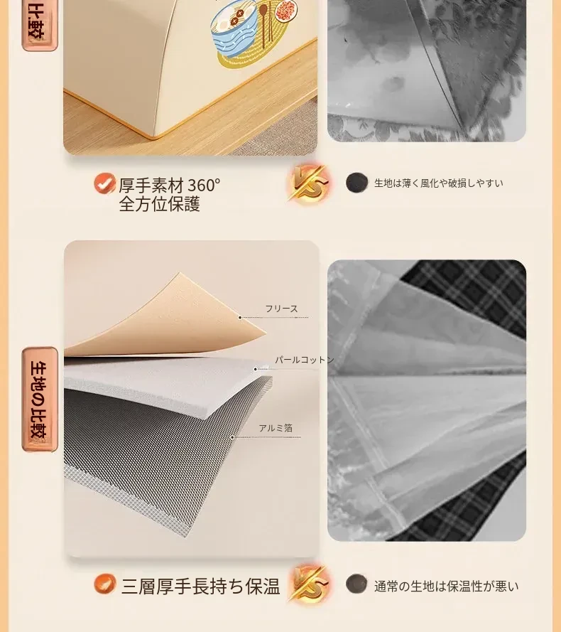 折りたたみ式保温食品カバー - 家庭用の熱々料理をしっかり守る!防塵効果抜群で、冬の残り物も安心。新登場の便利アイテムで、食卓をスマートに演出!