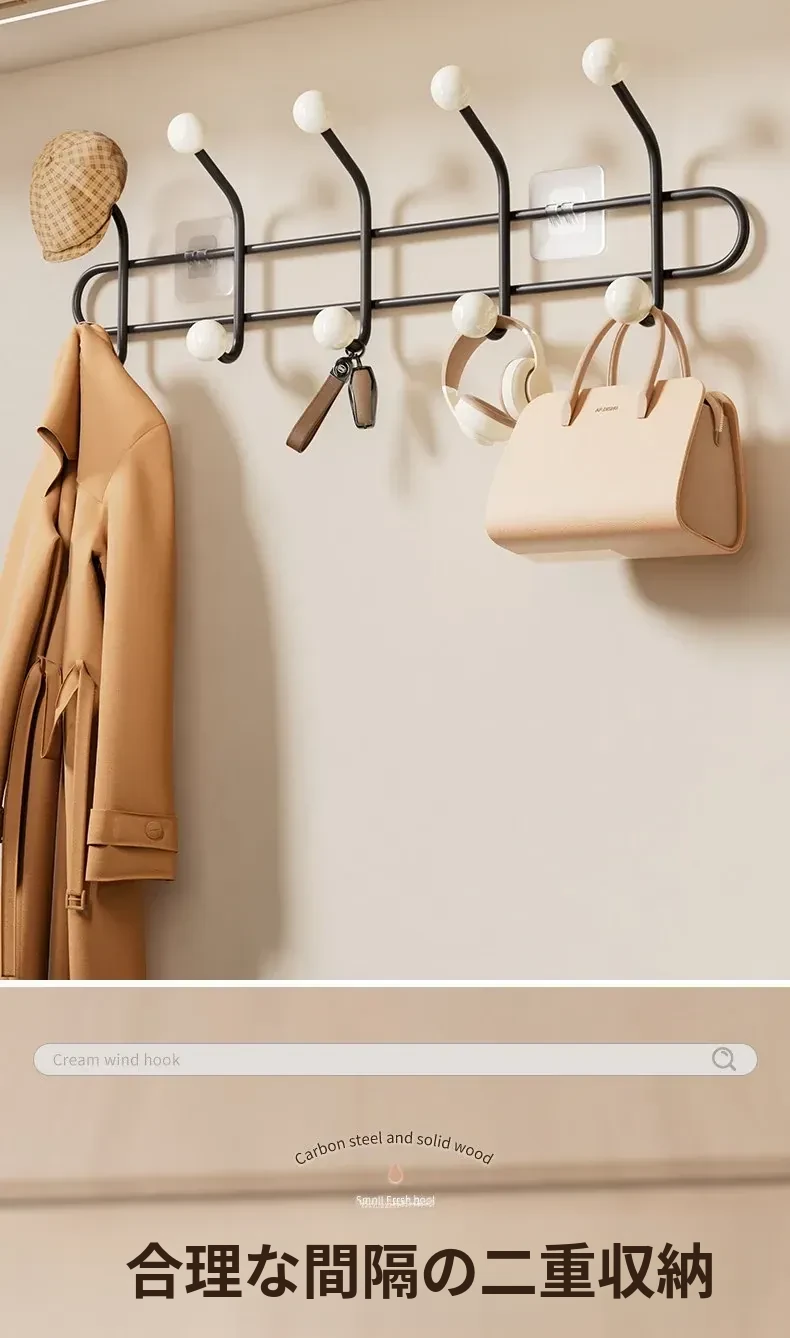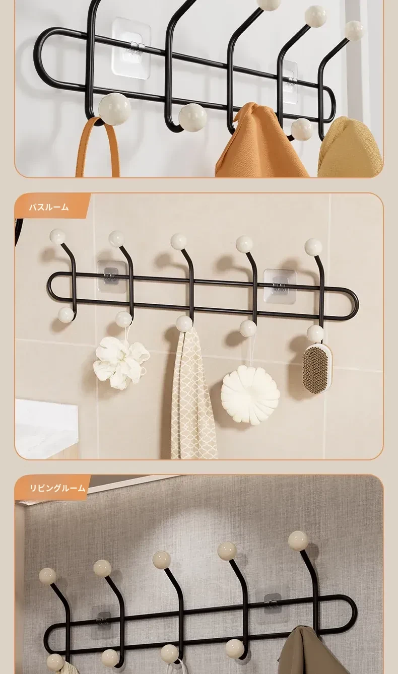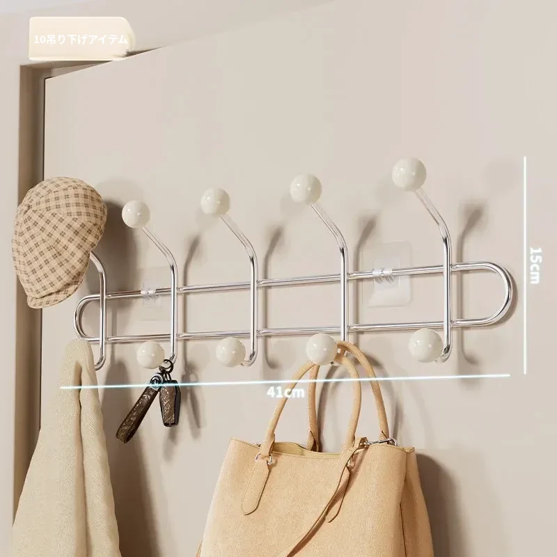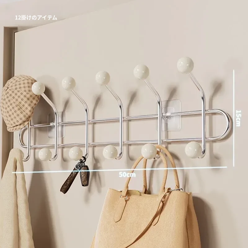 穴あけ不要!家用ドア背面用フック - 強力粘着で帽子や衣服をしっかり収納!玄関にぴったりの便利な粘着フックで、スペースを有効活用しましょう!