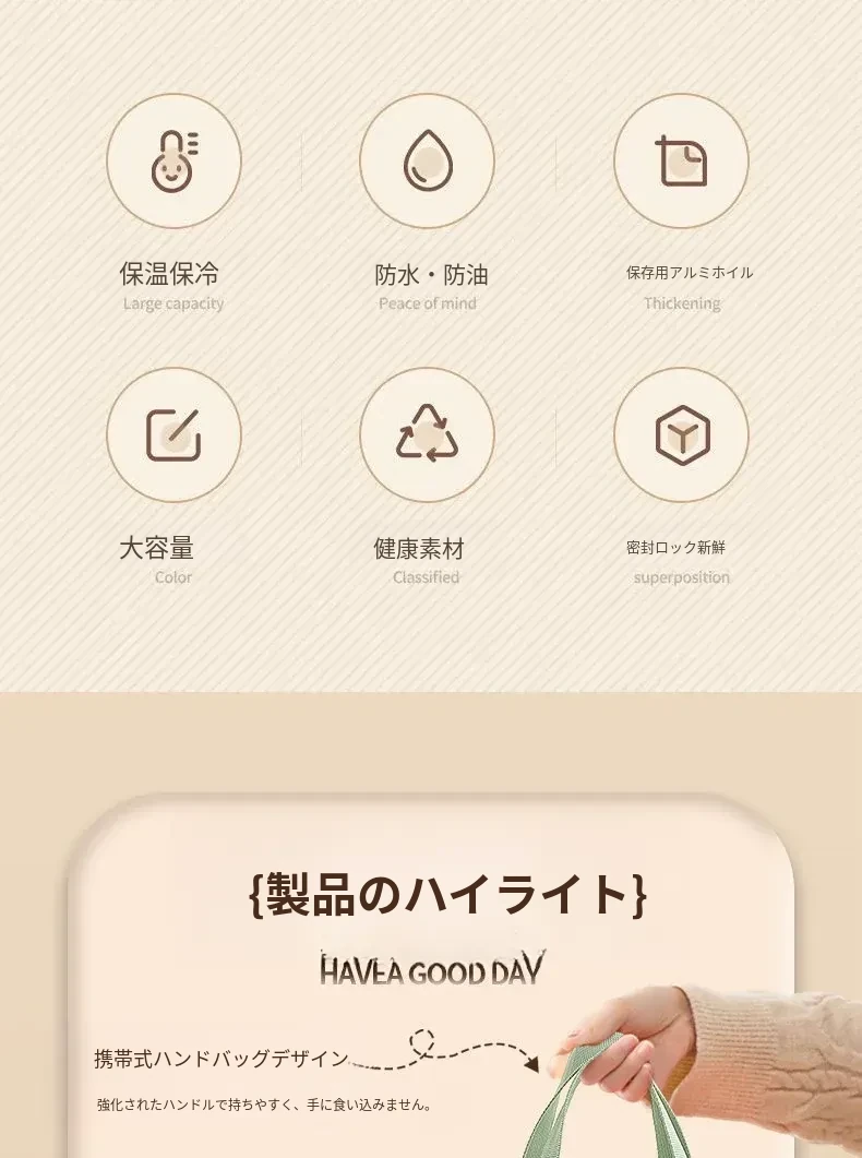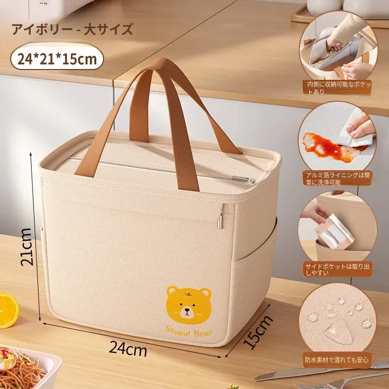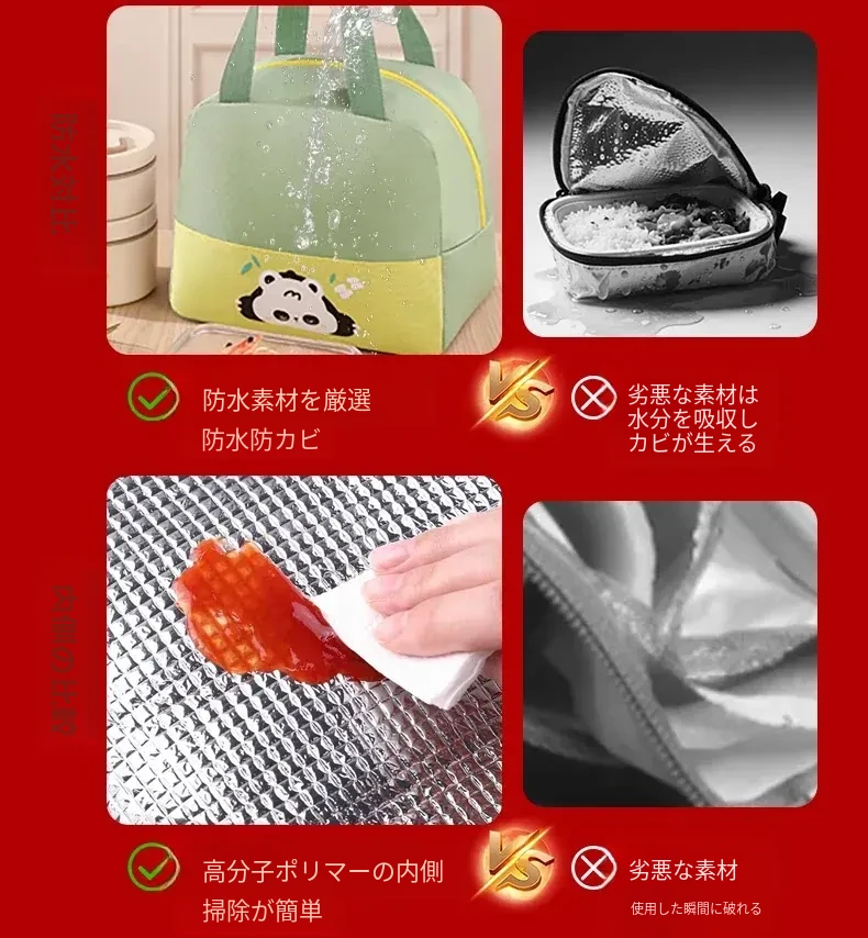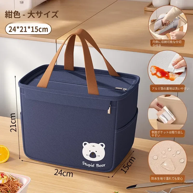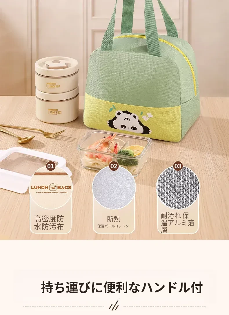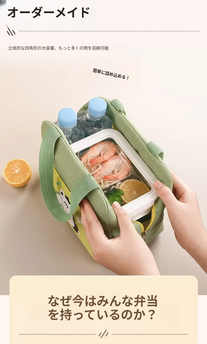 大容量・防水・防油 お弁当バッグ - 学生やビジネスパーソンに最適!厚手の持ち手付きランチバッグで、美味しいお弁当をいつでも持ち運び!