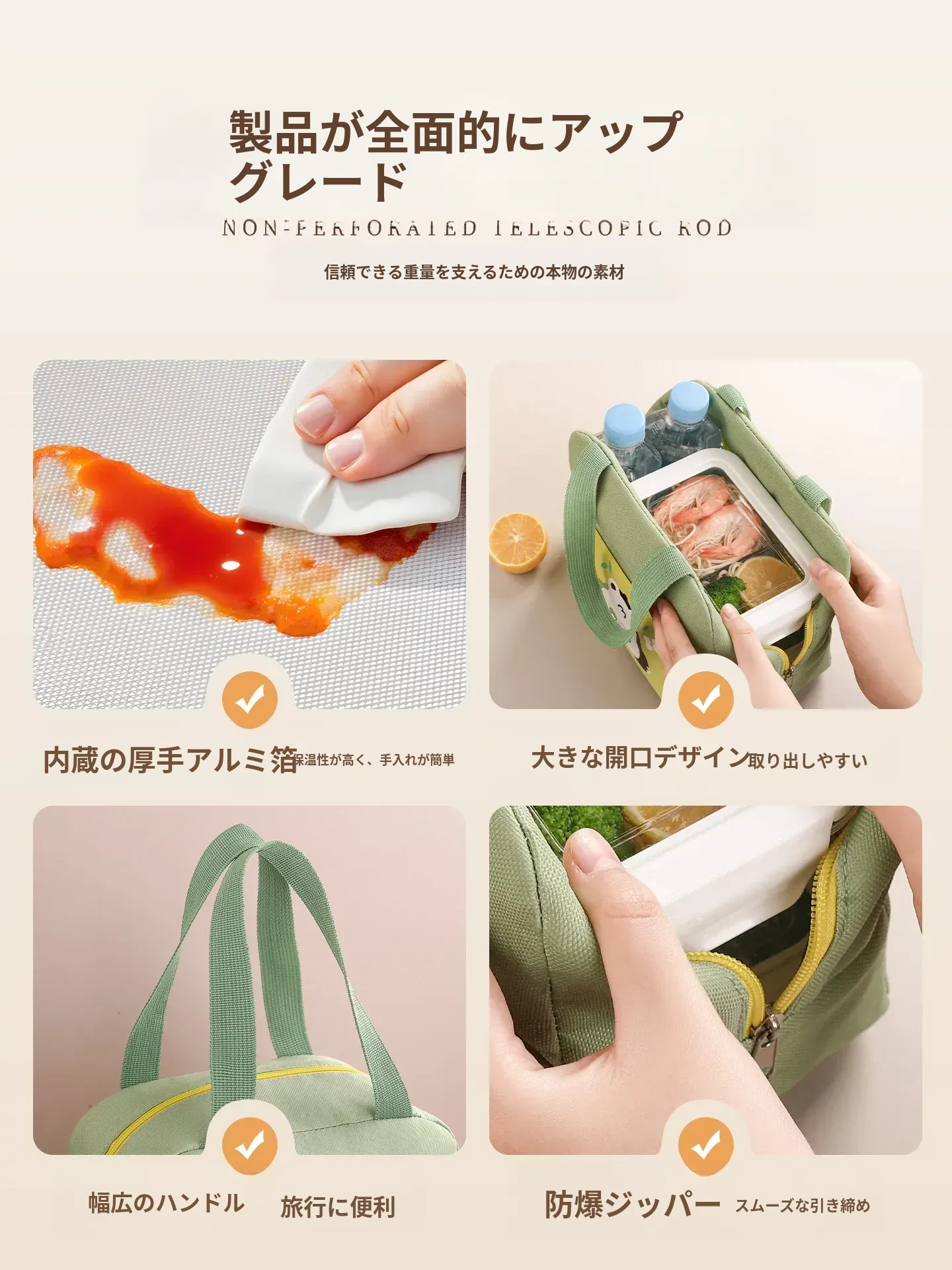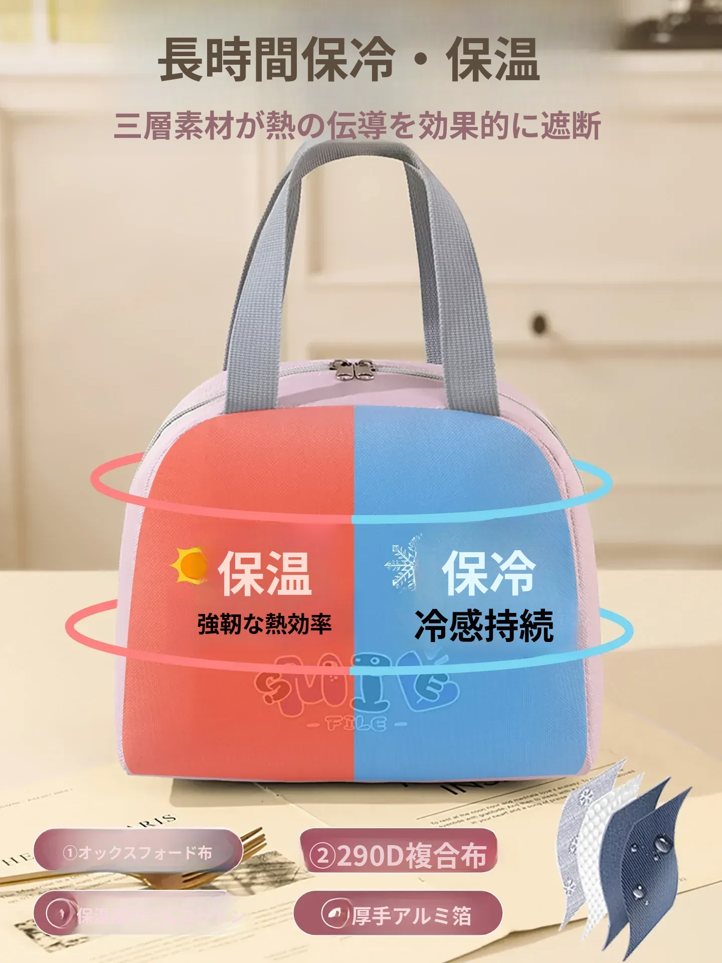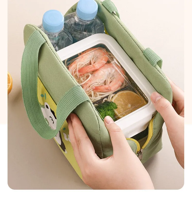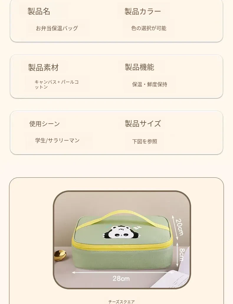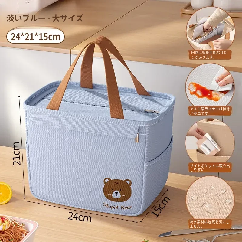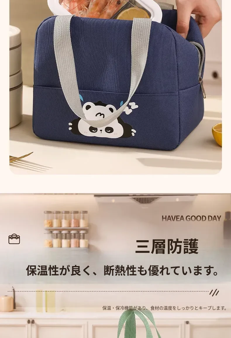 大容量・防水・防油 お弁当バッグ - 学生やビジネスパーソンに最適!厚手の持ち手付きランチバッグで、美味しいお弁当をいつでも持ち運び!