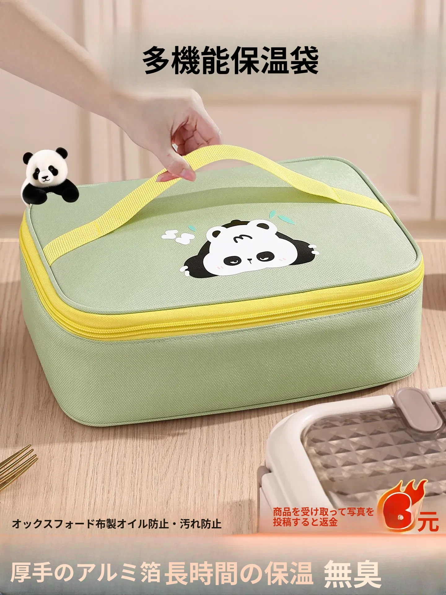 人気商品!スクエア✨バンブーグリーン【四層加厚防油汚れ丨無臭で水洗い可能丨保温保冷】