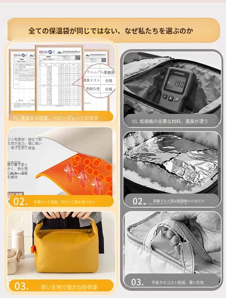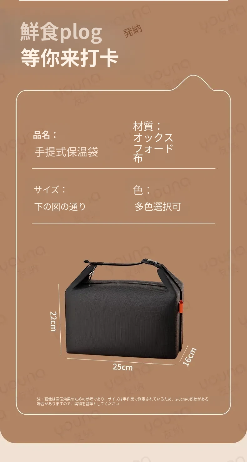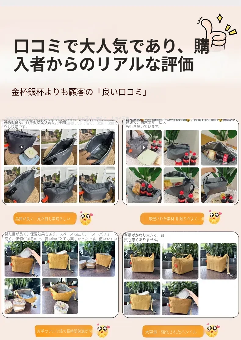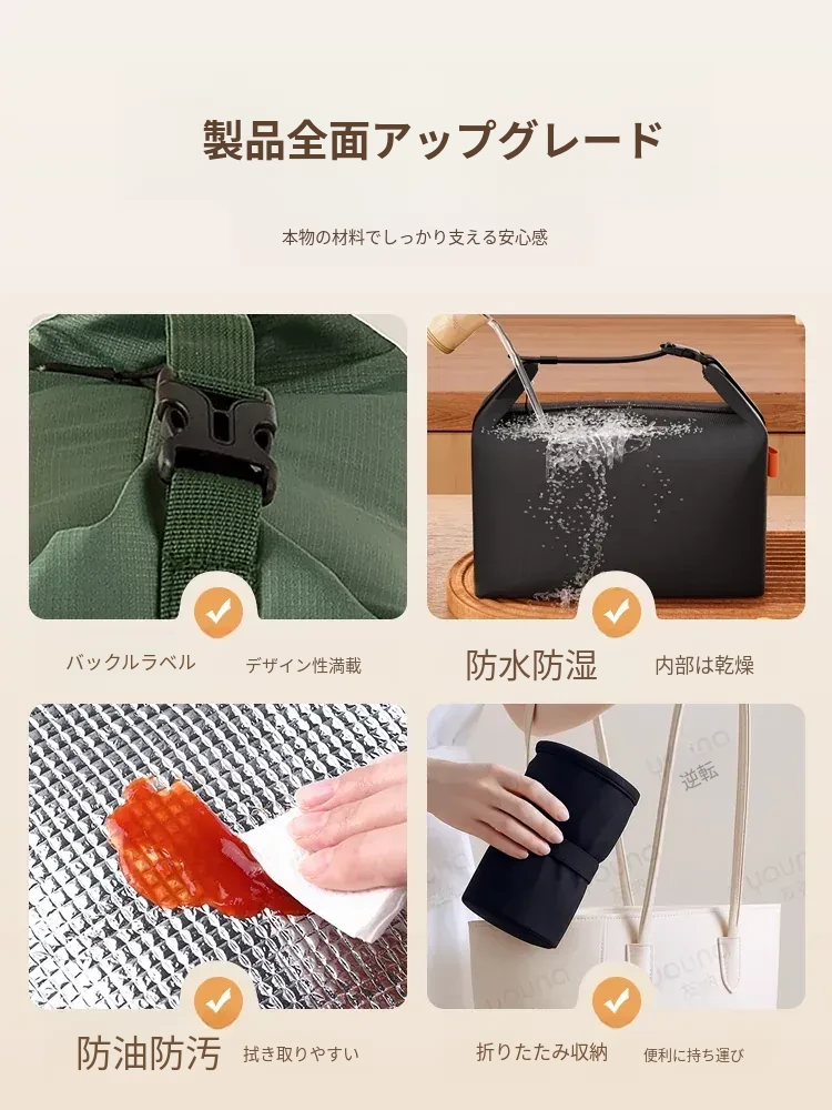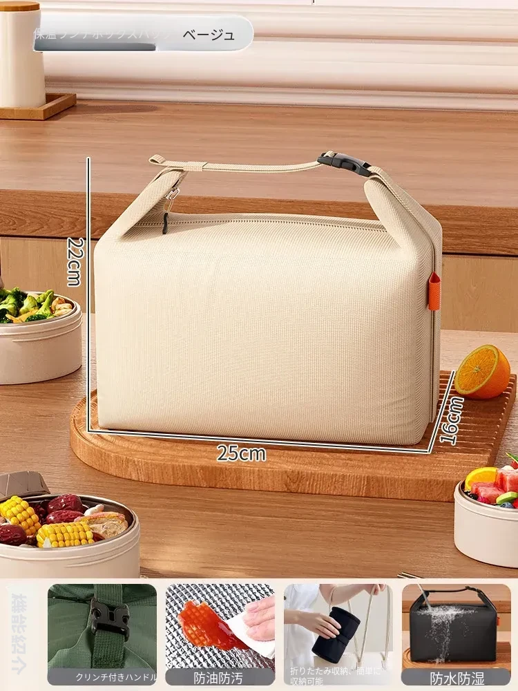おしゃれな保温ランチバッグ!上班族や小学生に最適な厚手アルミフォイルの弁当包。手提げタイプで持ち運びも楽々、温かい料理をいつでも楽しめます!仕事や学校にぴったりの便利アイテムです。