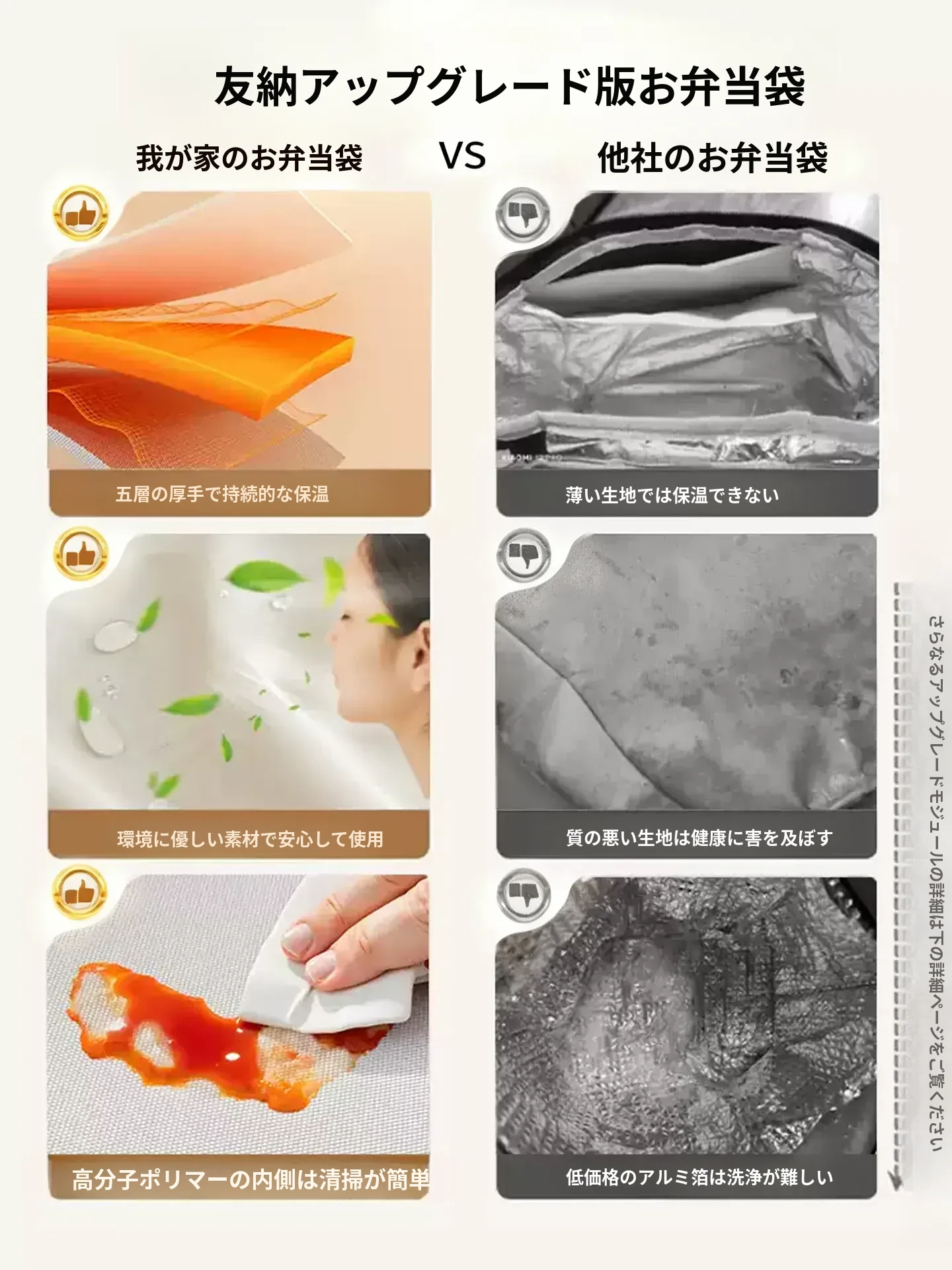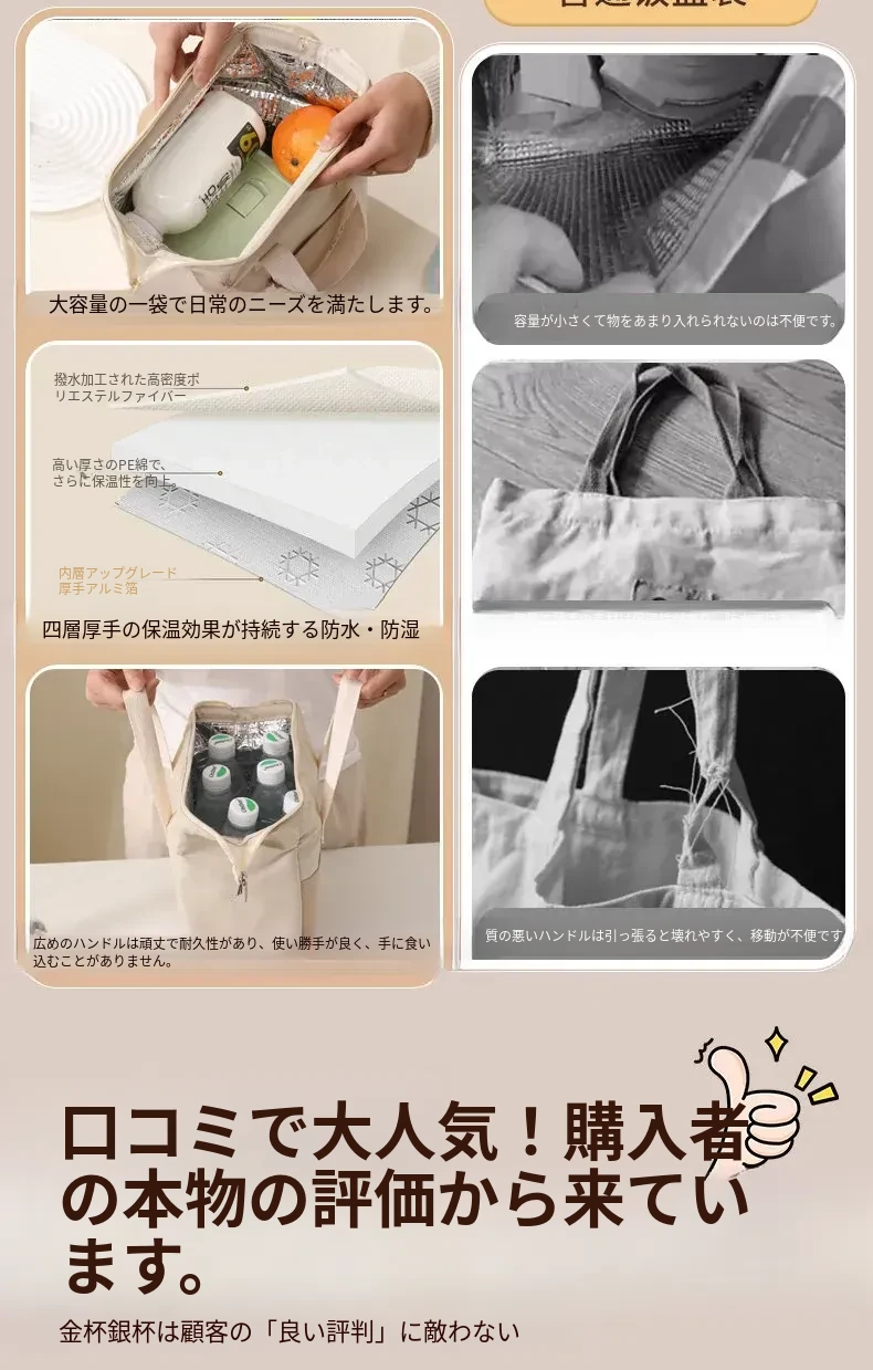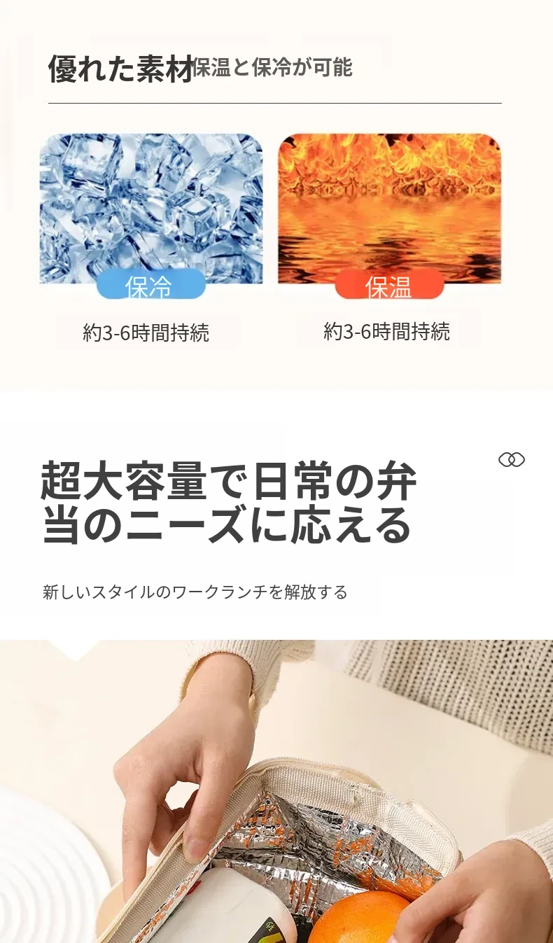 防水保温ランチバッグ - 厚手アルミ箔製で、通勤・学生に最適!お弁当をしっかり守る、スタイリッシュで実用的なデザイン。食事の温かさをキープして、いつでも美味しくいただけます!