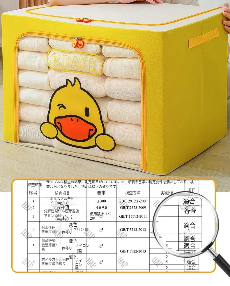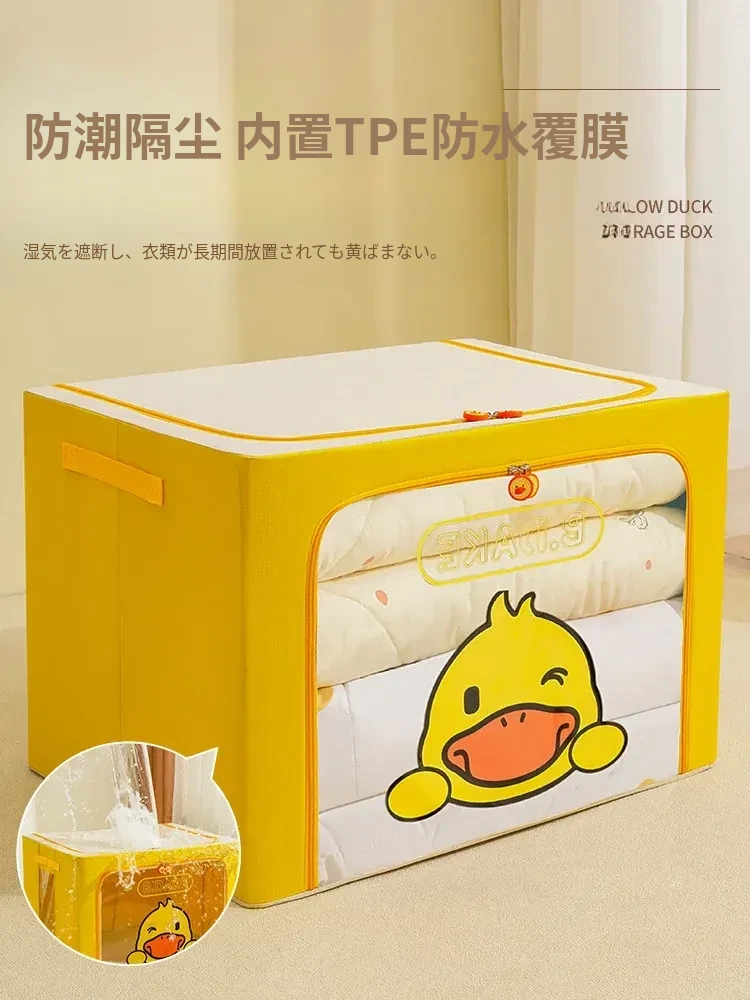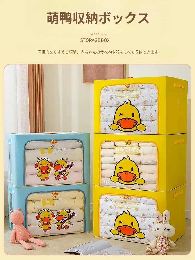 かわいい小黄鸭デザインの衣類収納ボックス!子供部屋にぴったりの布製で、折りたたみ可能な大容量収納。衣類整理が楽しくなる、スマートでおしゃれなアイテムです。