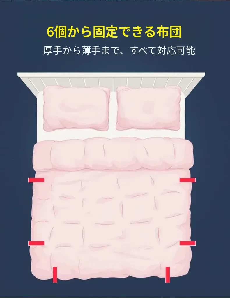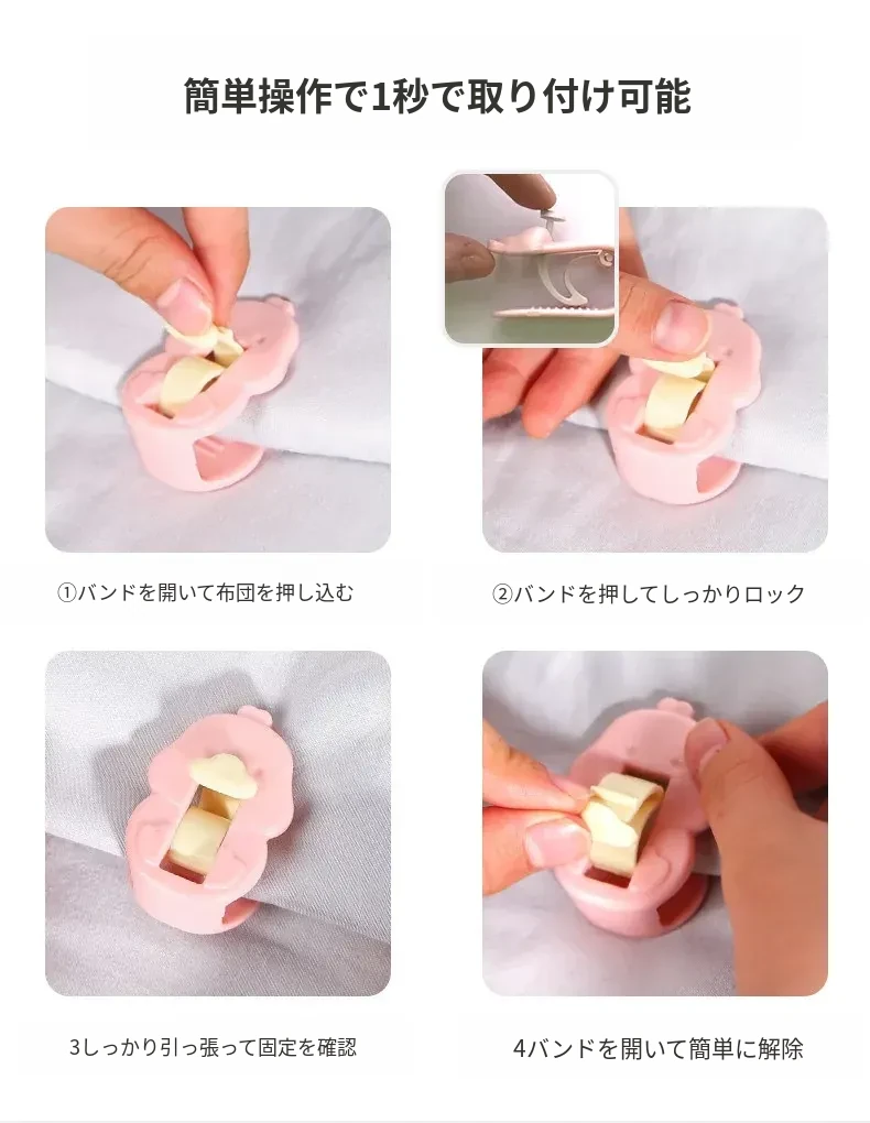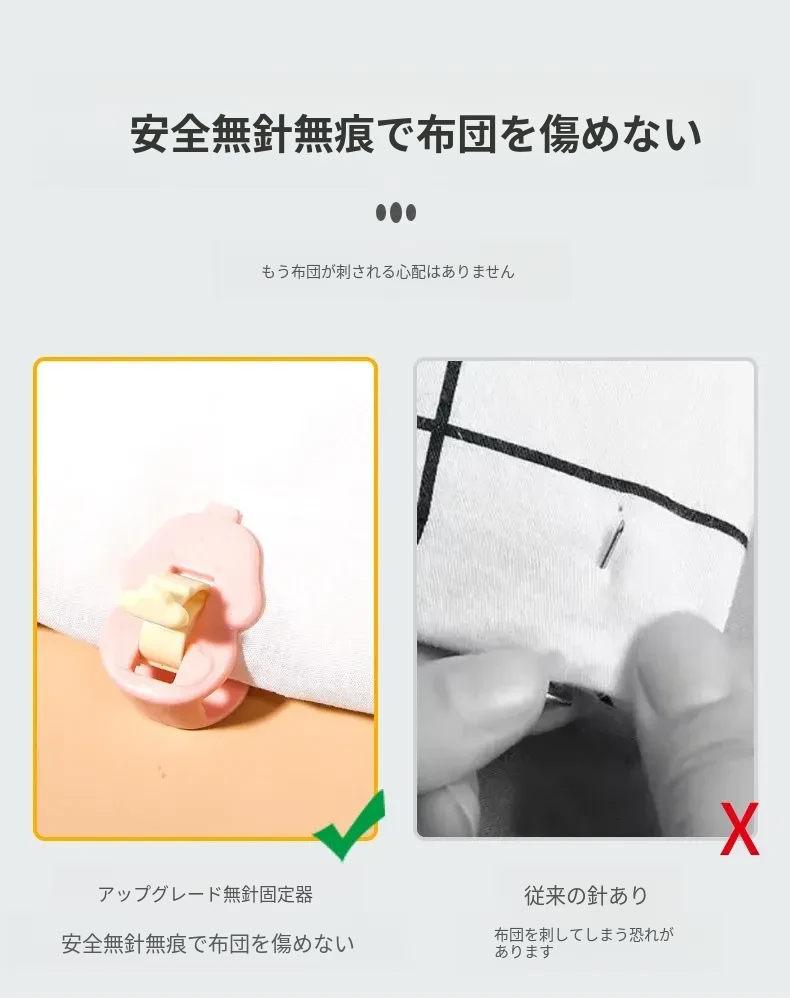新型無針安全隠形ベッドシーツ固定器 - すべり止め付きで快適な睡眠をサポート!掛け布団やシーツがずれない魔法のクリップ!