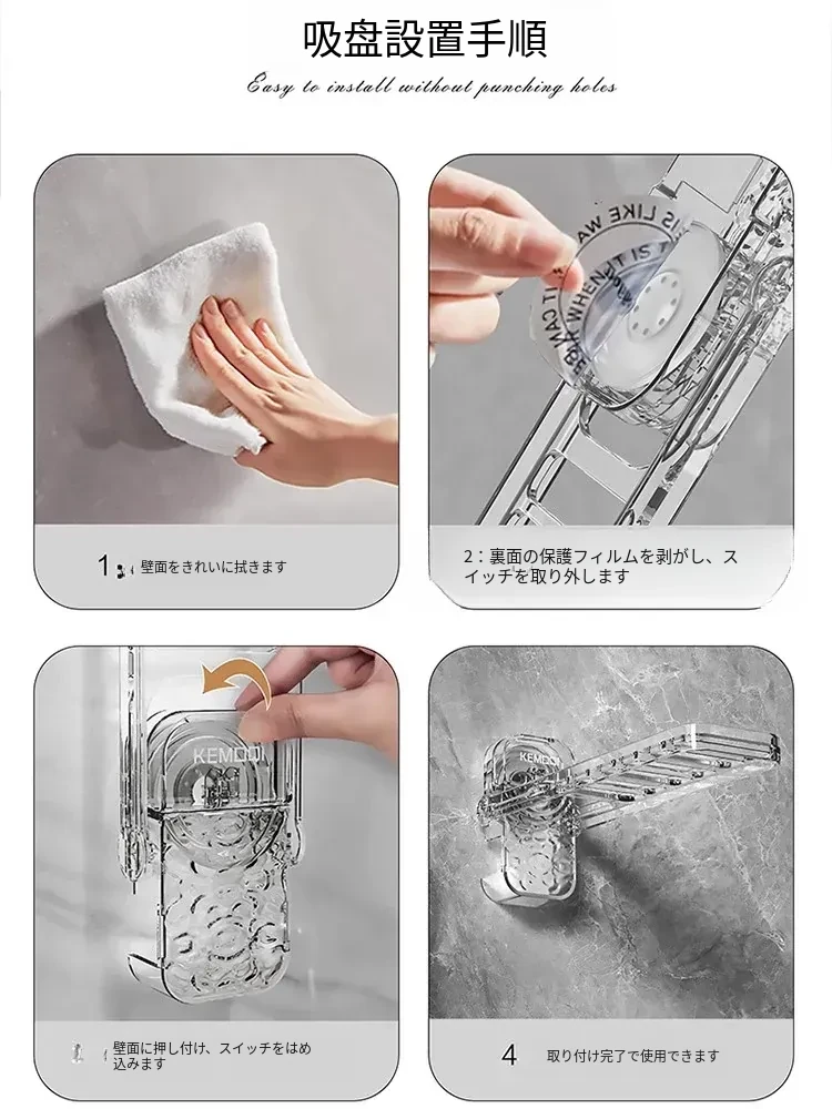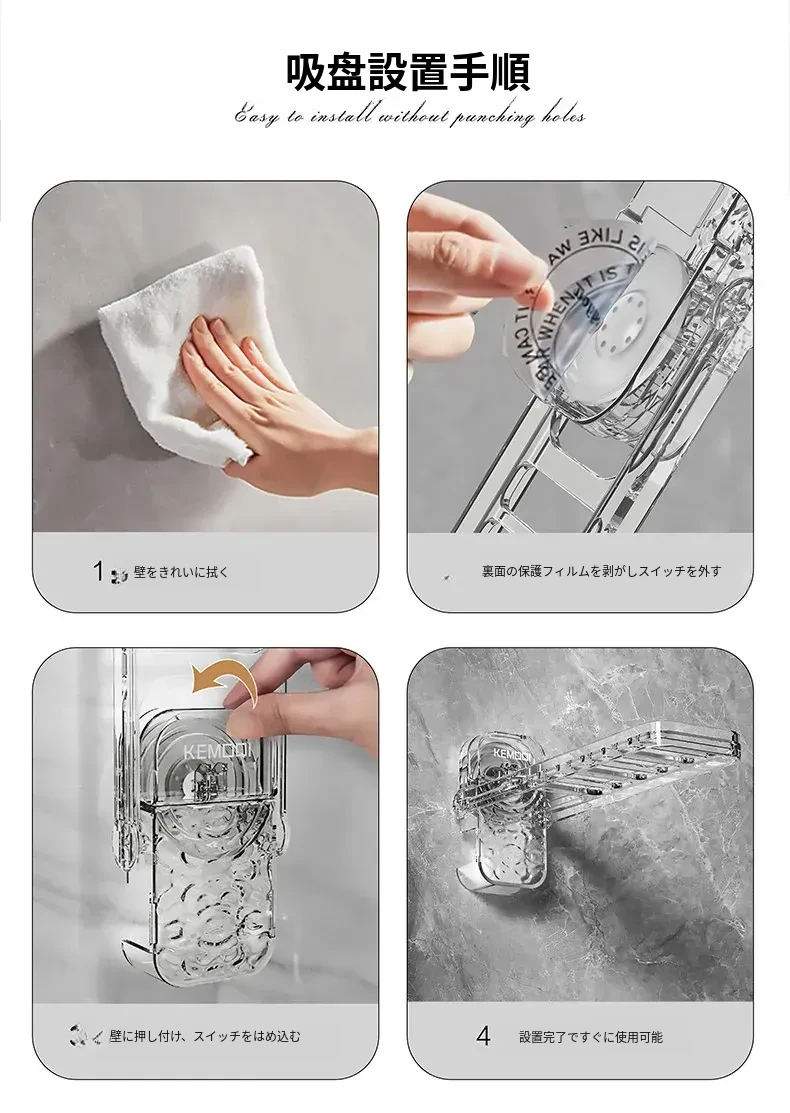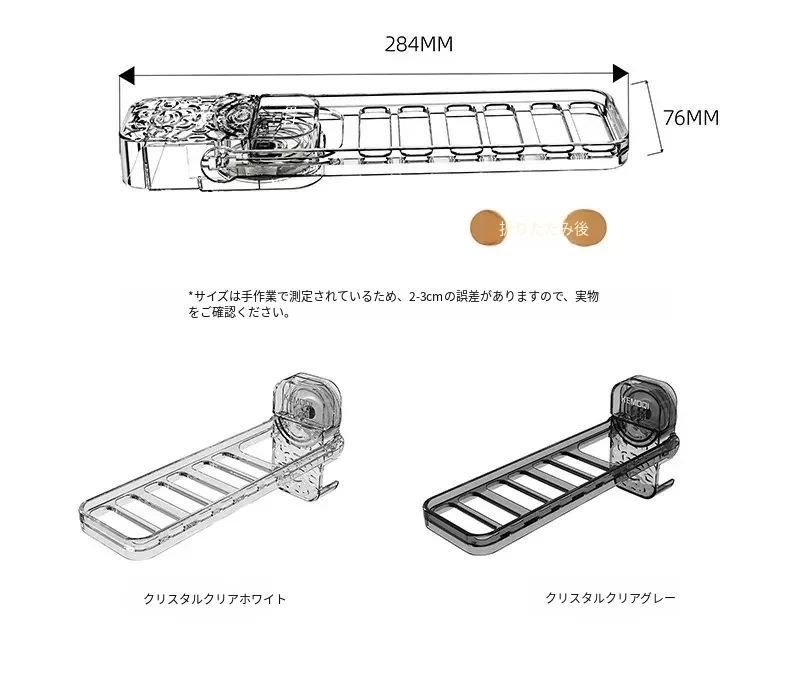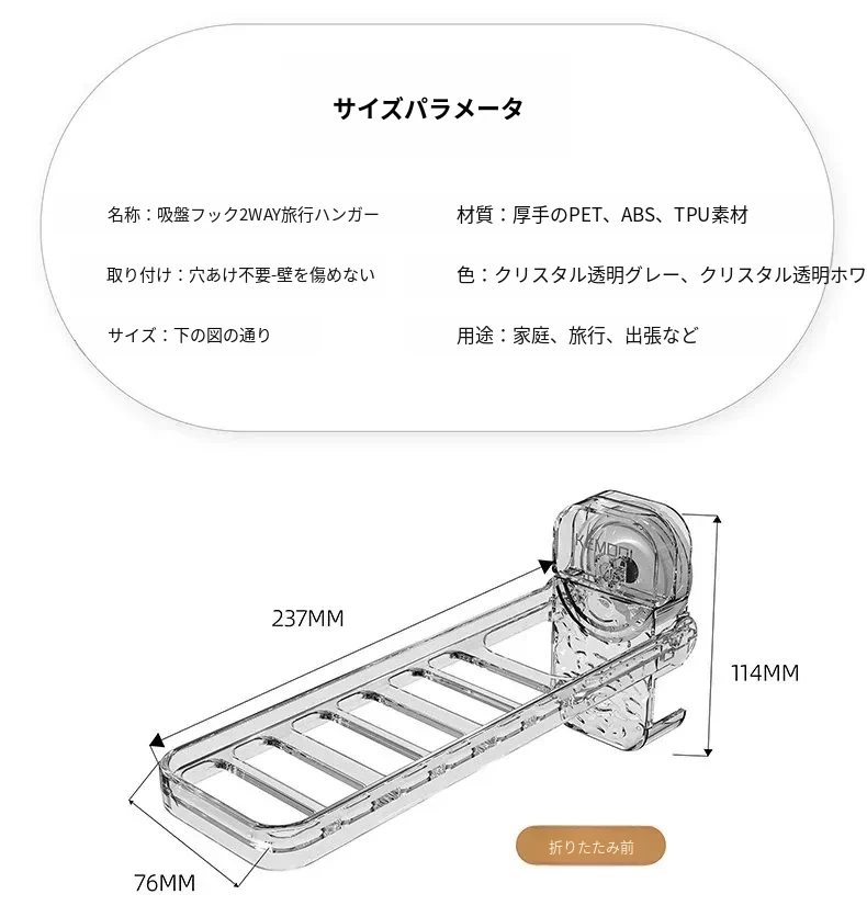 体験1個セット-エレガントグレー【90°折りたたみ/6穴衣類掛け/吸盤フック両用】旅行必需品
