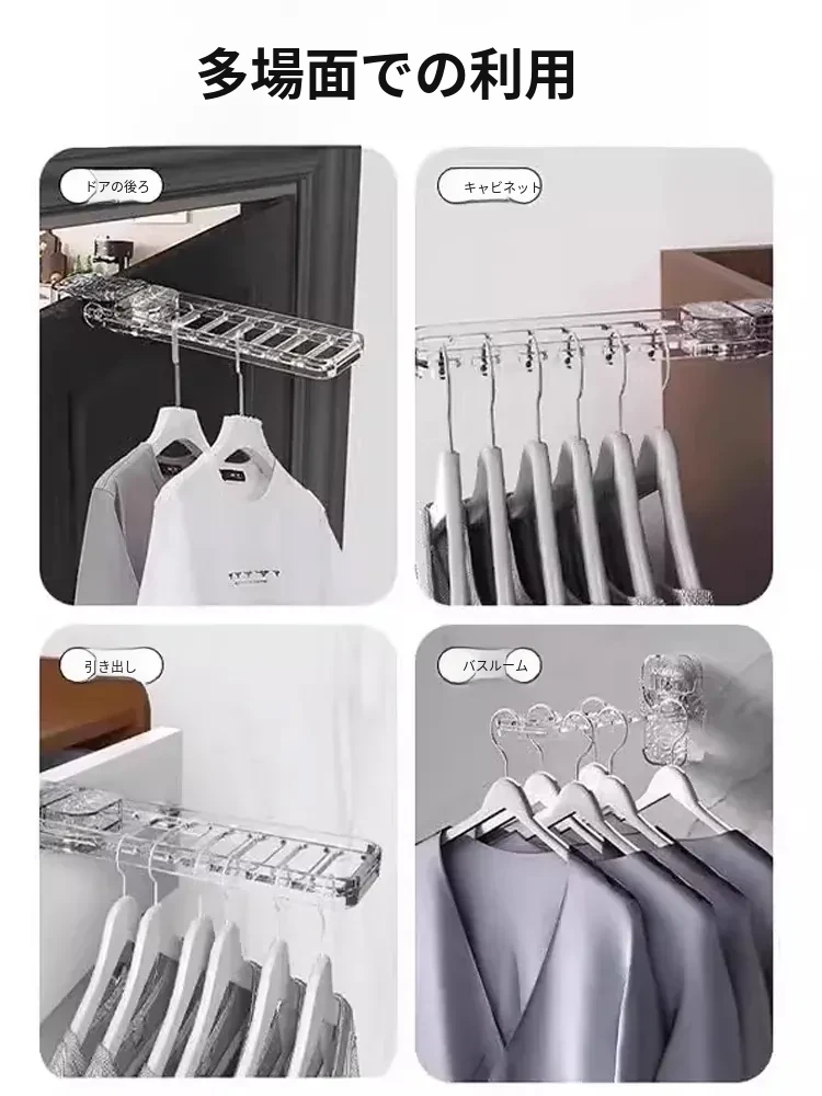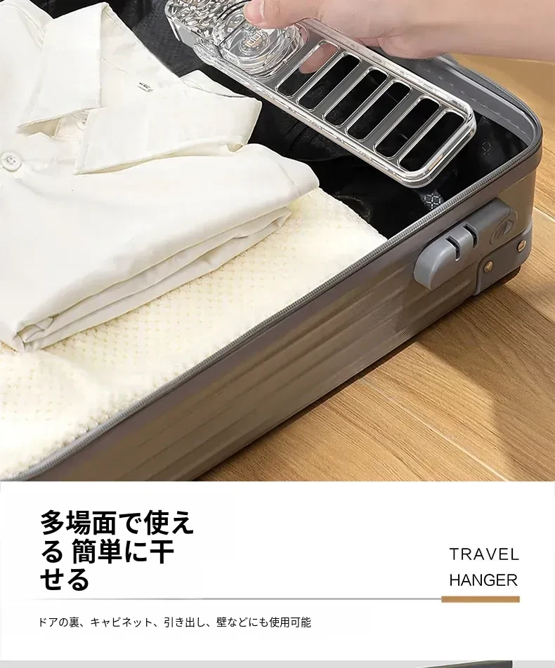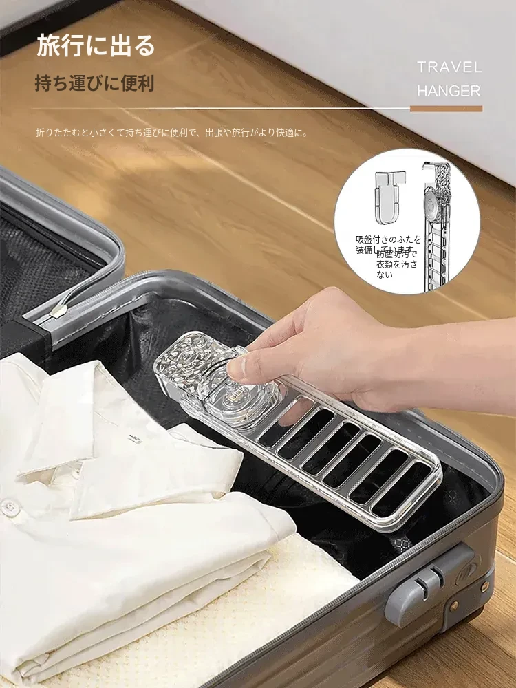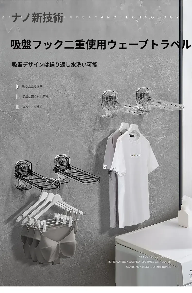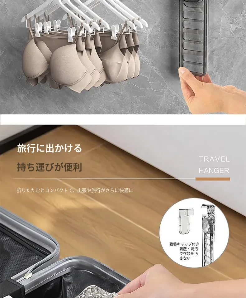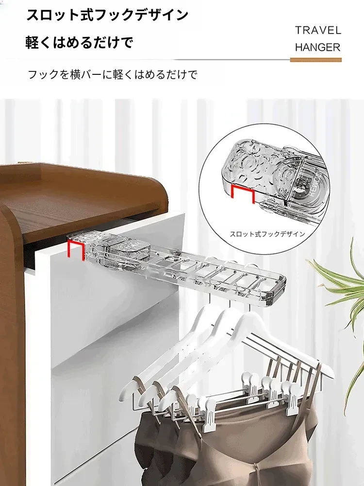 旅行に最適!折りたたみ式ポータブルハンガー - 出張やホテルでの衣類干しに便利!宿泊先の窓や室内で使える多機能フック付き。手軽に衣類を乾かして、快適な旅をサポートします!