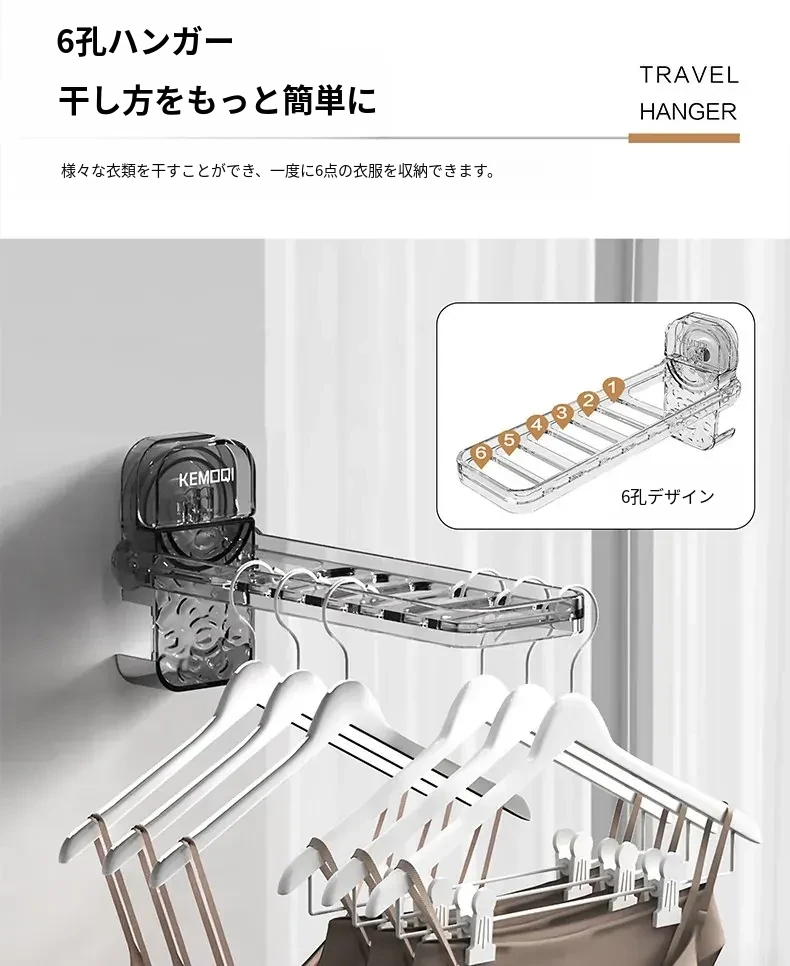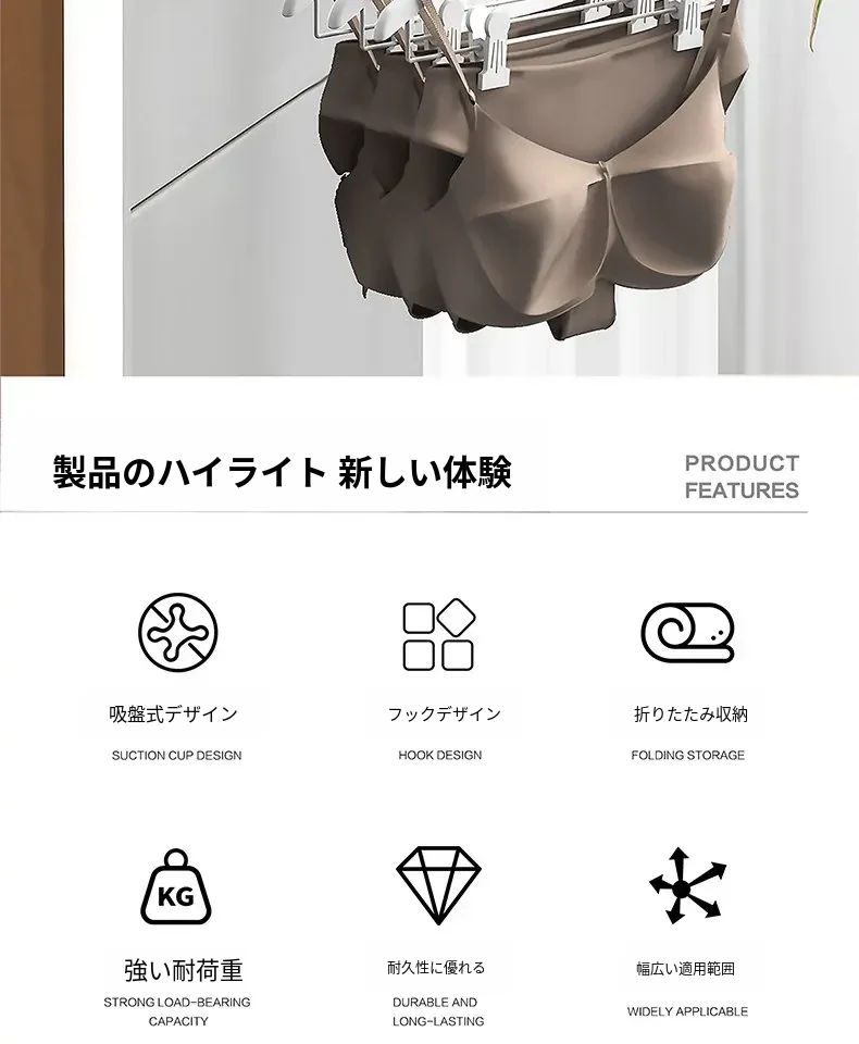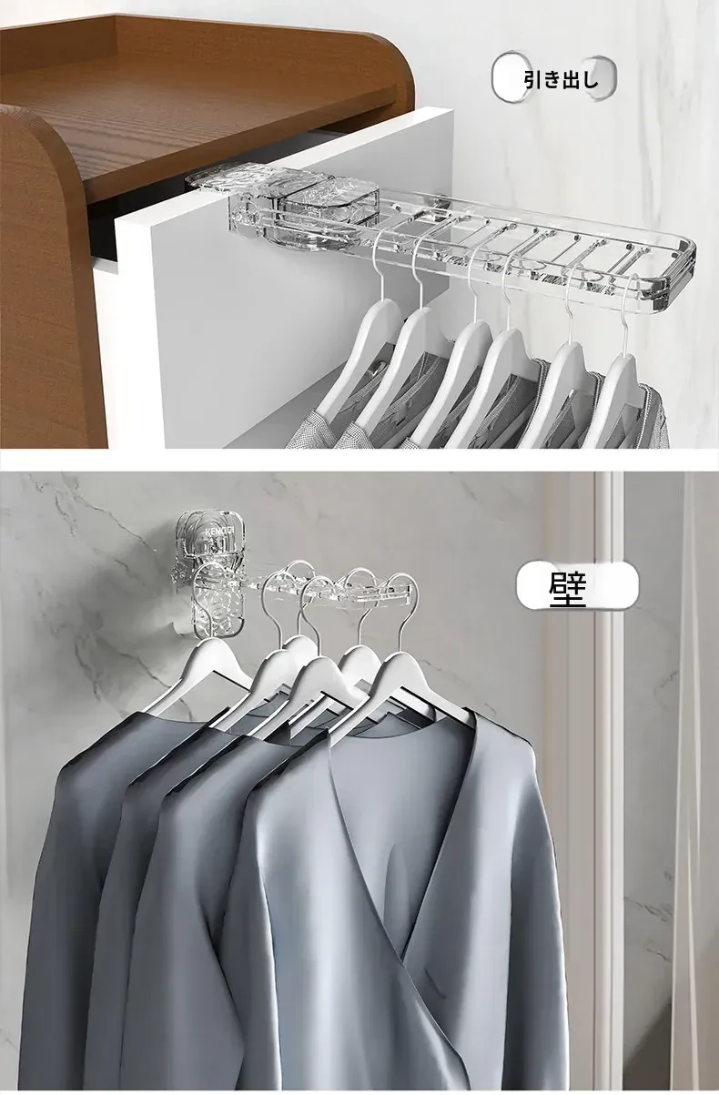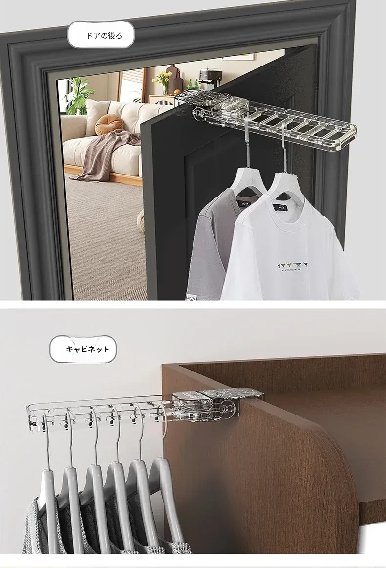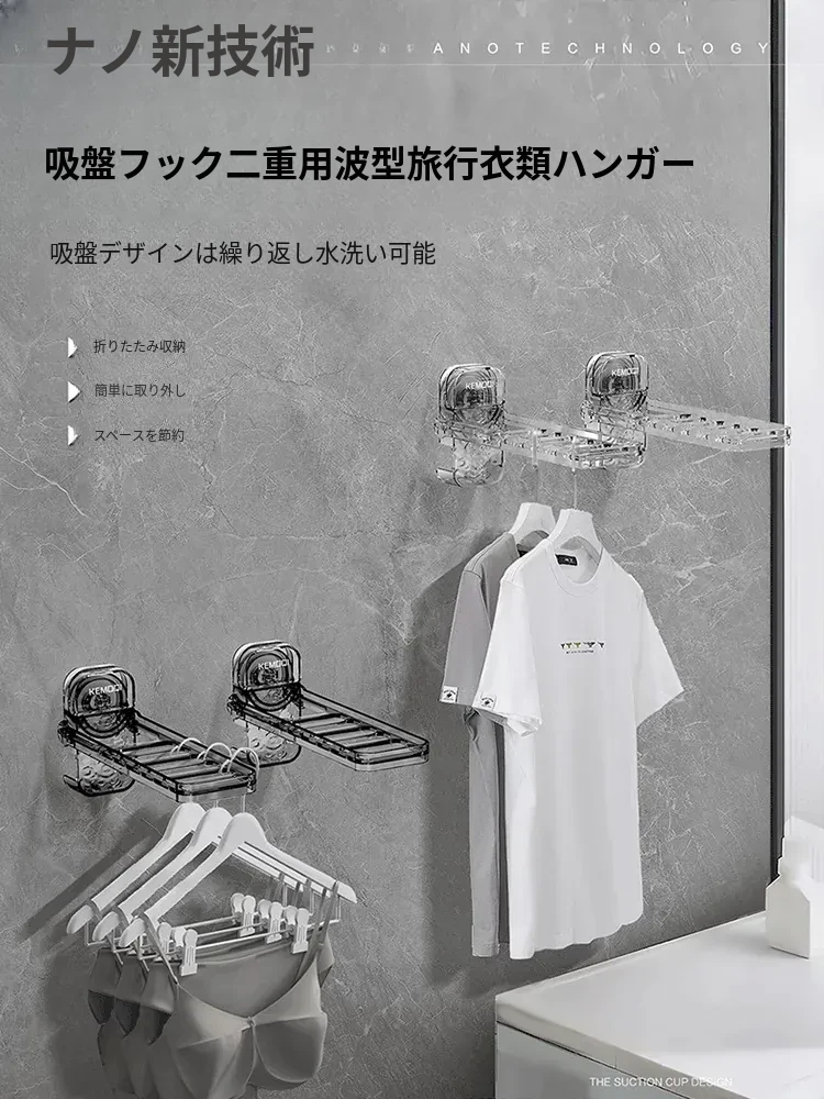 旅行に最適!折りたたみ式ポータブルハンガー - 出張やホテルでの衣類干しに便利!宿泊先の窓や室内で使える多機能フック付き。手軽に衣類を乾かして、快適な旅をサポートします!