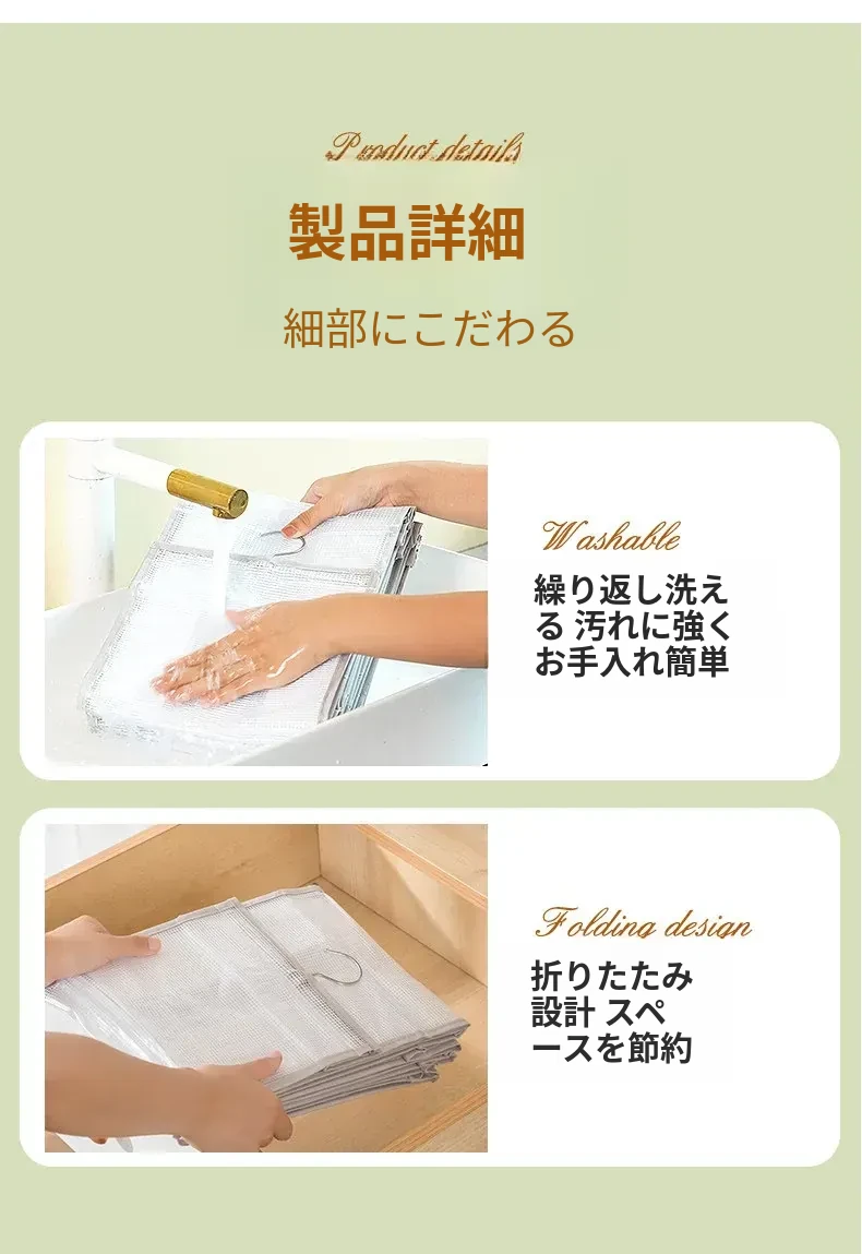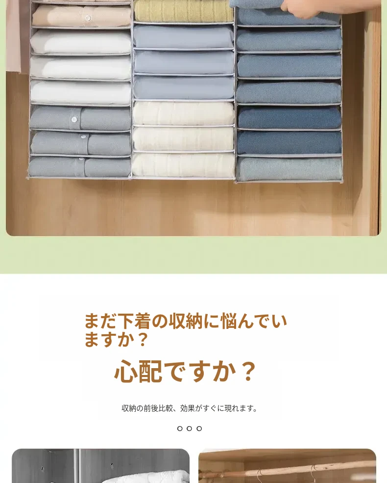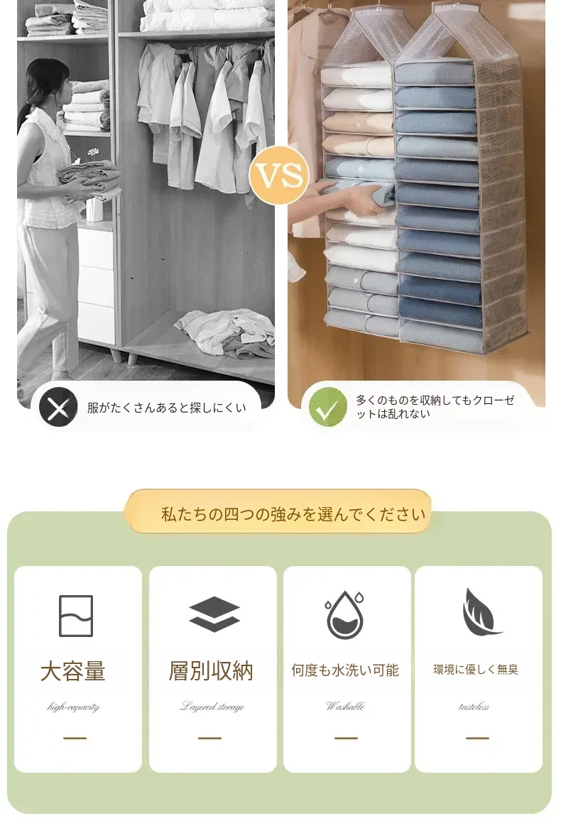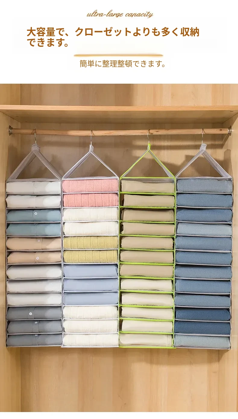 アップグレード厚手巨大6格-グリーン【セーター/ジーンズ/薄手のジャケットなどが収納できます】