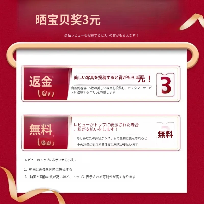 【今日の特典】 ✅ 商品受け取りの写真を投稿すると3元割引