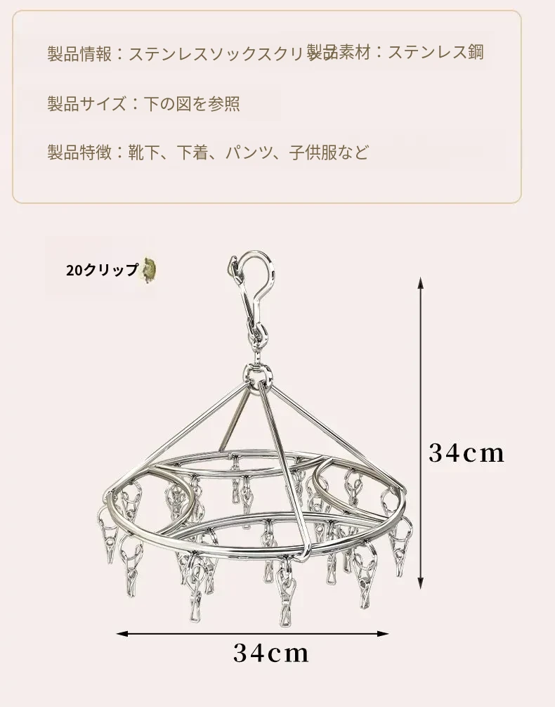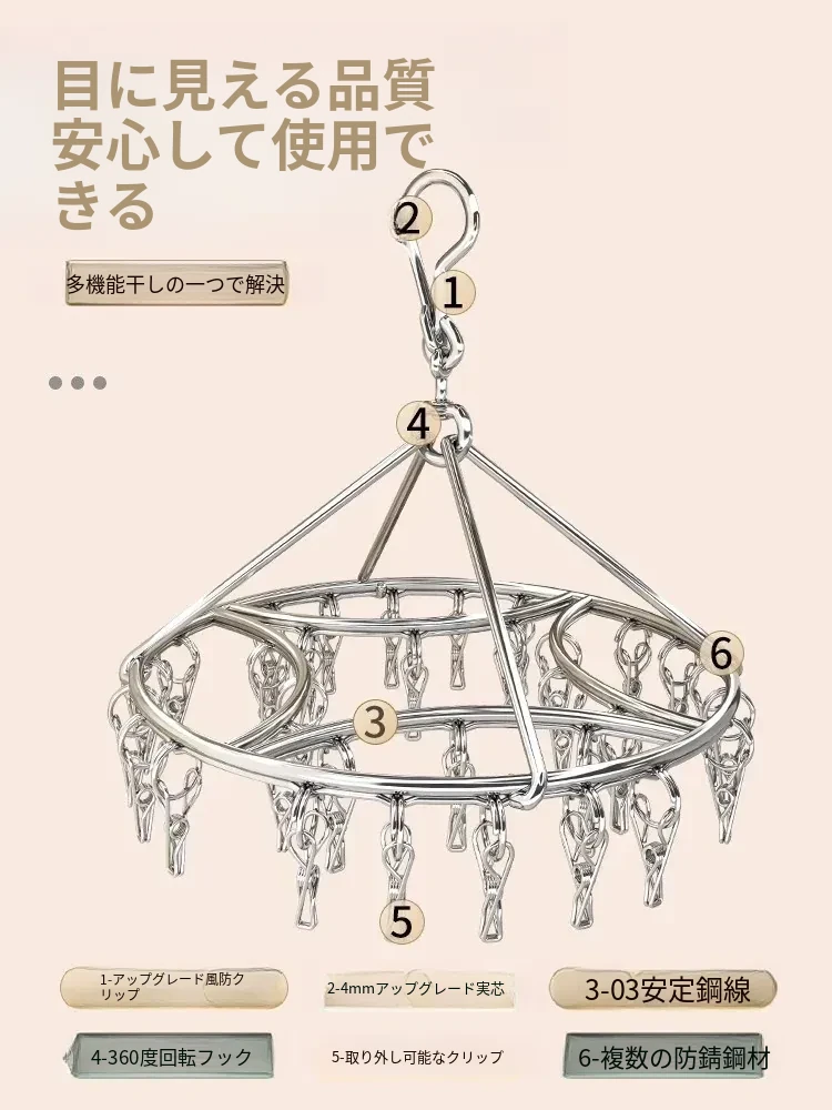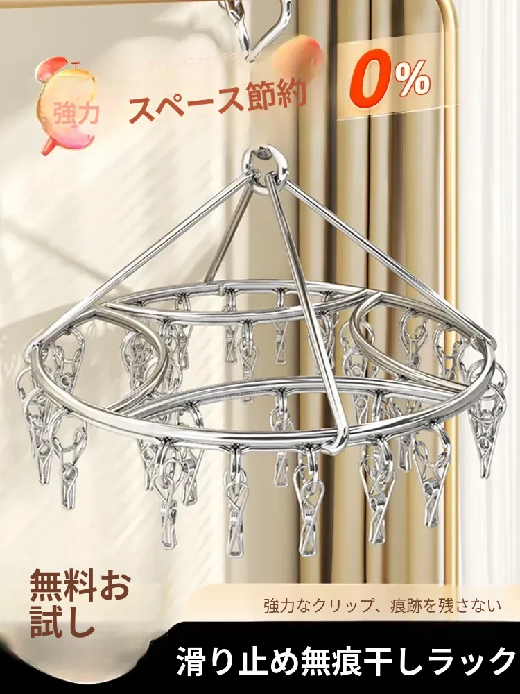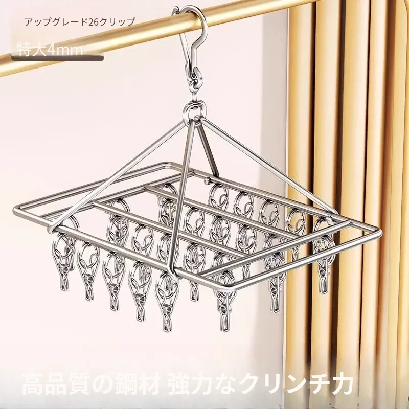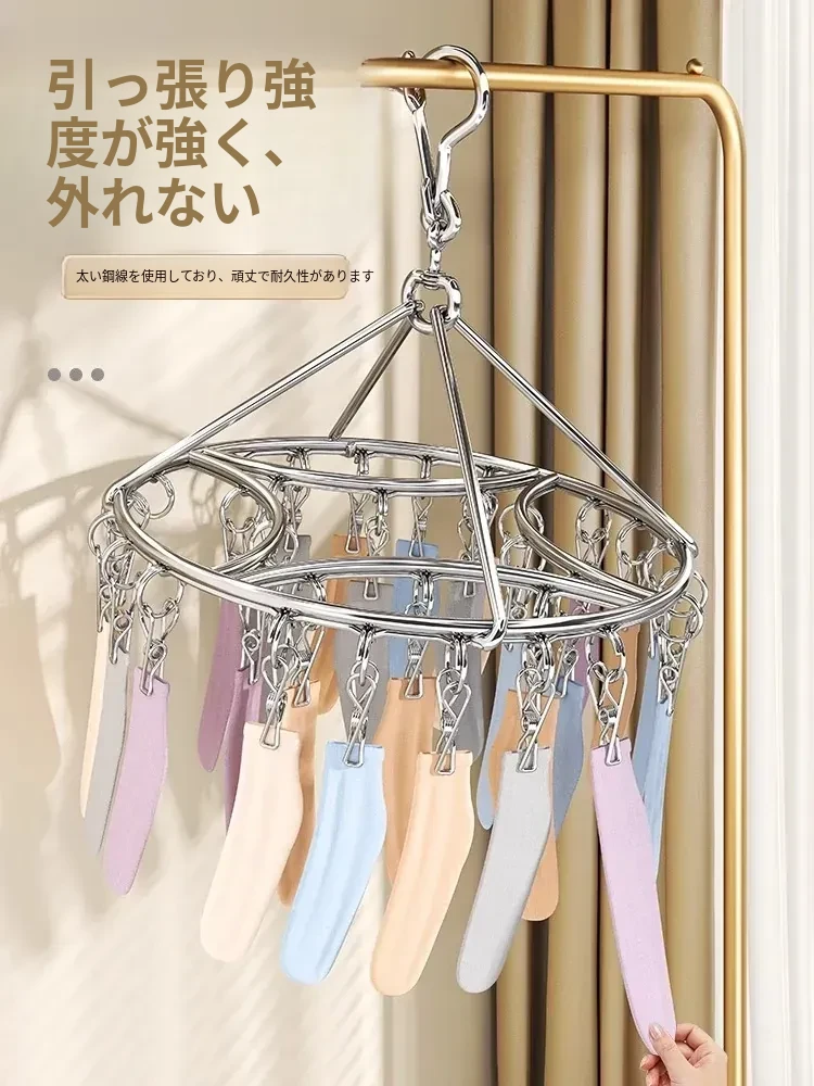 ステンレス製靴下干し神器!家庭用多機能インナー・パンティー無痕干しラック、クリップ付き靴下干しスタンド!省スペースで効率的に乾燥、衣類を清潔に保ちます。