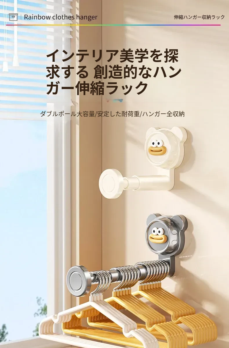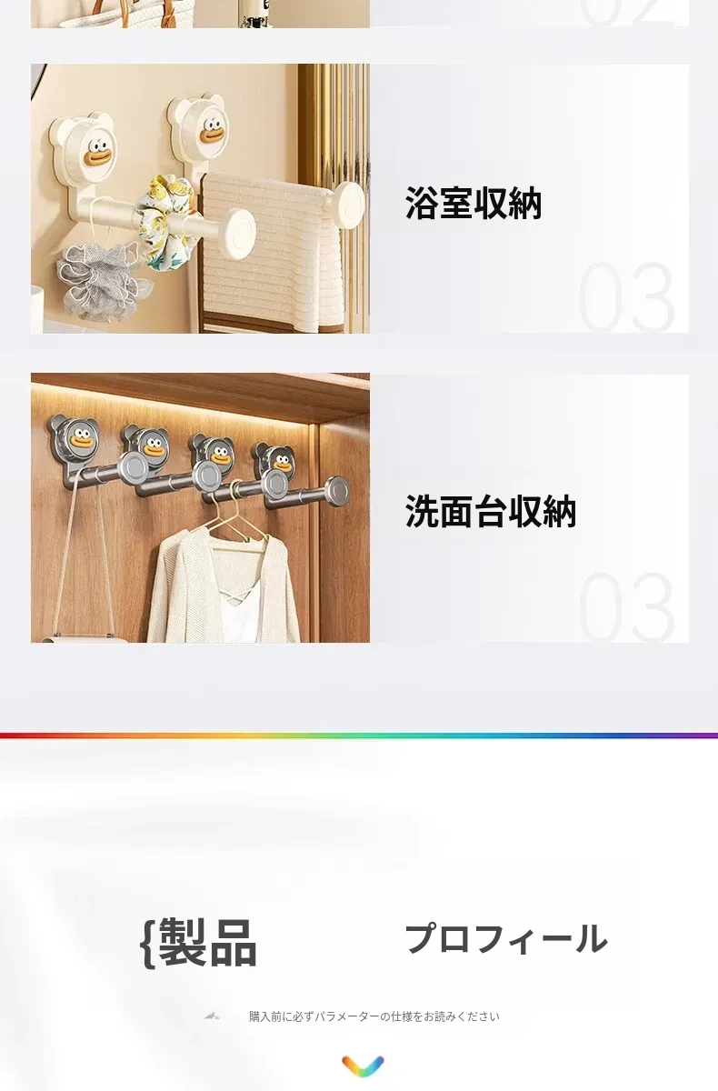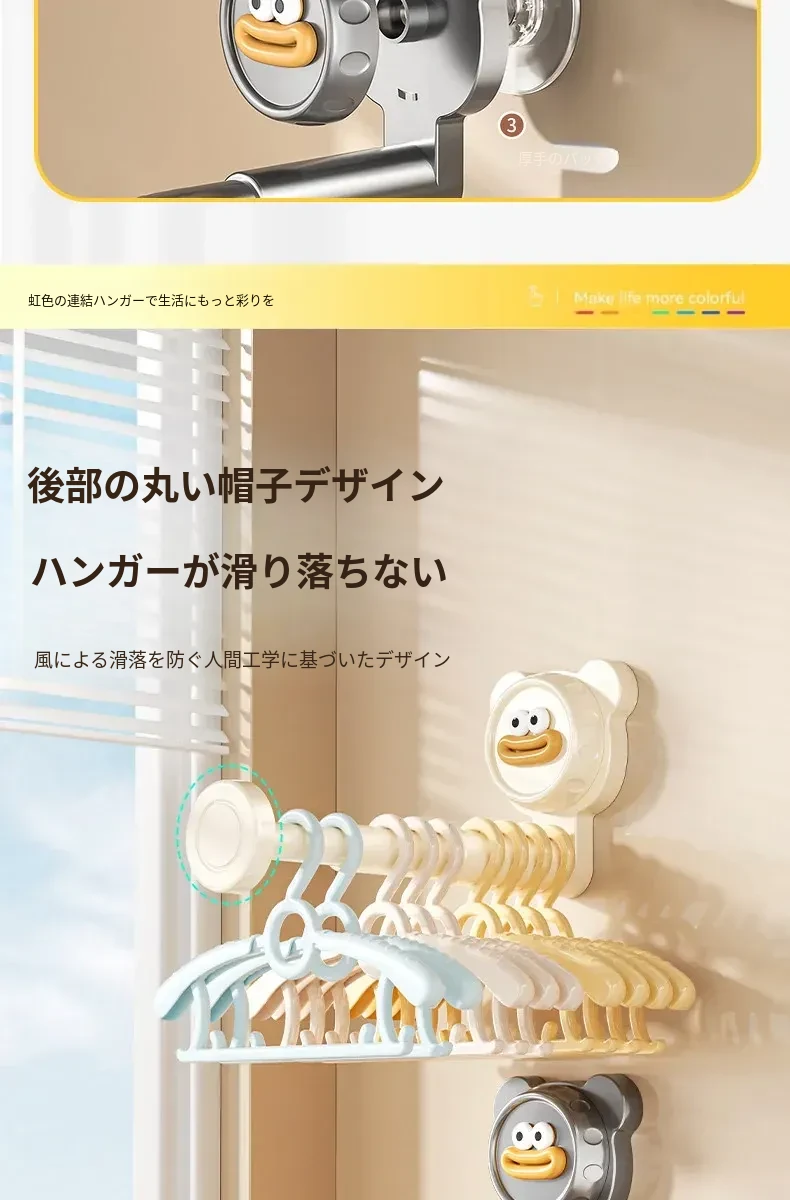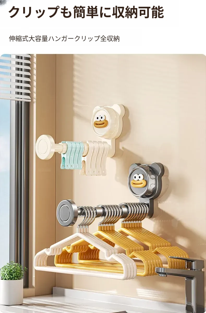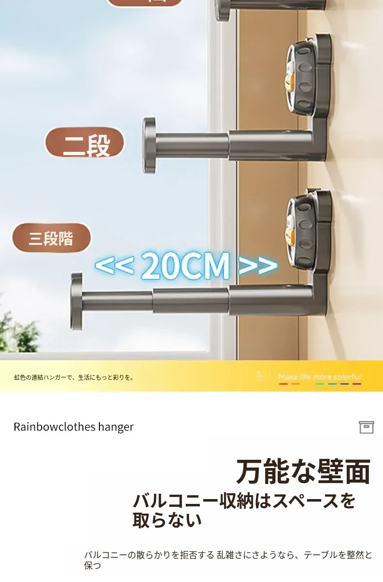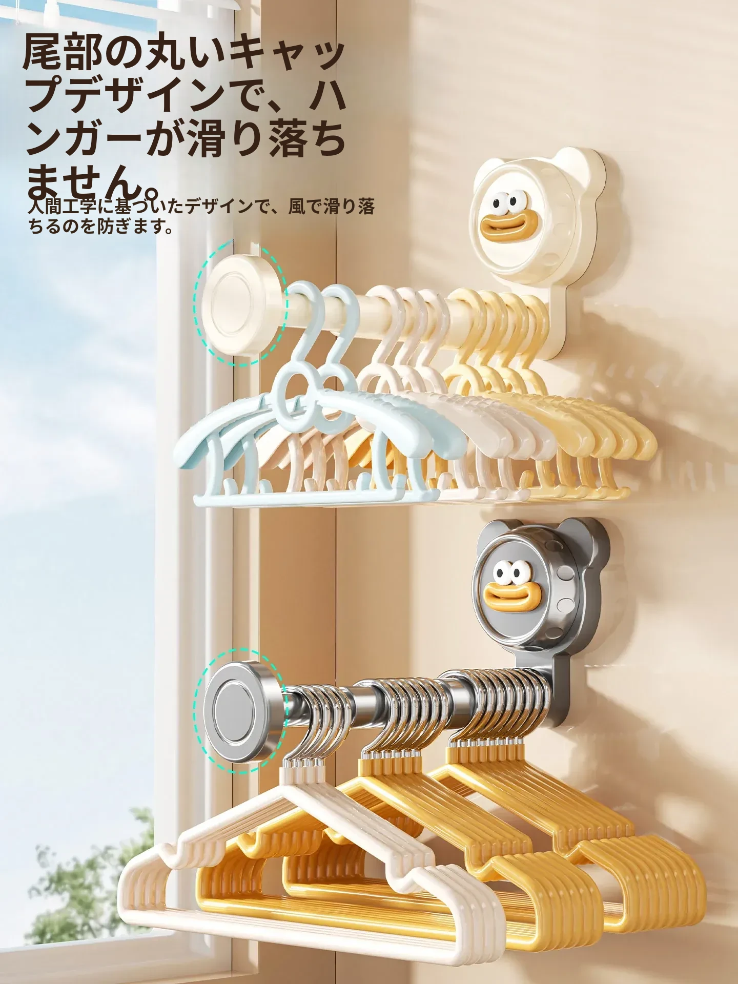 吸盤式バルコニー衣類ハンガー収納アイテム!穴あけ不要の多機能フックで、伸縮自在の壁掛けハンガー。おしゃれで便利な家庭用収納ソリューション!