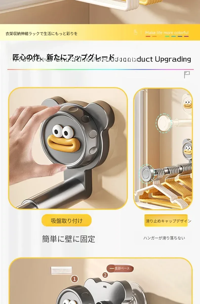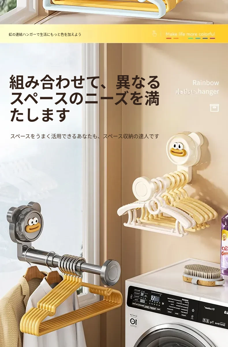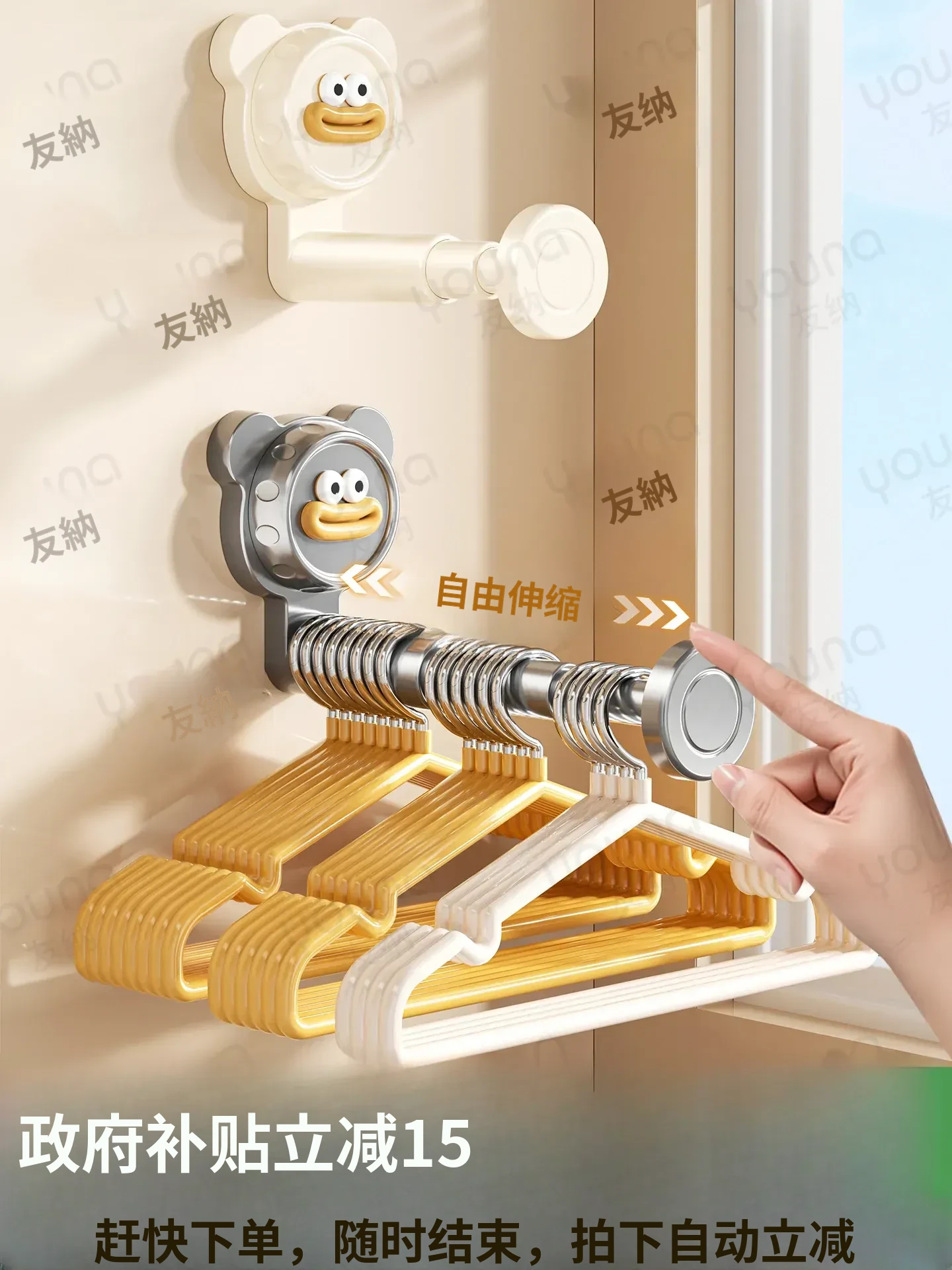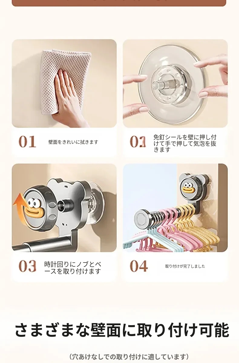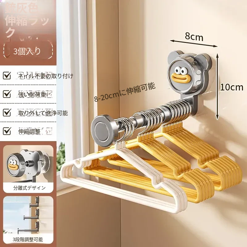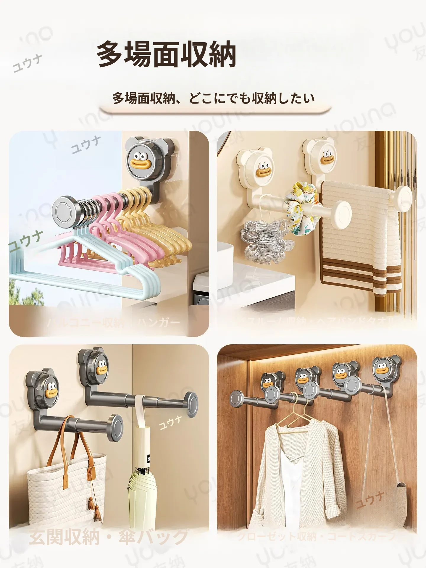 吸盤式バルコニー衣類ハンガー収納アイテム!穴あけ不要の多機能フックで、伸縮自在の壁掛けハンガー。おしゃれで便利な家庭用収納ソリューション!