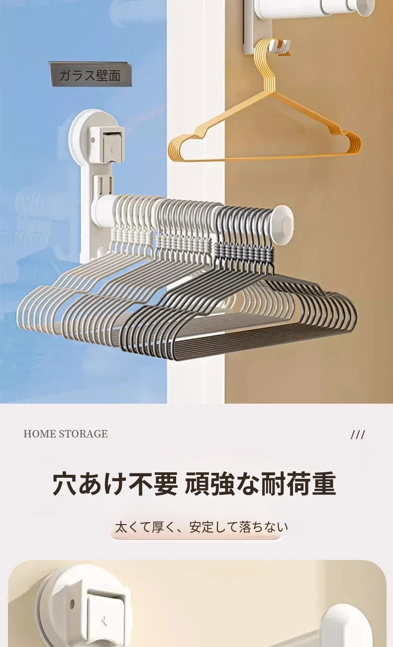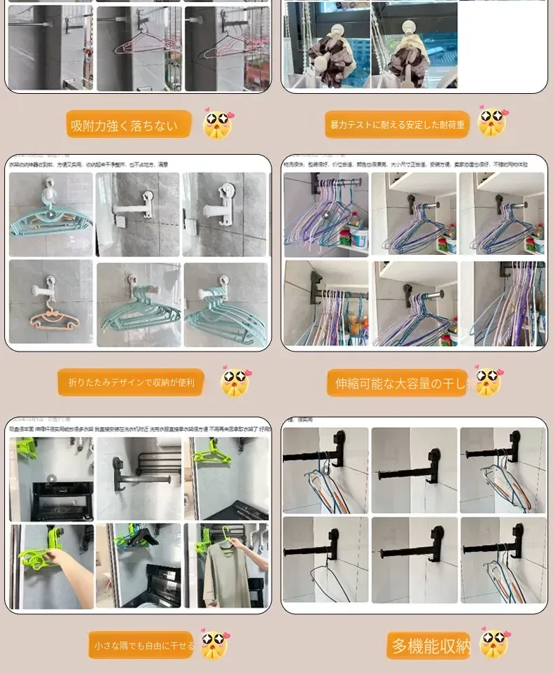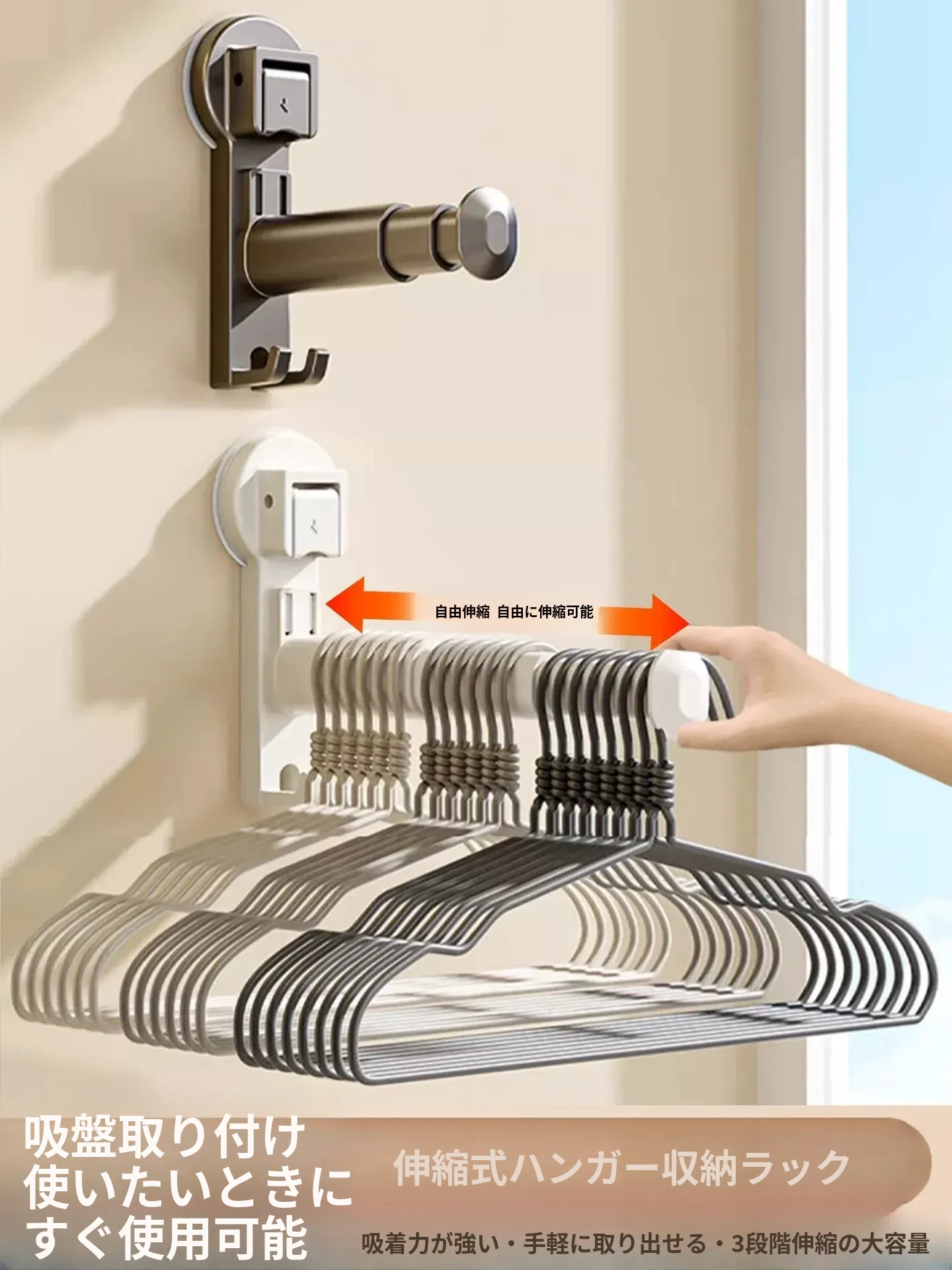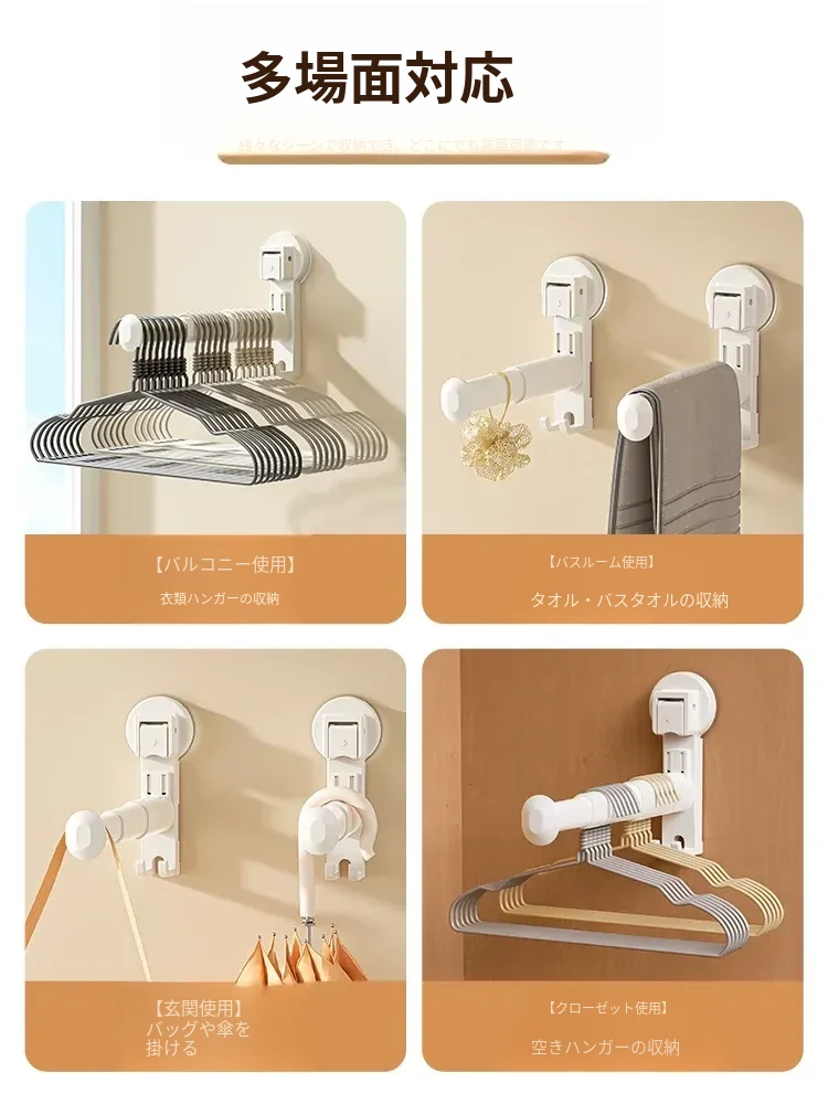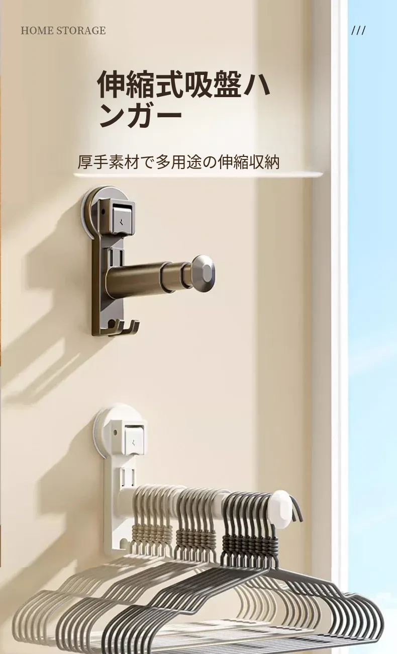 吸盤式伸縮ハンガー - 家庭用バルコニーや室内外で使える、旅行にも便利なノーネイル衣類干し。簡単取り付けで、スペース節約&おしゃれな収納を実現!