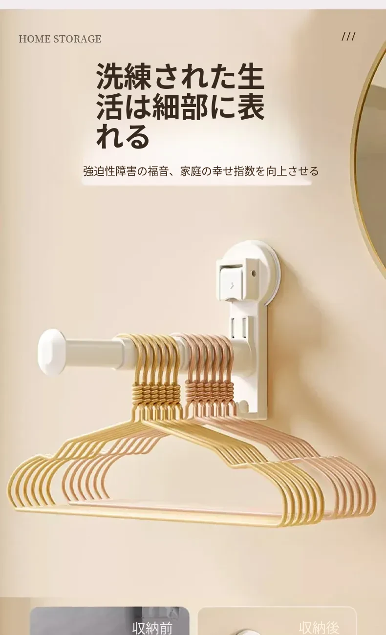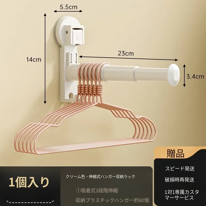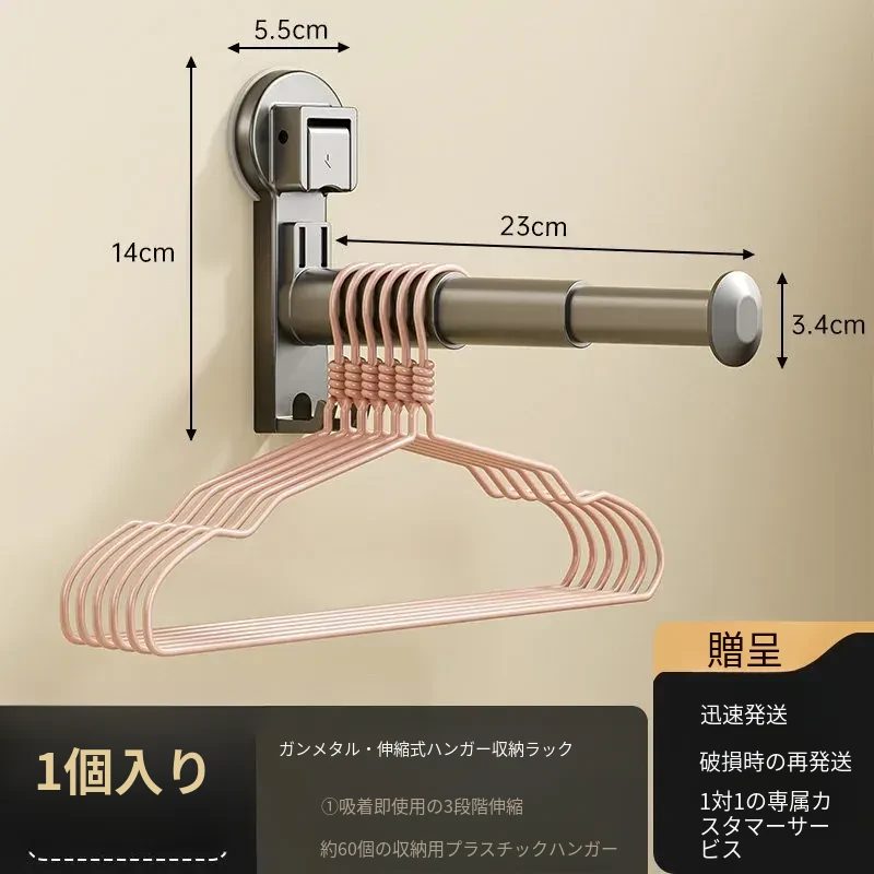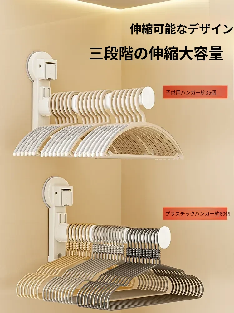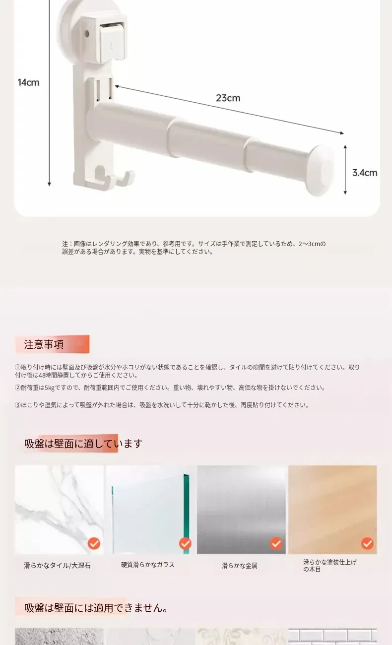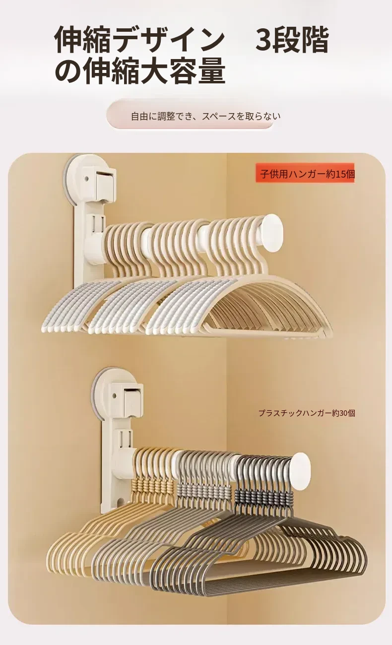 吸盤式伸縮ハンガー - 家庭用バルコニーや室内外で使える、旅行にも便利なノーネイル衣類干し。簡単取り付けで、スペース節約&おしゃれな収納を実現!